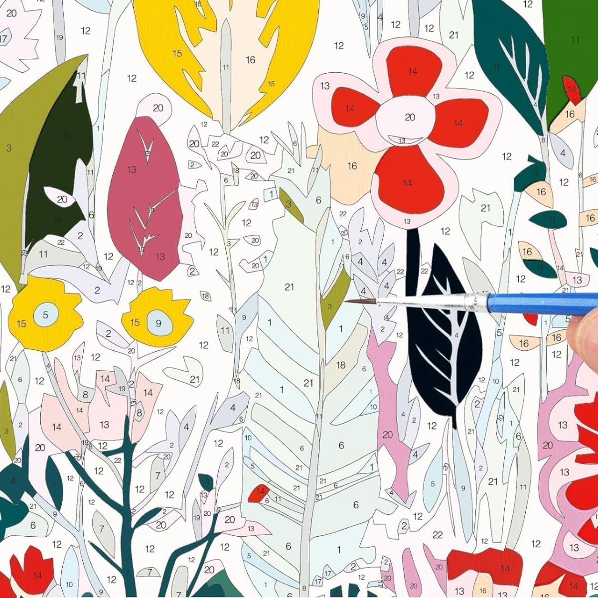 Kit per dipingere con i numeri, 40 cm x 50 cm, pittura acrilica fai da te per adulti e, con pennelli, lente d'ingrandimento formato biglietto, fiore di loto segreto, senza cornice