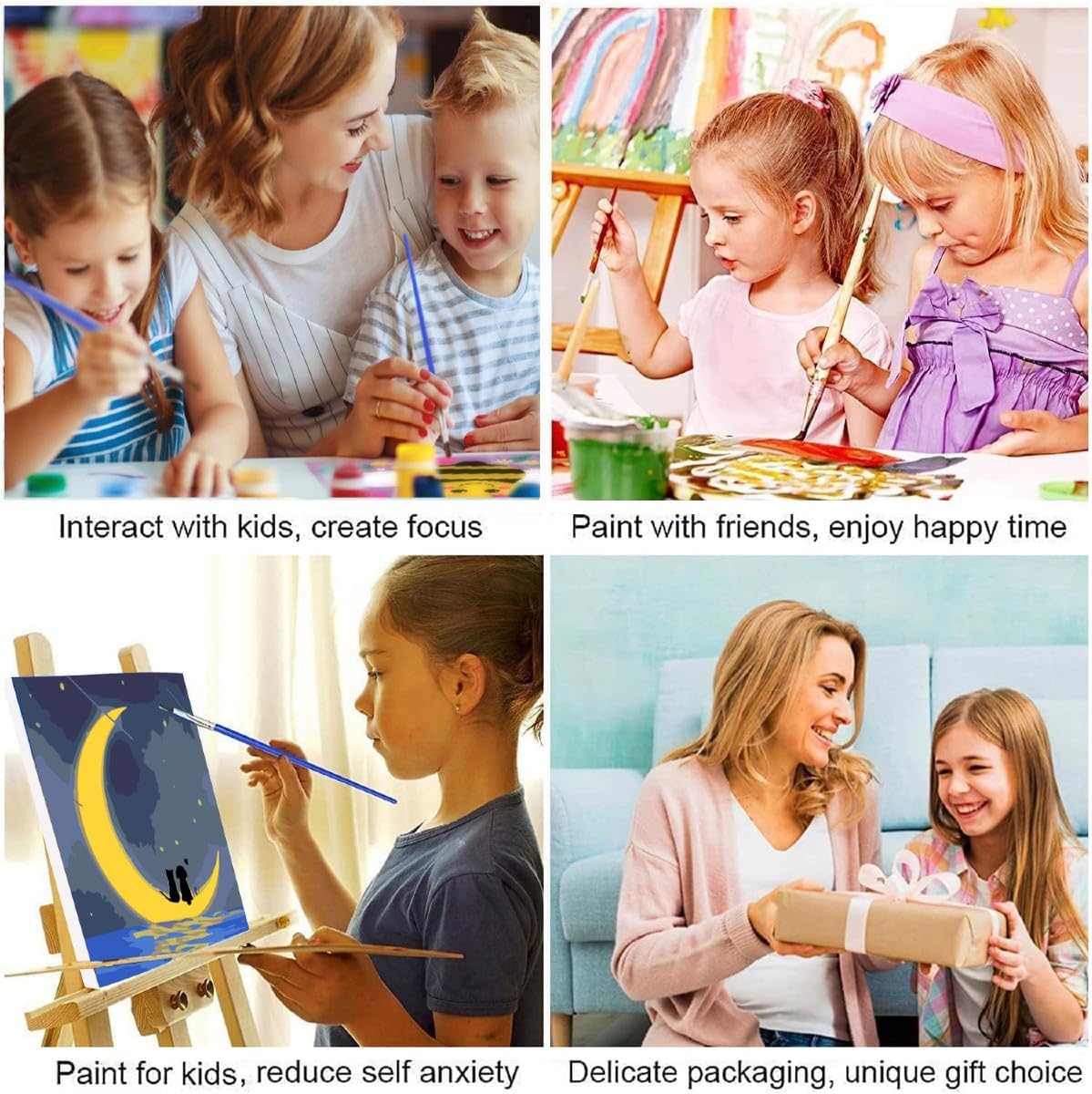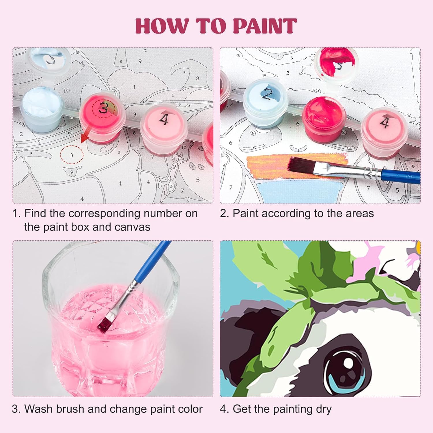 Dimensioni: 20*20 cm, dotato di cornice interna, non necessita di cornice, il che lo rende estremamente comodo per iniziare a dipingere fin da subito. 1 set di colori acrilici + 1 set di pennelli, un set completo facile da usare anche per bambini e principianti. Progettato specificamente per bambini e principianti, offre colori vivaci e un funzionamento semplice, stimolando l'amore per la pittura. Anche i principianti possono disegnare con questo set. Grazie alla colorazione guidata tramite numeri e alla tela colorata, puoi completare facilmente il tuo dipinto e provare un senso di realizzazione. Questo è un regalo premuroso per bambini o amici come introduzione all'arte.
