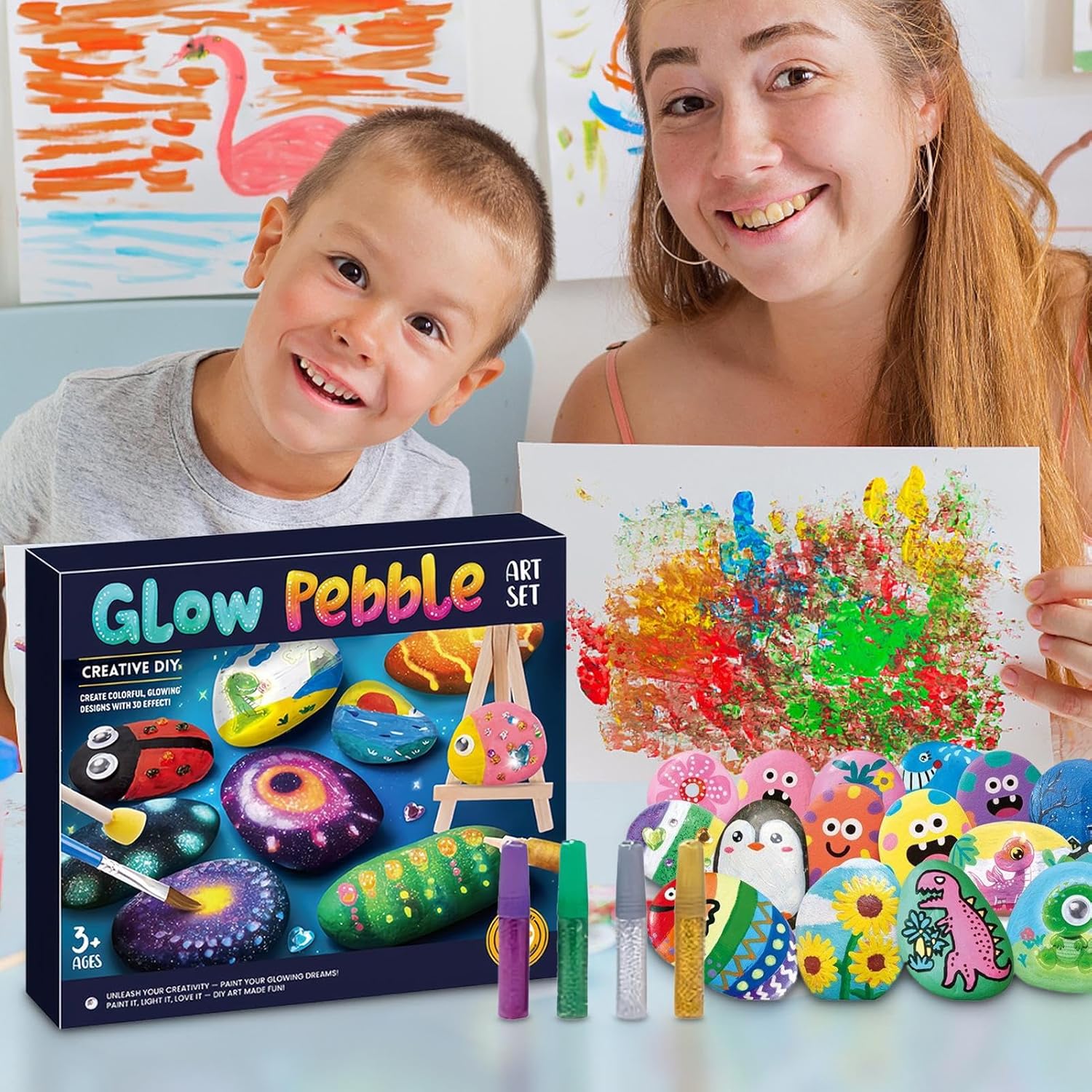 Essenziali per pittura creativa: Include pennelli e rocce per tecniche di doodling, gradienti e stratificazione, consentendo ai bambini di realizzare facilmente dipinti luminosi su rocce con materiali pronti all'uso fin dall'inizio Espressione Artistica: Il kit promuove l'attenzione e coltiva l'apprezzamento estetico, aiutando i bambini a migliorare la coordinazione dei colori e la consapevolezza spaziale, potenziando la creatività e supportando lo sviluppo artistico attraverso la pittura su rocce tridimensionali Progetti Artistici Autonomi per Bambini: Set artistico ergonomicamente progettato con manici arrotondati, assicura un processo creativo piacevole e permette ai bambini di condividere momenti artistici di qualità attraverso colori morbidi e facili da applicare, ideale per progetti indipendenti dai sei anni in poi Dipinti Cielo Notturno Luminoso: Stimola l'espressione artistica con il kit per sassi luminosi, dotato di pigmenti fluorescenti che illuminano automaticamente creando cieli notturni suggestivi, display luce-ombra e ispirando immaginazione e divertimento creativo Rivestimento Antisbiadimento: Garantisce una protezione colore di lunga durata formando strato idrorepellente, resistente sbiadimento quando esposto a pioggia o acqua mantenendo i lavoretti manuali vividi e luminosi nel