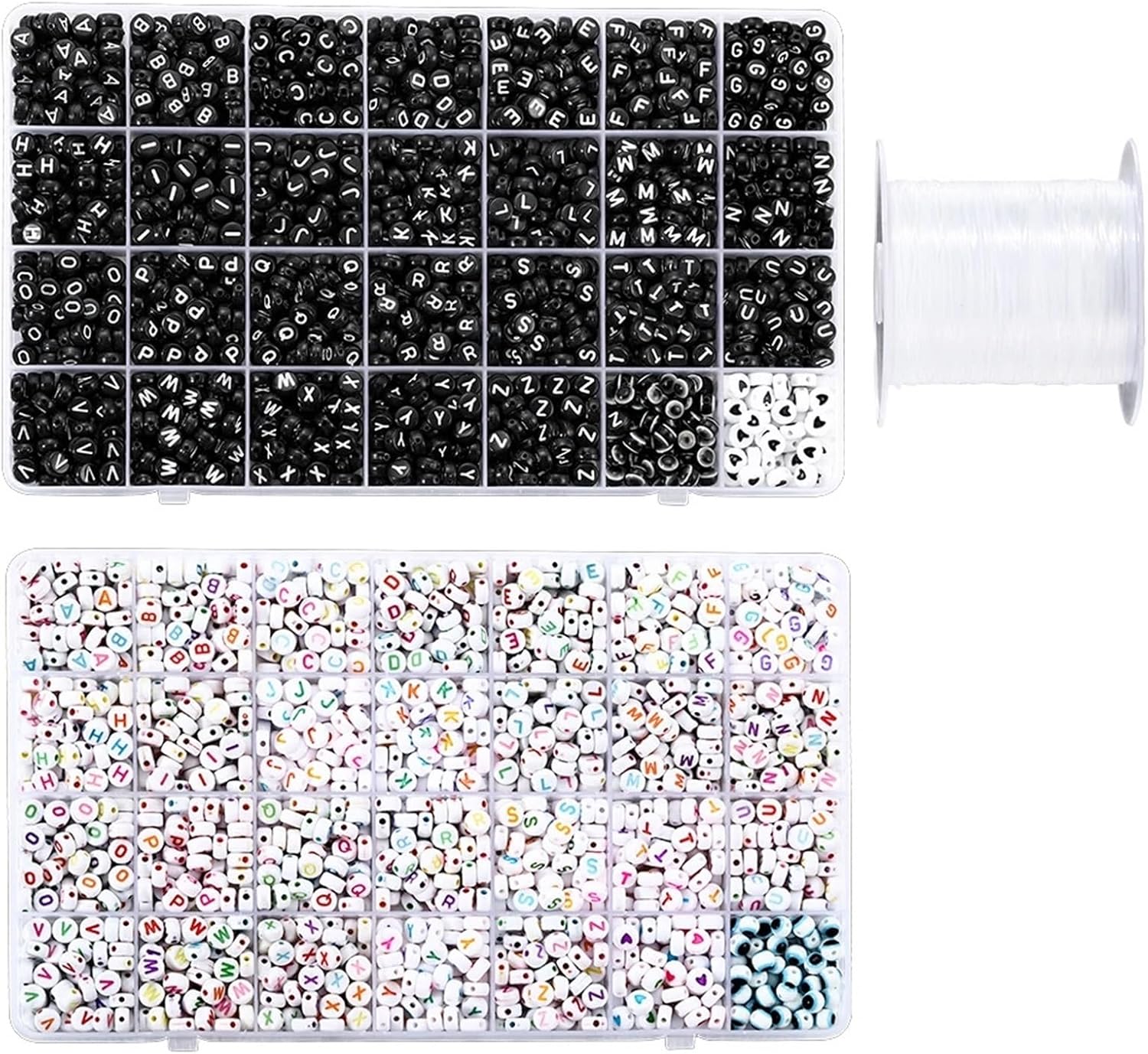 Kit per Fare Braccialetti 1680 pezzi di perline piatte rotonde da 7 mm con cordino elastico e forbici for gioielli, kit for la creazione fai te braccialetti collane(Black)