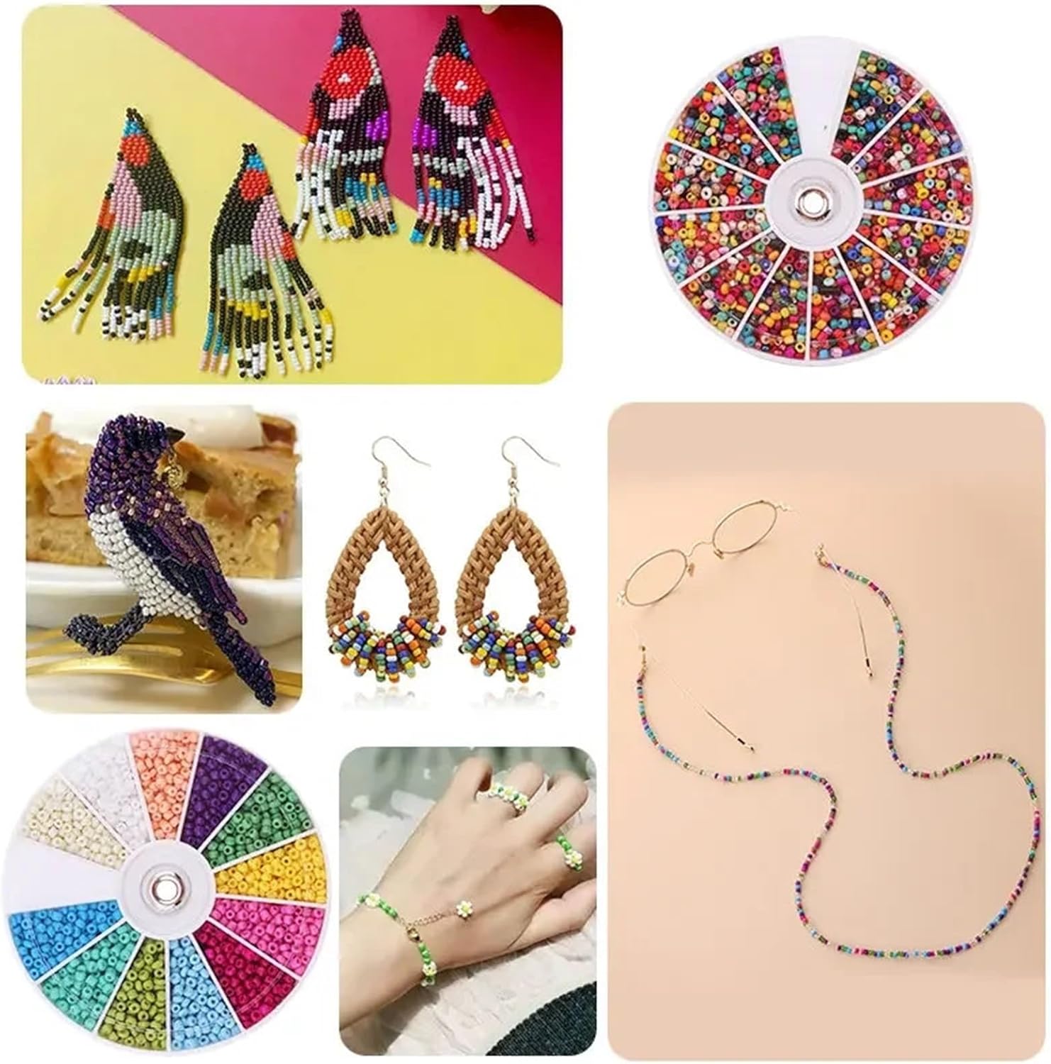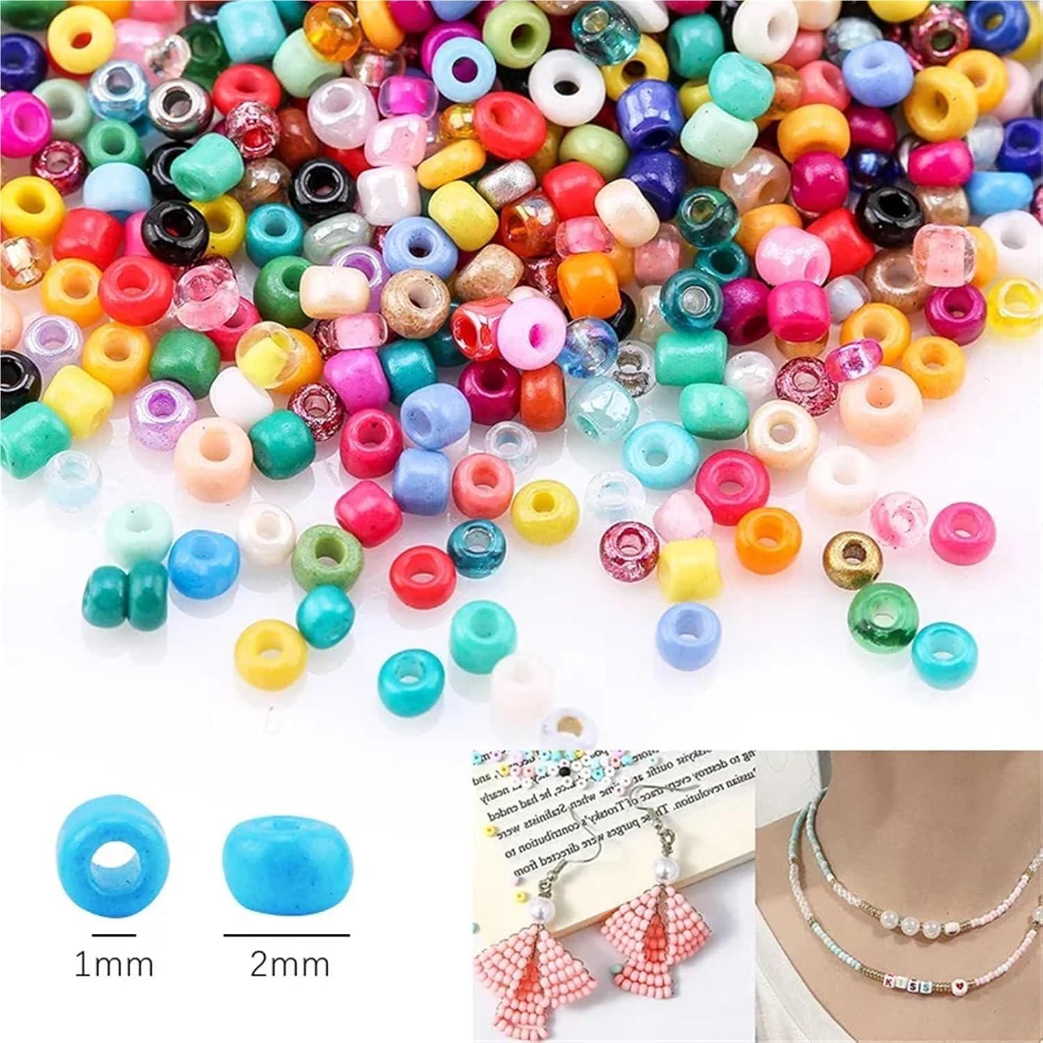 Kit Per Fare Braccialetti 2000 pezzi 12 griglie di perline vetro set ciondoli gioielli for bracciale collana orecchini artigianato fatto a mano fai da te(Color74)
