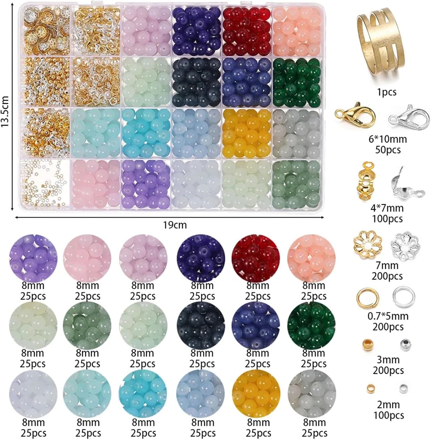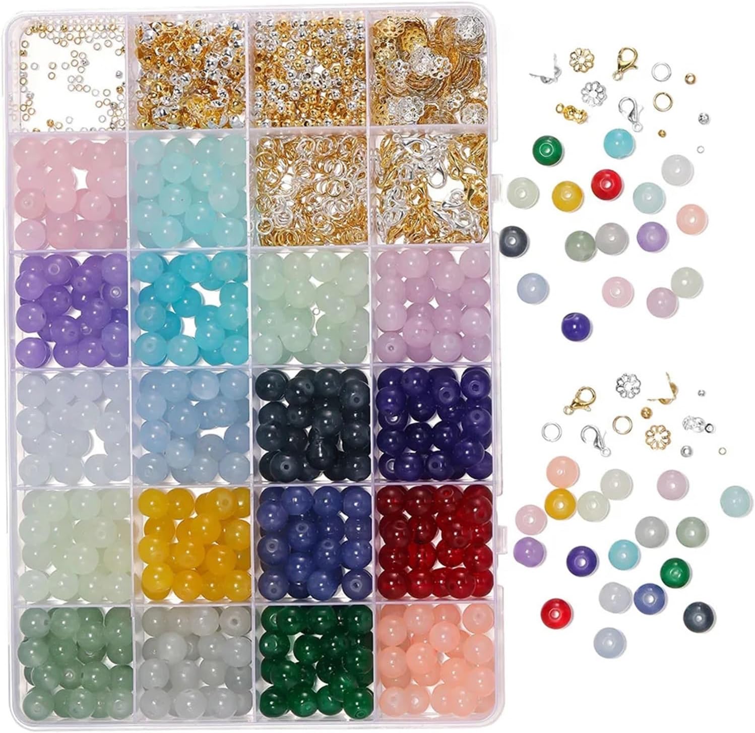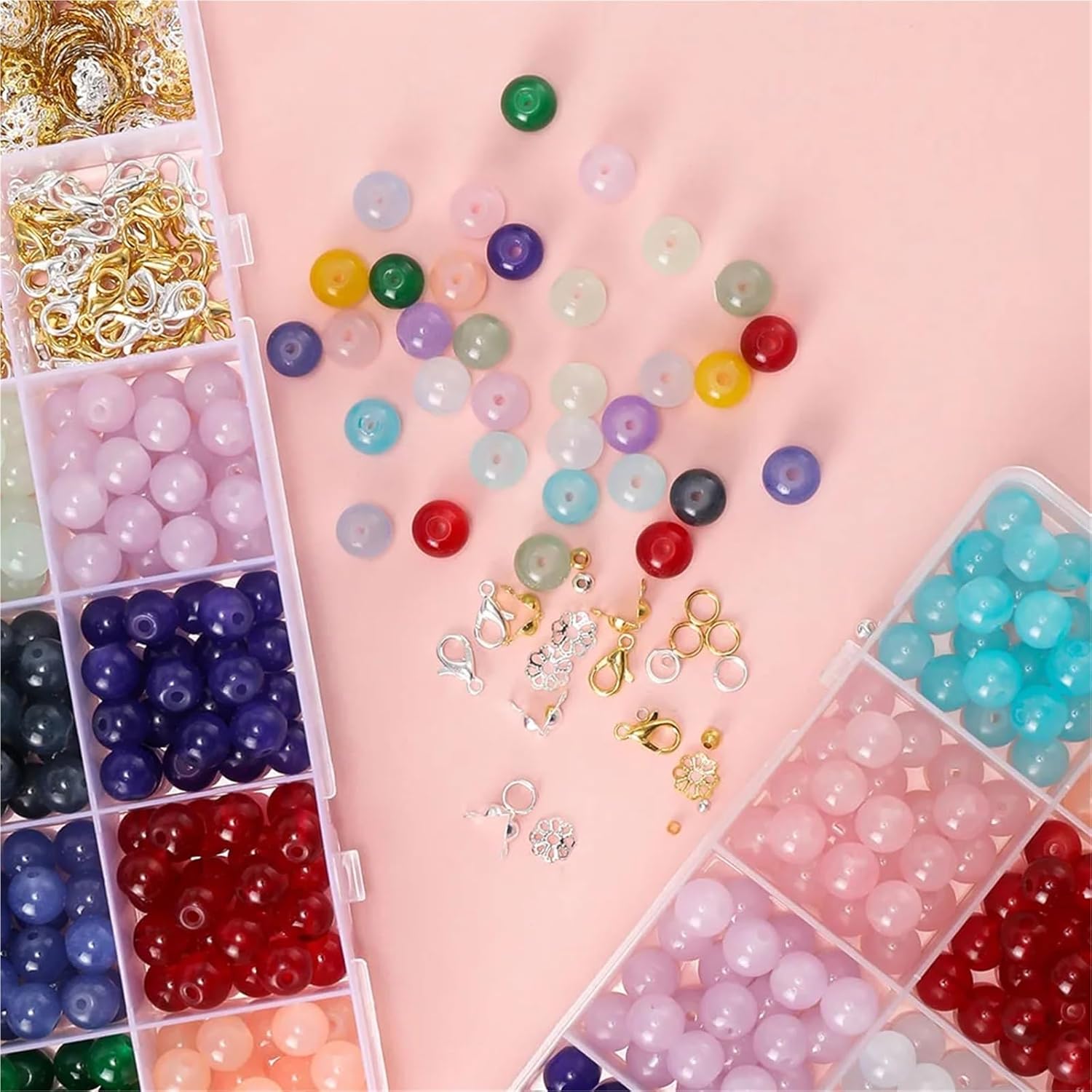 Kit per Fare Braccialetti 450-1300 pezzi da 8 mm perline di vetro giada imitazione con chiusura a moschettone tappi in metallo kit accessori for gioielli fai te for braccialetti e collane(Color 2)