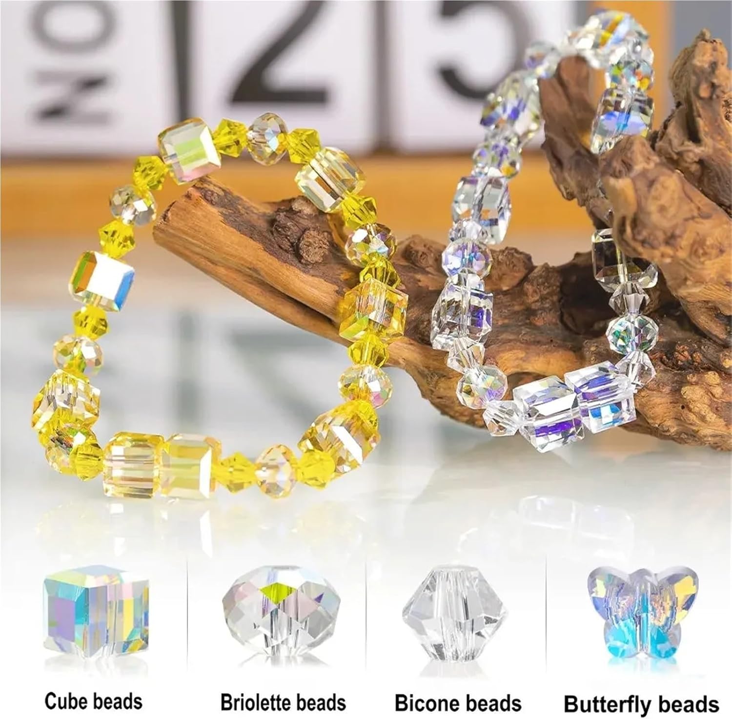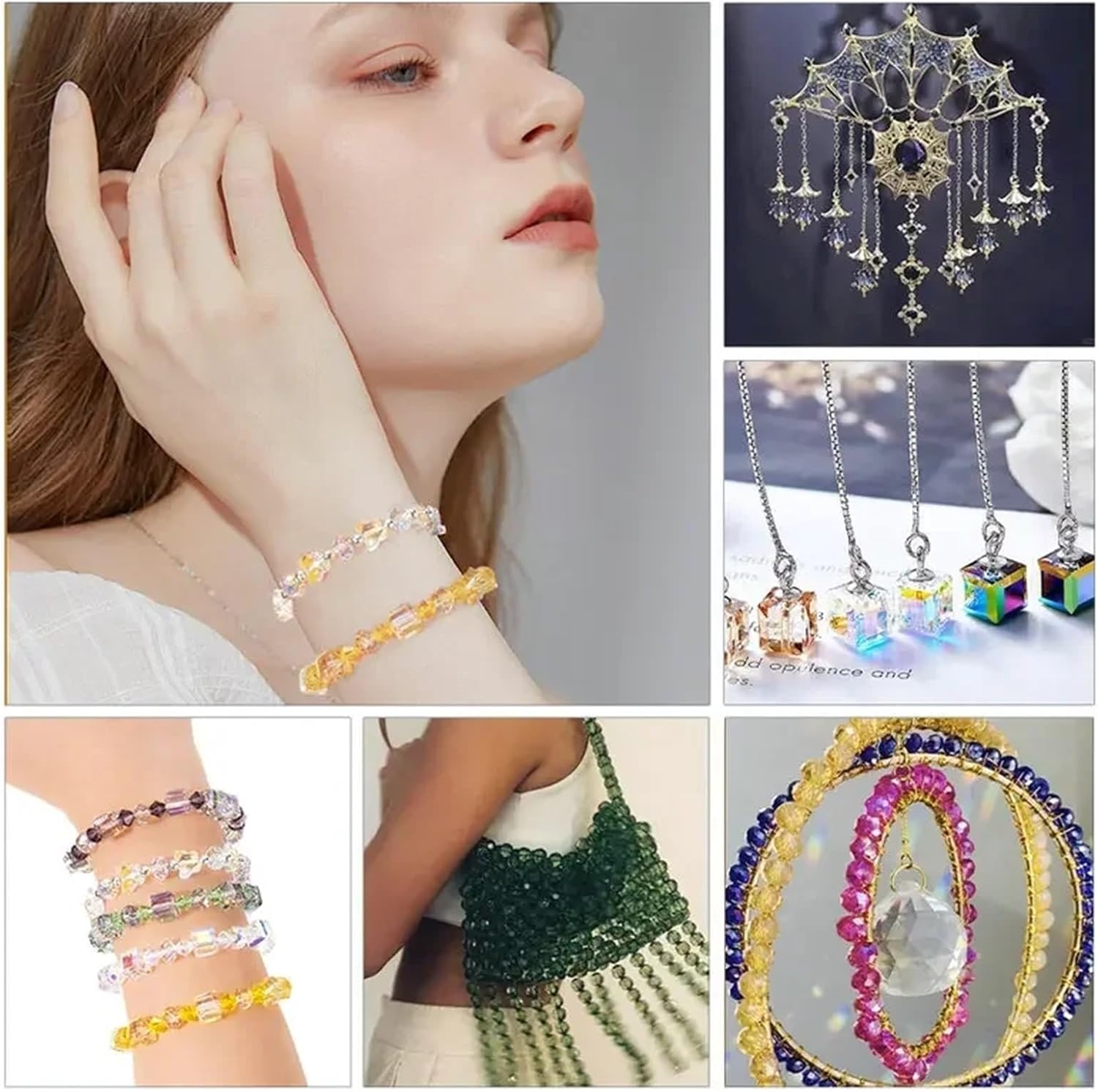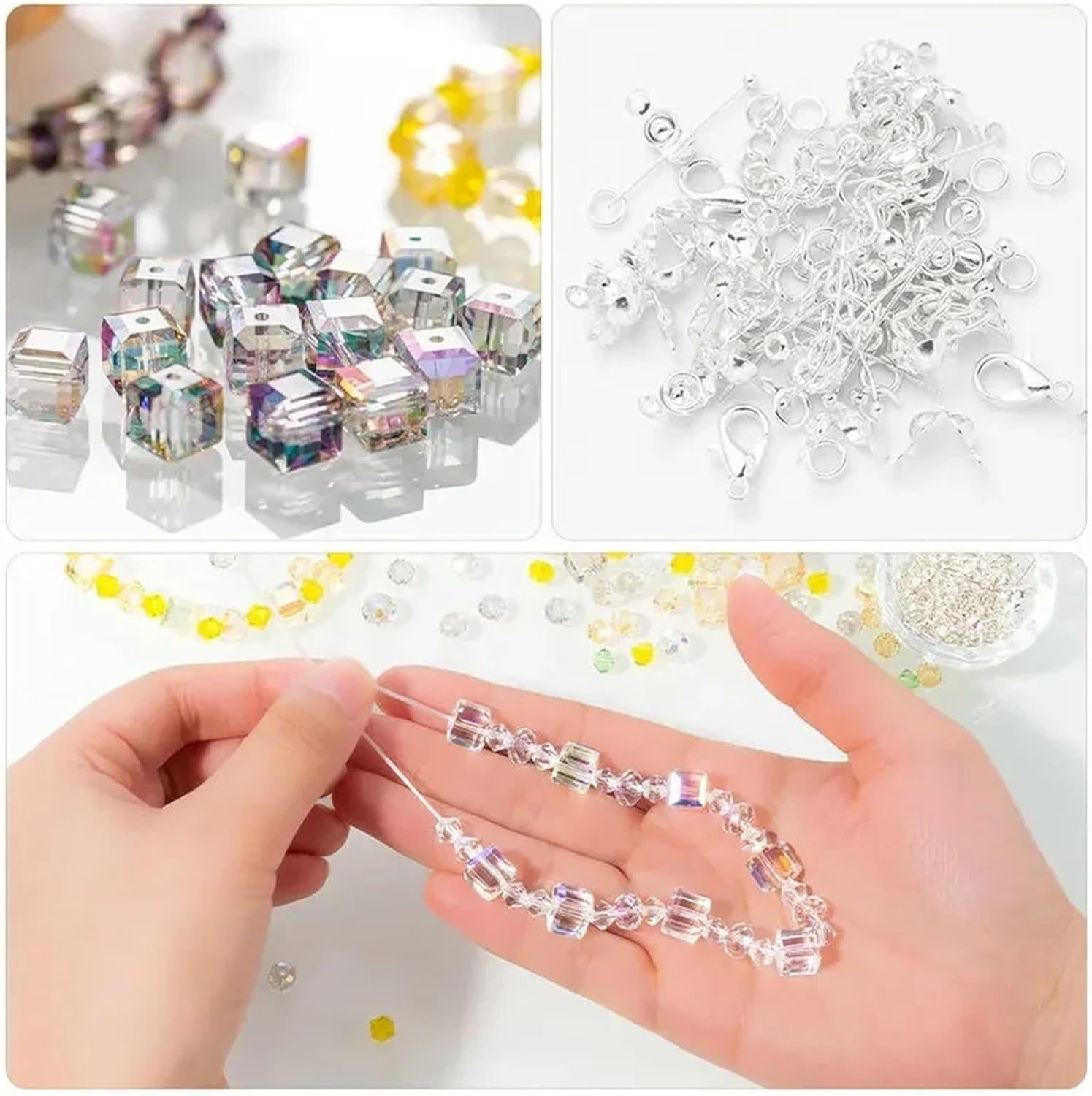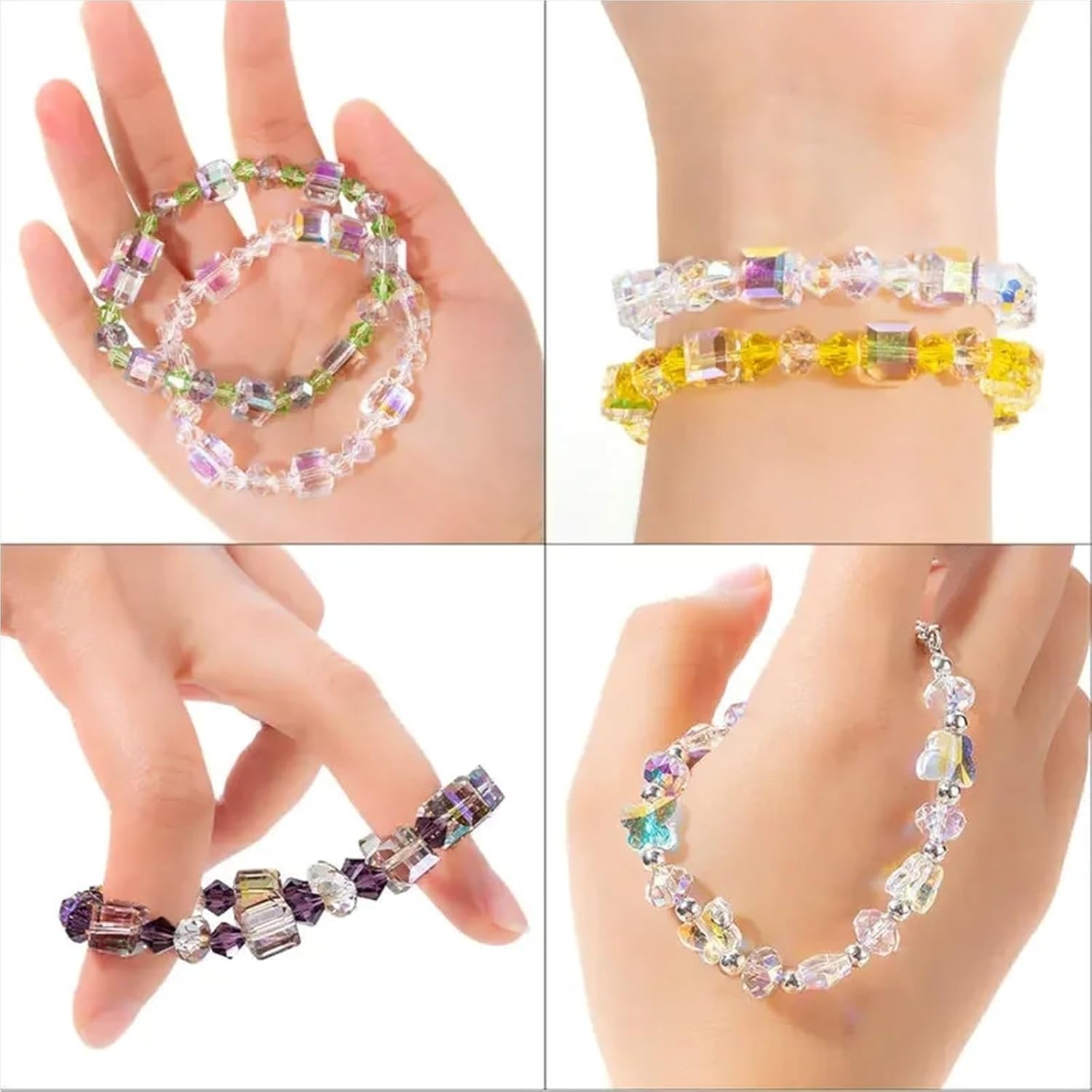 Kit per Fare Braccialetti Kit di perline cristallo, kit for la creazione braccialetti color AB, vetro a forma cubo, farfalle scintillanti for gioielli, collane e artigianato fai da te(Color 5)