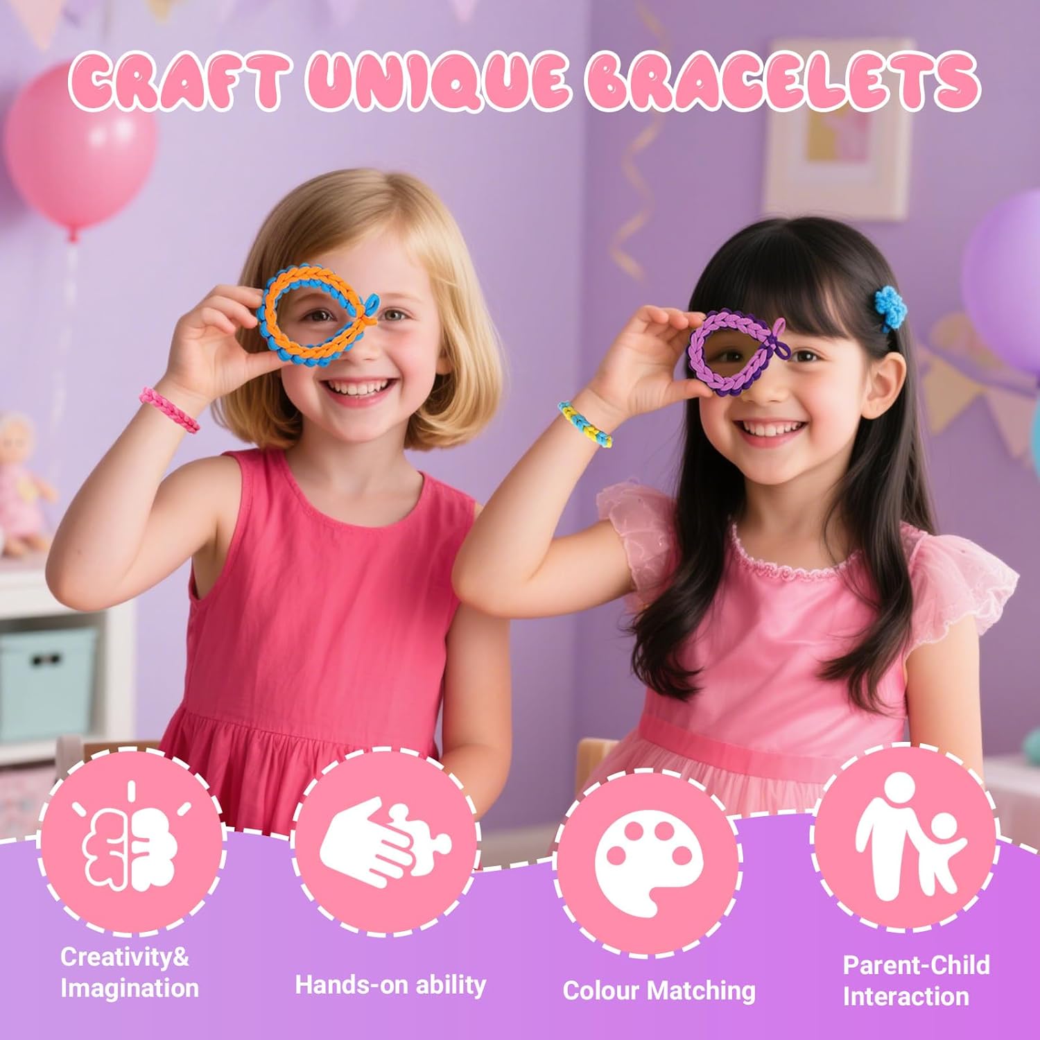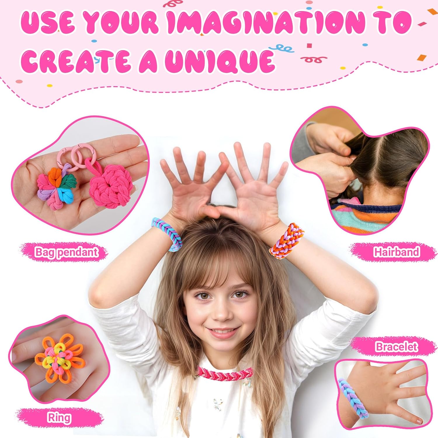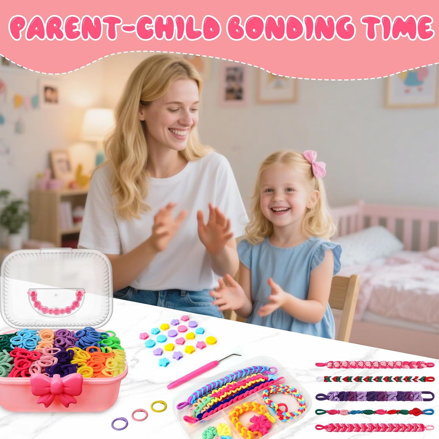 Set di Braccialetti Unicorno Divertenti: Questo Kit per Braccialetti Ragazza include 1 pettine per trecce a forma di unicorno, 1 uncinetto, 3 portachiavi, 3 adesivi a forma di unicorno, 20 fibbie a forma di cartone animato, 13 elastici per capelli in oltre 1.000 colori, 1 scatola portaoggetti rosa e 1 manuale di istruzioni. Questa macchina per maglieria a forma di unicorno rosa presenta un corpo aerodinamico e bordi lisci. Set Valigia 0ortatile Intrecciata: Questo kit di Braccialetti Amicizia Bambini è L'esclusivo design a valigia con comode maniglie permette alle bambine di portare facilmente con sé i loro materiali per lavorare a maglia preferiti e di vivere avventure creative sempre e ovunque. Che si tratti di un weekend, di una gita in famiglia o di un campeggio, questo set di braccialetti fai da te è un compagno divertente per le bambine, che permette loro di divertirsi a creare sempre e ovunque! Istruzioni Dettagliate: Le istruzioni illustrate facilitano l'avvio del lavoro. Ogni passaggio è accompagnato da illustrazioni dettagliate e istruzioni testuali. Con 14 stili di tessitura inclusi, i bambini possono facilmente seguire le istruzioni e creare i propri braccialetti. Con il nostro versatile kit braccialetti fai da te bambina, puoi creare molto più di semplici bracciali! Crea facilmente eleganti collane, fasce per capelli, anelli, collari per animali domestici e molto altro. Crea Braccialetti Bambina: Le bambine di tutte le età possono divertirsi con un hobby divertente e creativo. Il sset per fare braccialetti è un elastici per braccialetti unico e divertente che stimola l'immaginazione dei bambini, incoraggia la creatività, migliora la coordinazione occhio-mano e promuove le capacità motorie fini e il pensiero logico. I nostri elastici colorati sono realizzati in cotone elastico e morbido, confortevole sulla pelle e resistente, rendendoli divertenti da realizzare. Un Regalo Perfetto per i Bambini: questo set di elastici è un regalo perfetto per bambine di 6, 7, 8, 9 o 10 anni, per il ritorno a scuola, i compleanni, Natale o altre festività. Scalderà il cuore di chi lo riceve. È un progetto di bracciali senza tempo e nostalgico per tutte le età. Createvi a vicenda un regalo unico e fatto a mano, come simbolo del vostro affetto e della vostra amicizia.