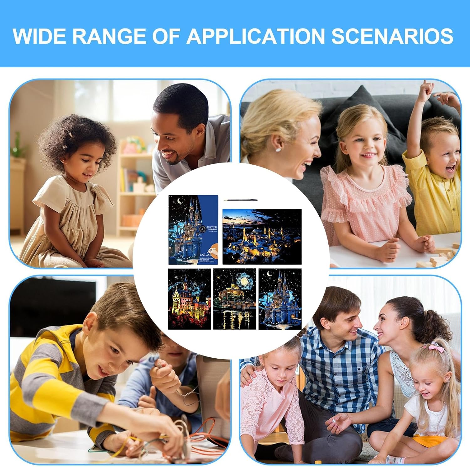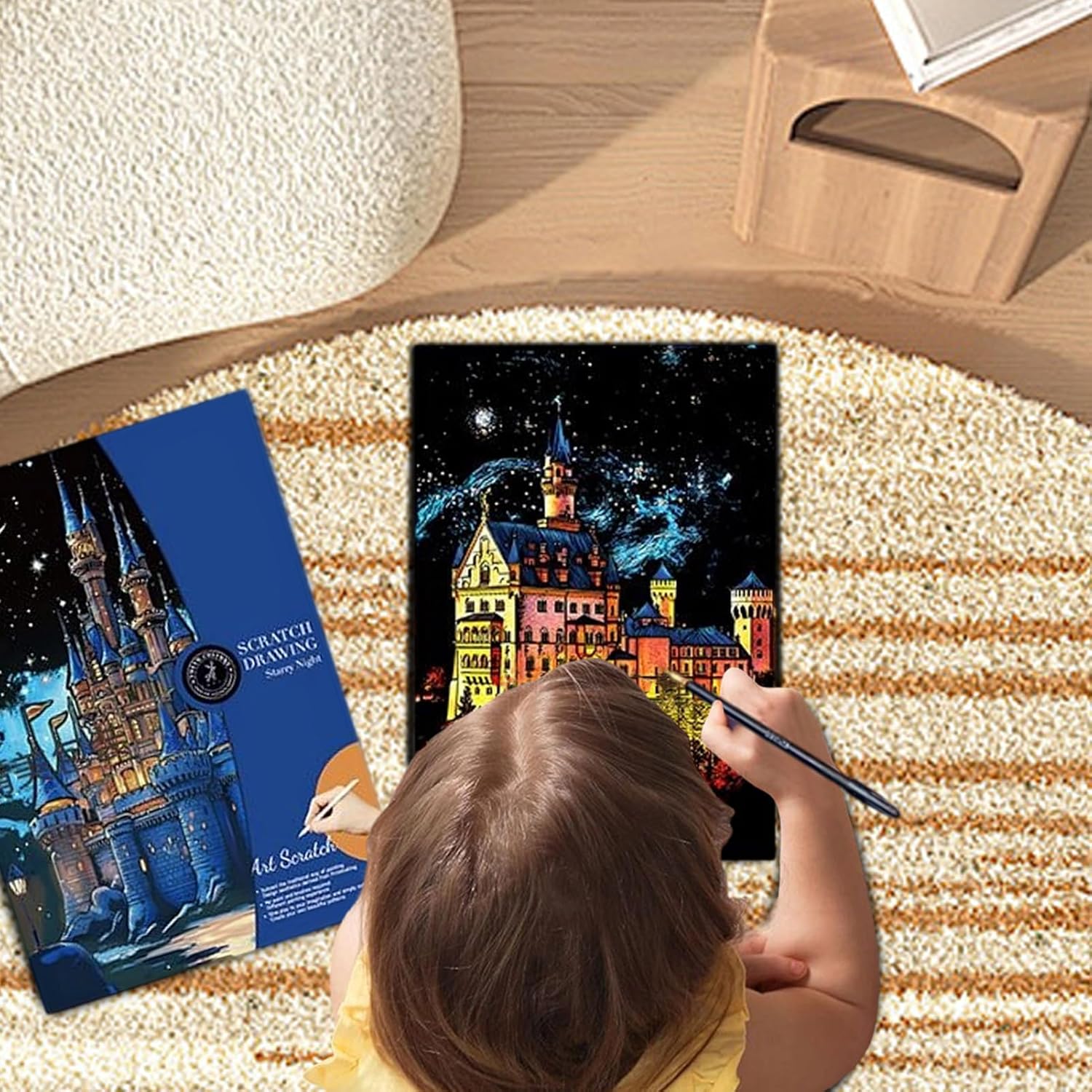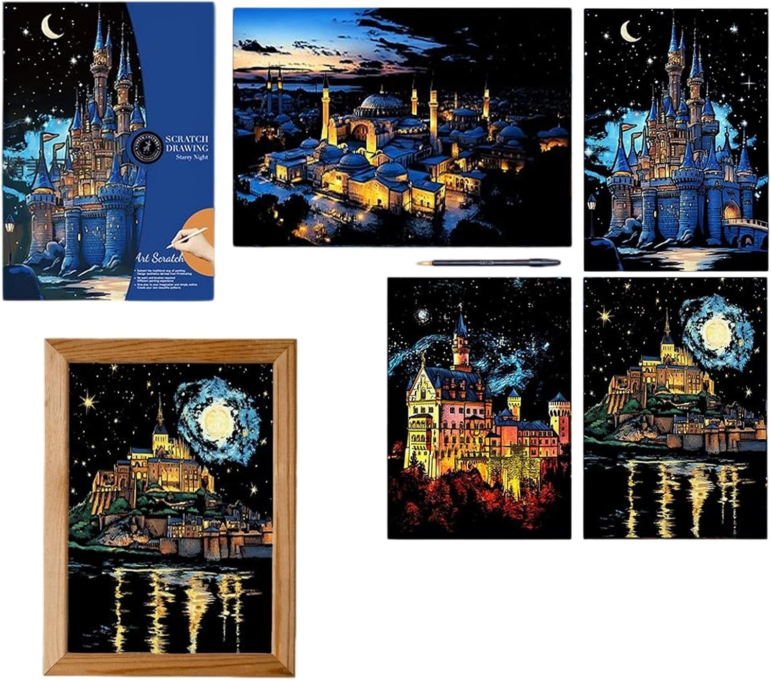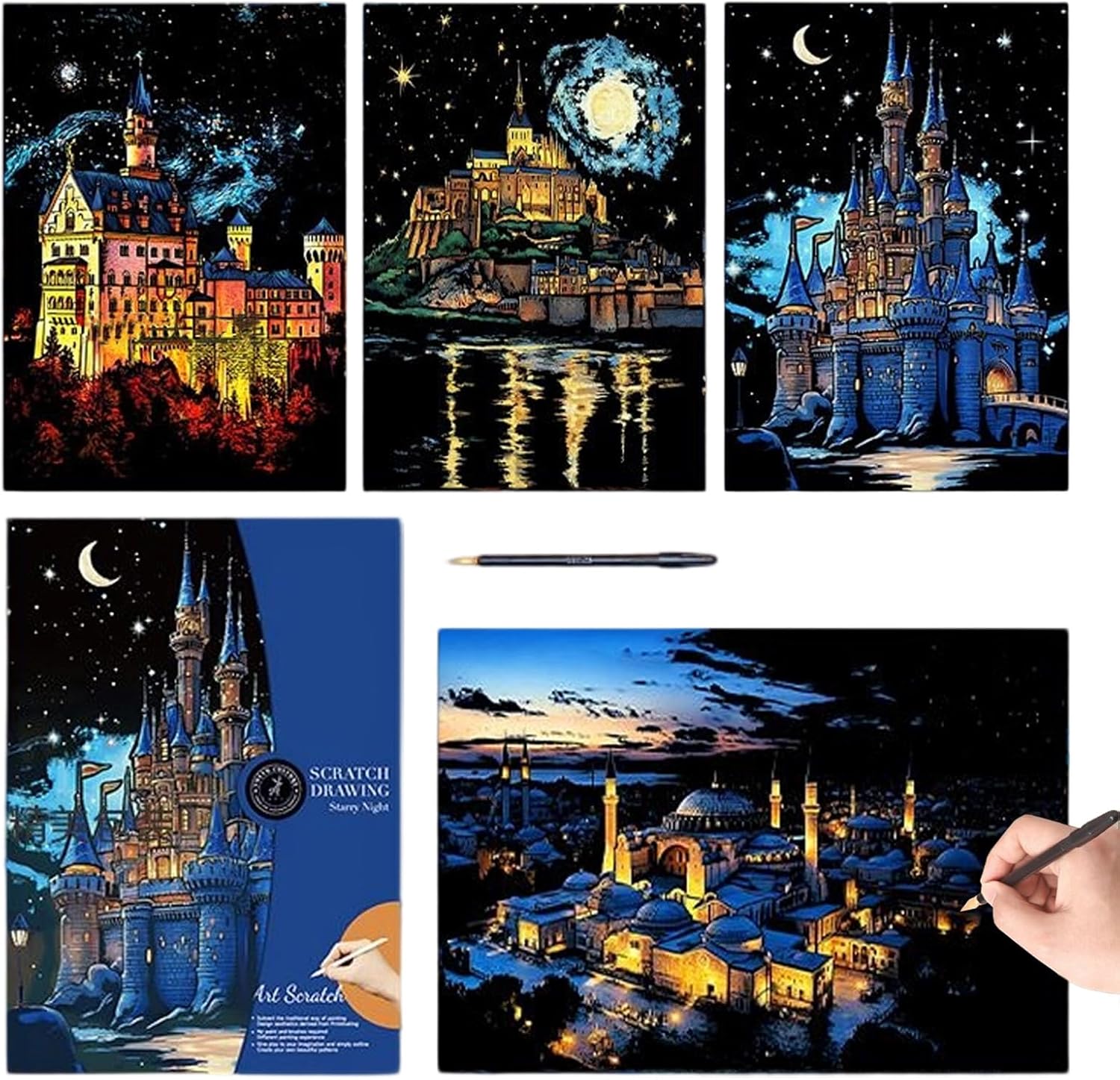 Strumento in legno incluso: fornisce un preciso strumento facile da tenere per graffiare via lo strato superiore per rivelare vivaci disegni nascosti sotto rendendo il processo creativo piacevole per artisti di tutte le età Formato A3: spazioso per opere d'arte dettagliate che consente di creare decorazioni da parete accattivanti ricordi personalizzati o unici che si distinguono come sorprendenti pezzi di conversazione in qualsiasi ambiente Strato di colore vivace: presenta uno speciale rivestimento che graffia in modo pulito per mostrare motivi multicolore luminosi sotto trasformando semplici movimenti in opere d'arte ipnotizzanti che affascina bambini adolescenti e adulti Incoraggia l'espressione artistica: progettato per stimolare l'immaginazione migliorando le capacità motorie e la coordinazione occhio-mano e la concentrazione, rendendolo una scelta eccellente per aule, feste, serate in famiglia o relax personale Design compatto a foglio singolo: facile da trasportare o regalare senza problemi, ideale per attività di viaggio, tempo di inattività creativo nelle sale d'attesa o come regalo di compleanno premuroso per chi ama progetti artistici pratici