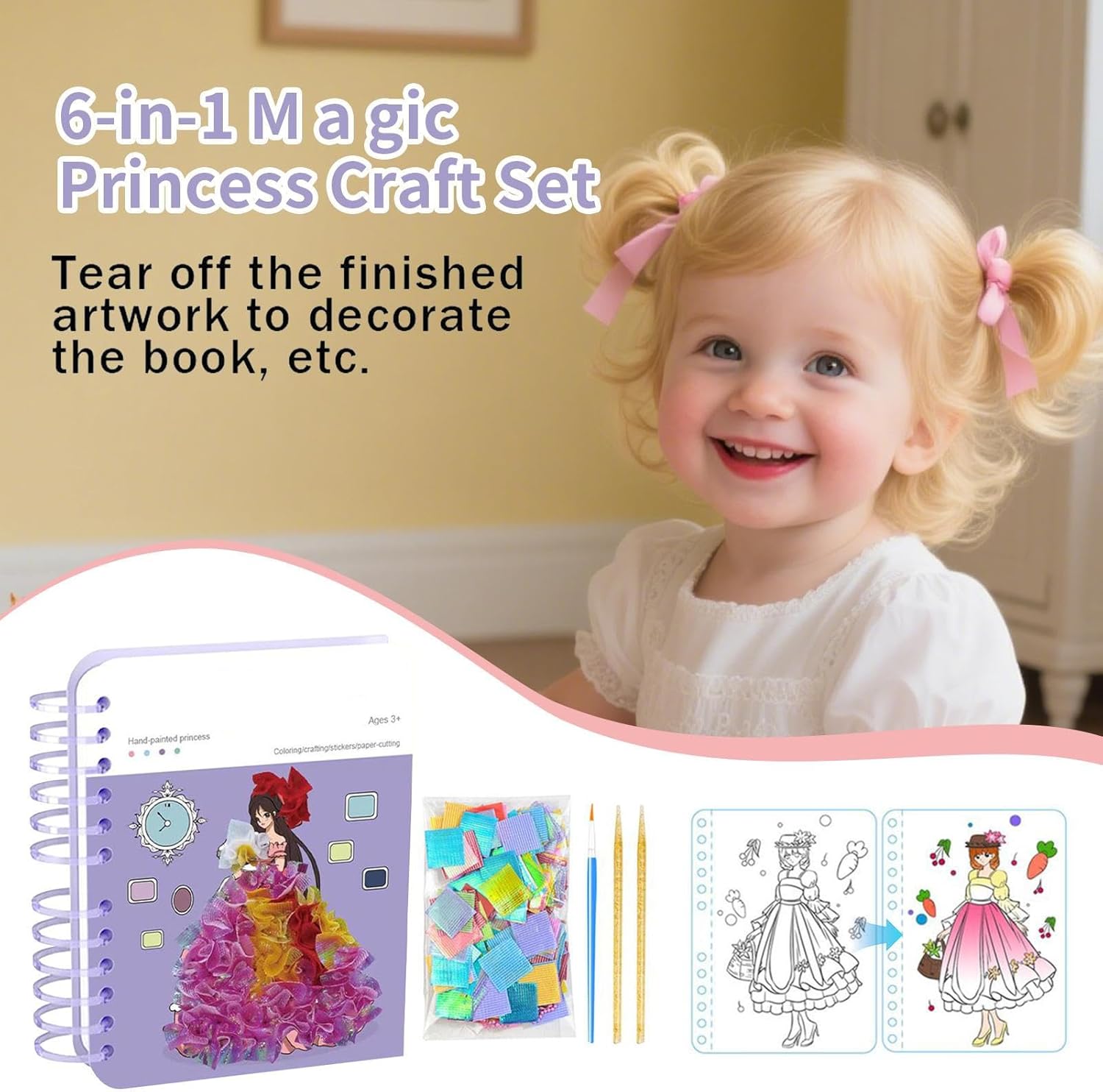Sviluppa il pensiero critico: questo kit di arte di pizzicamento stimola la risoluzione dei problemi e migliora le capacità di analisi attraverso un'espressione artistica giocosa, offrendo un'attività coinvolgente per progetti creativi in famiglia o realizzazioni individuali, favorendo l'apprendimento attraverso la pratica Regalo significativo: questo kit artistico con punzonatura per ragazze stimola l'espressione creativa grazie alle sue caratteristiche interattive, offrendo un senso di realizzazione e felicità che lo rende una scelta ideale per occasioni speciali come compleanni o feste. Libertà Creativa: questo kit artistico permette ai di progettare liberamente mescolando il e i tessuti per creare un mondo di principessa, stimolando il gioco immaginario e l'esplorazione artistica a casa o in classe, ideale per sviluppare la narrazione creativa e l'espressione personale Sviluppo Competenze: Unendo adesivi e pittura, questo kit incoraggia l'esplorazione artistica per migliorare le capacità tattili e l'assicurazione di durante il gioco o i progetti scolastici Pratico e accessibile: grazie al suo design senza materiali sicuri, questo kit offre un modo pratico per impegnarsi in attività creative. Semplice da usare in casa, a scuola o in occasione di eventi festivi senza complicate preparazioni