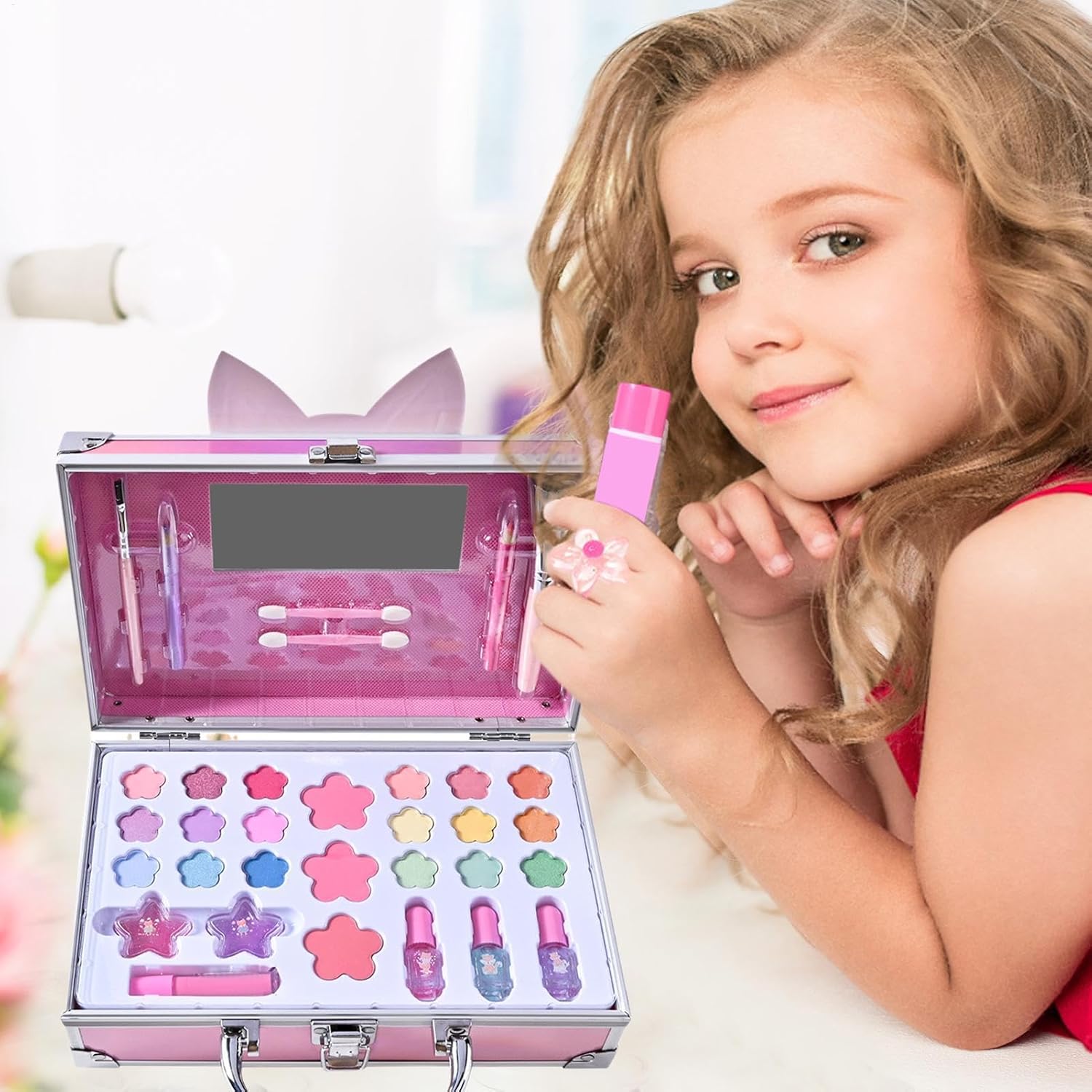 Delizia del trucco avanzata: include una varietà di accessori per il trucco, consentendo ai bambini di godersi il divertimento del trucco come mai prima. Lascia volare la loro creatività mentre innumerevoli look e stili, gioca a giochi per il trucco e divertiti con amici e familiari Promuovi la formazione delle capacità: migliora l'immaginazione, la concentrazione e l'abilità pratica di tuo figlio con questo coinvolgente kit di trucco progettato per la creatività pratica e la formazione sulle abilità Materiale per bambini: non preoccuparti e lasciare che l'immaginazione di tuo figlio si scateni durante il gioco con il nostro kit per il trucco per bambini. Realizzato con materiali sicuri, delicati e adatti alla pelle, garantendo alcun danno alla pelle delicata di tuo figlio Semplice da trasportare: il kit per il trucco per bambini di dimensioni moderate consente un facile trasporto, in modo che i bambini possano divertirsi a vestirsi ogni volta e ovunque vadano. Questo kit è molto portatile Ottimo regalo: favorisce l'immaginazione. Fornire più divertimento fantasioso alle ragazze che amano i giochi di trucco dando loro questo kit per il trucco per bambini come un eccellente compleanno per feste o il regalo per bambini