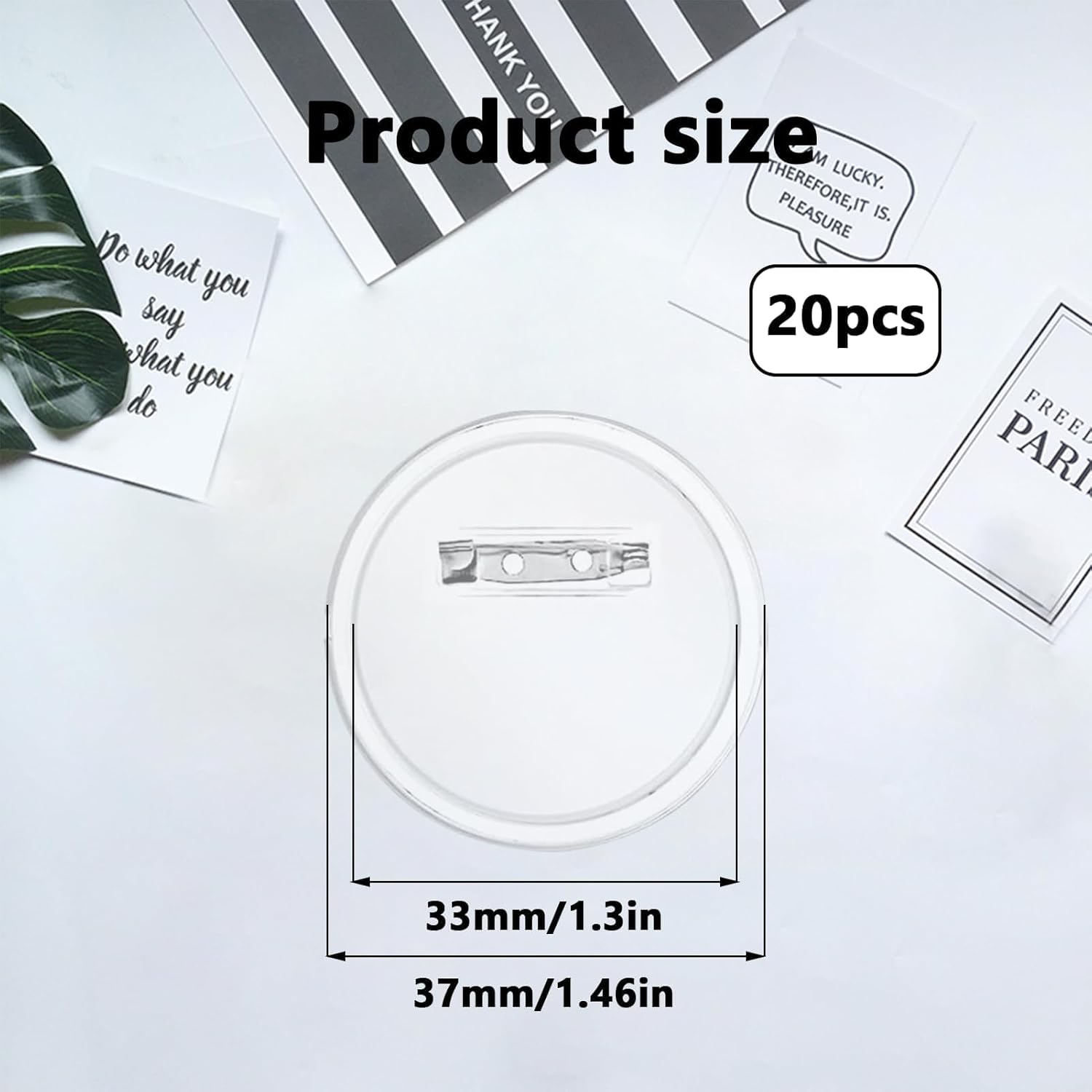 Il pacchetto include: 20 set di kit per la creazione di badge da 1,5" con spille, inclusi 20 spille anteriori e 20 posteriori. Diametro del pulsante: 37 mm, diametro dell'inserto: 33 mm. Materiale di alta qualità: realizzato in acrilico di alta qualità. I nostri badge sono forti, durevoli e resistenti a graffi e abrasioni. Ogni pulsante sulla parte anteriore e posteriore è confezionato singolarmente per un uso prolungato. Facile da applicare: non è necessario creare il proprio badge per la macchina per bambini. Premere insieme i pulsanti anteriore e posteriore, spingerli verso l'alto e intorno in entrambi indicazioni finché non senti un forte schiocco. Distintivi fai da te: perfetti per creare i tuoi disegni. Usali per creare badge di ricompensa, badge di compleanno, badge per feste, piastrine per cani personalizzate e regali fatti a mano.
