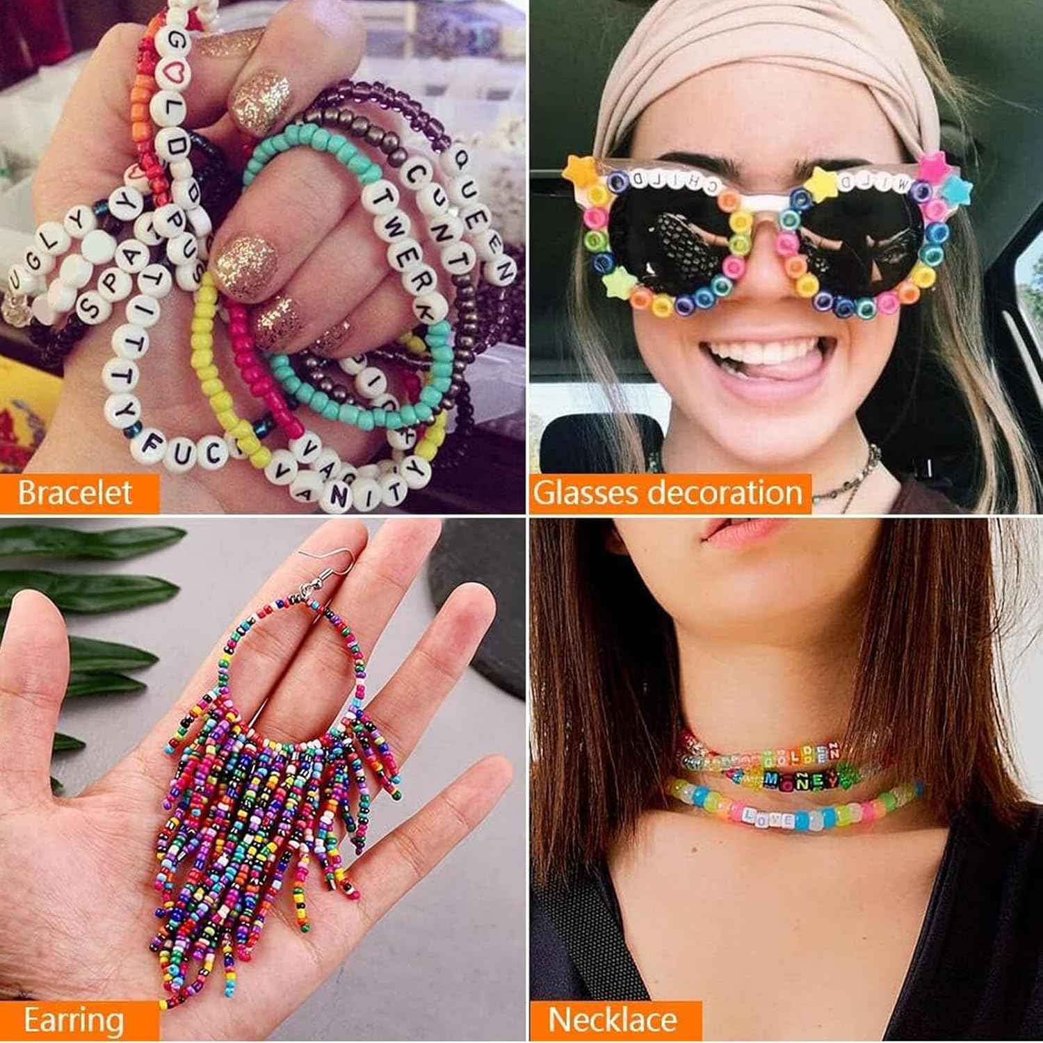 [Set di pezzi multipli] Crea vari gioielli fai -da -te con pentagrammi, cuori e modelli di petali. [Making fai -da -te] comprende 3600 piccole perle di grano di riso in 12 colori vibranti per braccialetti e gioielli personalizzati. [Perle di lettere] 3 sacchi di perle di lettere versatili in diverse dimensioni e forme per diverse opzioni di design. [Uso multifunzionale] Prepara collane, fasce per capelli, anelli e altro con questo kit adattabile. [Box di archiviazione] Mantieni i gioielli organizzati e sicuri nella comoda scatola di archiviazione inclusa.