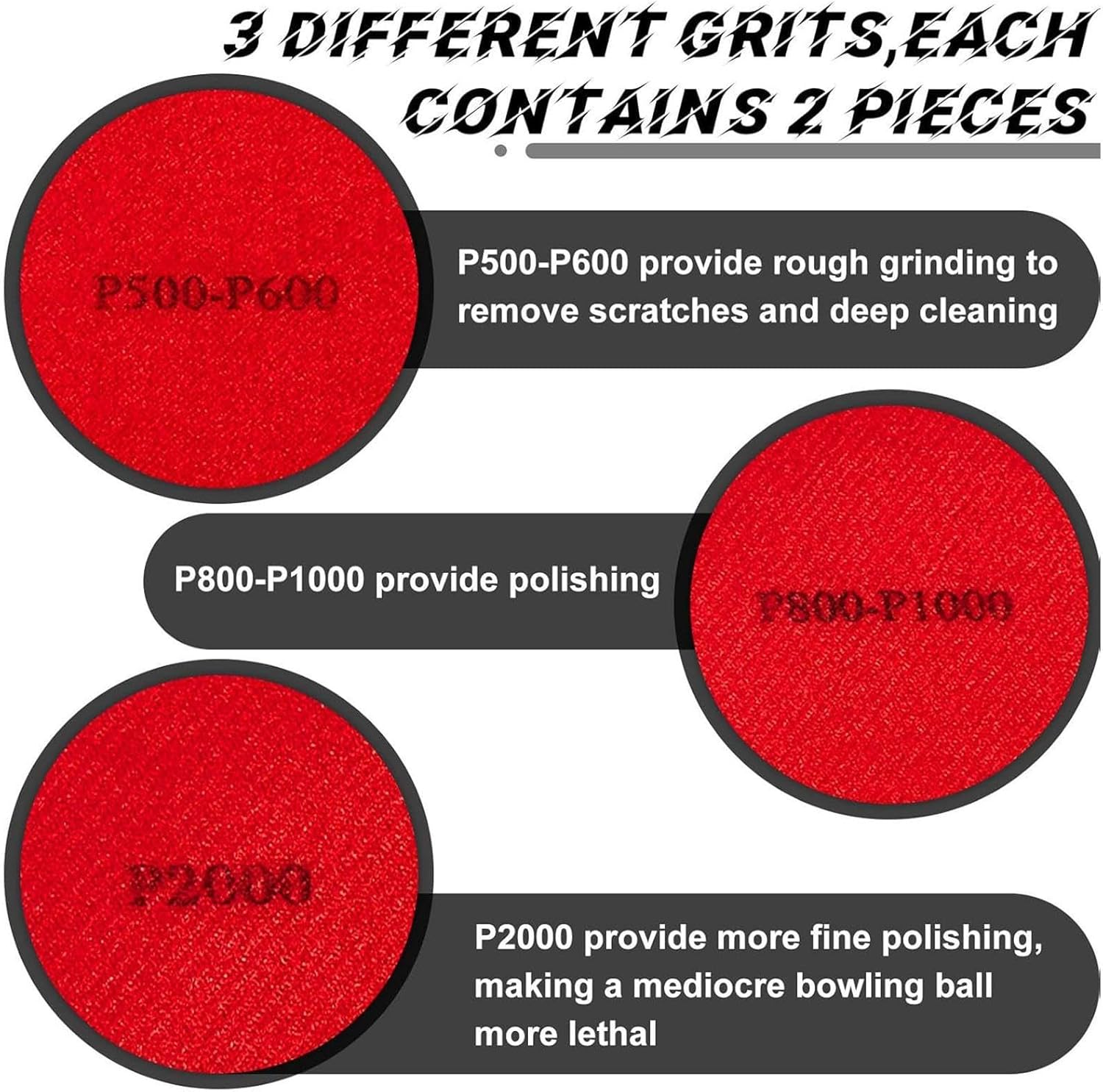 Scelta riflessiva e funzionale: Una scelta premurosa per i giocatori di bowling, questo set di pad leviganti offre una soluzione di manutenzione completa, dimostrando cura per le attrezzature e servendo come un regalo eccellente per gli appassionati che valorizzano l'organizzazione e la funzionalità Risparmio Temporale: Progettato per eseguire levigatura e pulizia in un'unica azione, riduce il numero di operazioni necessarie migliorando l'efficienza durante la manutenzione routine della palla Risultati di Levigatura Coerenti: Garantisce una performance di lucidatura uniforme ogni volta, supportata da un design esteso del pad che massimizza il contatto per una copertura e precisione migliori Vantaggio Pulizia Riutilizzabile: La microfibra morbida rende questo pad ideale per la manutenzione delle palle da bowling, assicura una pulizia efficiente e lunga durata senza compromettere le condizioni della palla Migliora le prestazioni della palla: Tre livelli di grana offrono modellatura e lucidatura precise, assicurando una superficie ottimale con opzioni grossolane, medie e fini per soddisfare tutte le esigenze di levigatura delle palle da bowling