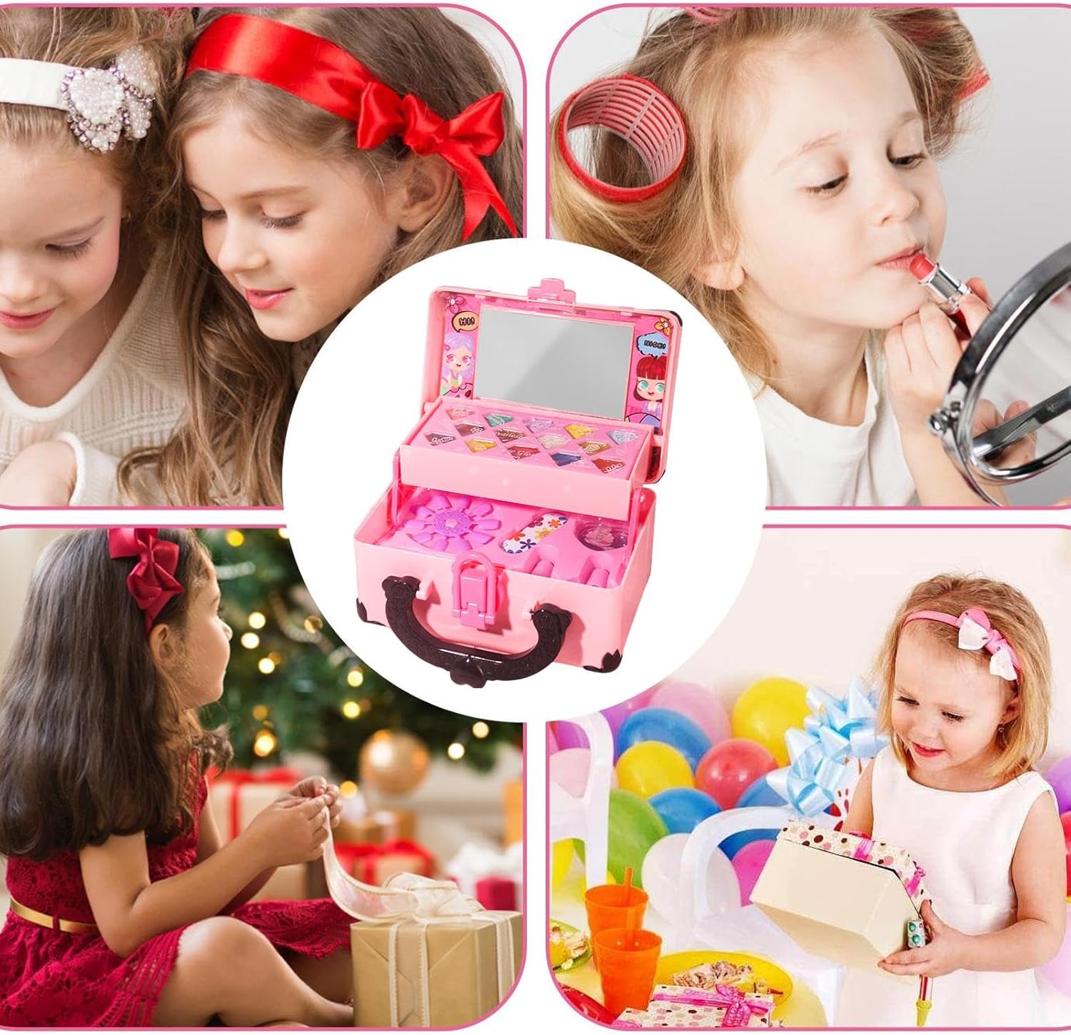 Kit cosmetico per bambini: con questo kit per il trucco per bambini, il tuo bambino potrà esplorare il mondo del trucco senza problemi. Progettato per le bambine per conservare rossetti, ombretti e altri prodotti per il trucco per bambini, è un modo divertente e accattivante per dare libero sfogo alla loro creatività. Comodo da usare: questo set di trucco per bambini è facile da usare e rimuovere, perfetto per le bambine che amano sperimentare nuovi look. Adatto ai bambini, promuove la creatività e il gioco immaginativo in modo adatto ai bambini. Ampia gamma di applicazioni: liberate la creatività della vostra bambina con il nostro kit di trucco per concorsi, uso quotidiano o feste per bambini. È progettato per la sicurezza e rende il trucco un'esperienza divertente e gioiosa Ingredienti adatti ai bambini: il nostro set di trucco per bambini è perfetto per i giovani nel mondo della bellezza. Con ingredienti sicuri e non irritanti, possono sperimentare con stile Stimolare l'immaginazione: con i suoi numerosi colori e strumenti, questo kit di trucco per bambini stimola l'immaginazione e crea un ambiente sicuro in cui i bambini possono liberarsi e divertirsi.