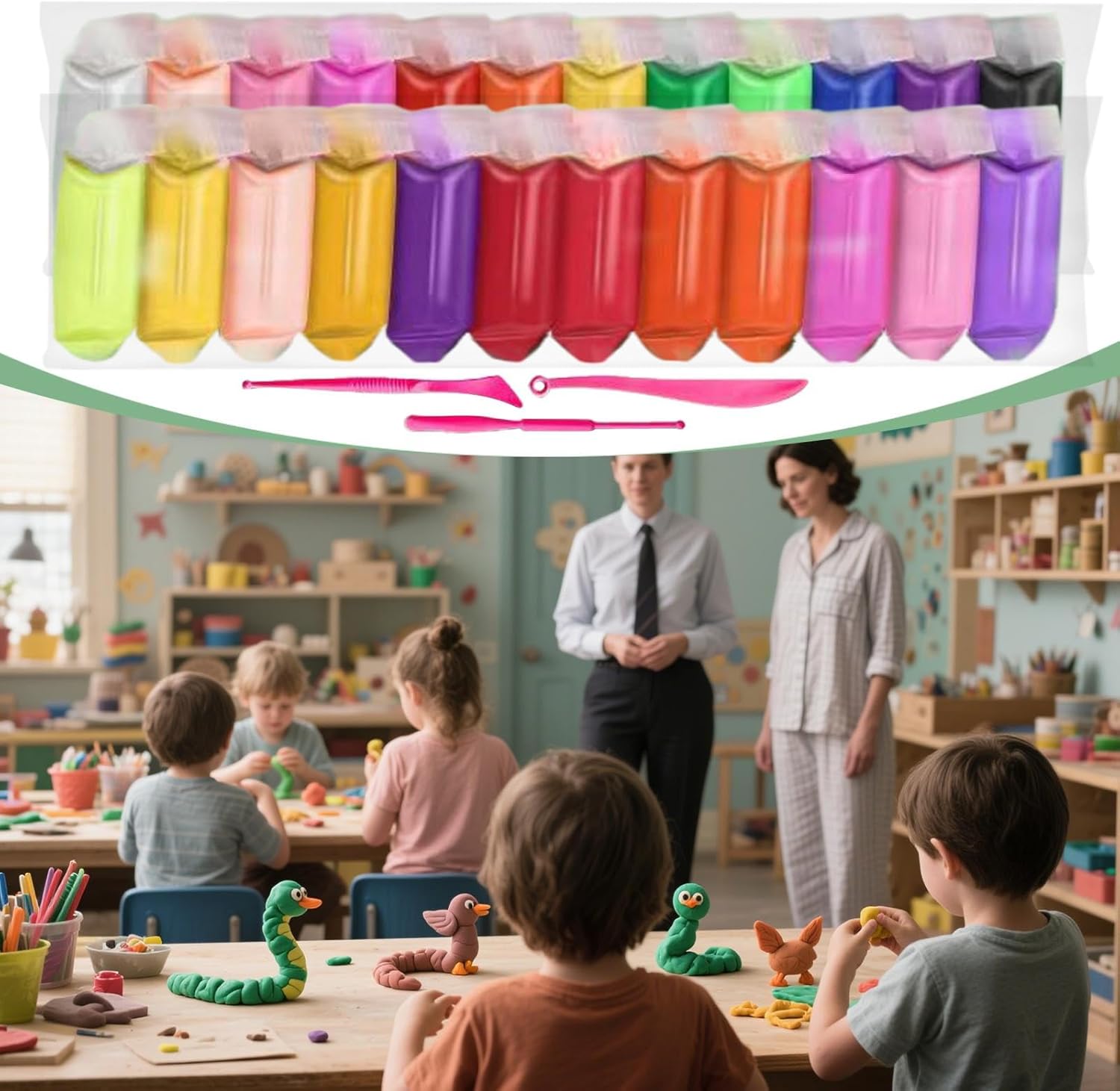 Esplorazione Cromatica: Scopri la bellezza degli strati di colore con creta modellabile che permette abbinamenti flessibili, stimolando progetti creativi e sviluppando nei bambini la capacità di percepire e mescolare le tonalità in modo naturale ed espressivo Morbidezza Facile da Manipolare: Ideale per creazioni ripetute grazie alla struttura ultra leggera che garantisce adattabilità a ogni esigenza creativa, con superficie liscia che non si attacca alle mani Motricità fine e cognitivo: La manipolazione della pasta modellabile stimola la risoluzione creativa di problemi e rafforza i muscoli delle mani, incoraggiando l'interesse per esperienze di apprendimento pratico in totale sicurezza favorendo lo sviluppo cognitivo attraverso attività tattili coinvolgenti Design Cosmico Ispiratore: Tracce luminose e frammenti meteoritici si fondono con plastilina spaziale per composizioni tridimensionali. Le particelle strutturali agevolano la creazione di crateri lunari realistici e nebulose galattiche dettagliate. Colori Puri Garantiti: I divisori isolati prevengono contaminazioni cromatiche durante le attività collettive, mentre gli attrezzi inclusi ottimizzano il flusso creativo mantenendo l'area di lavoro ordinata e funzionale