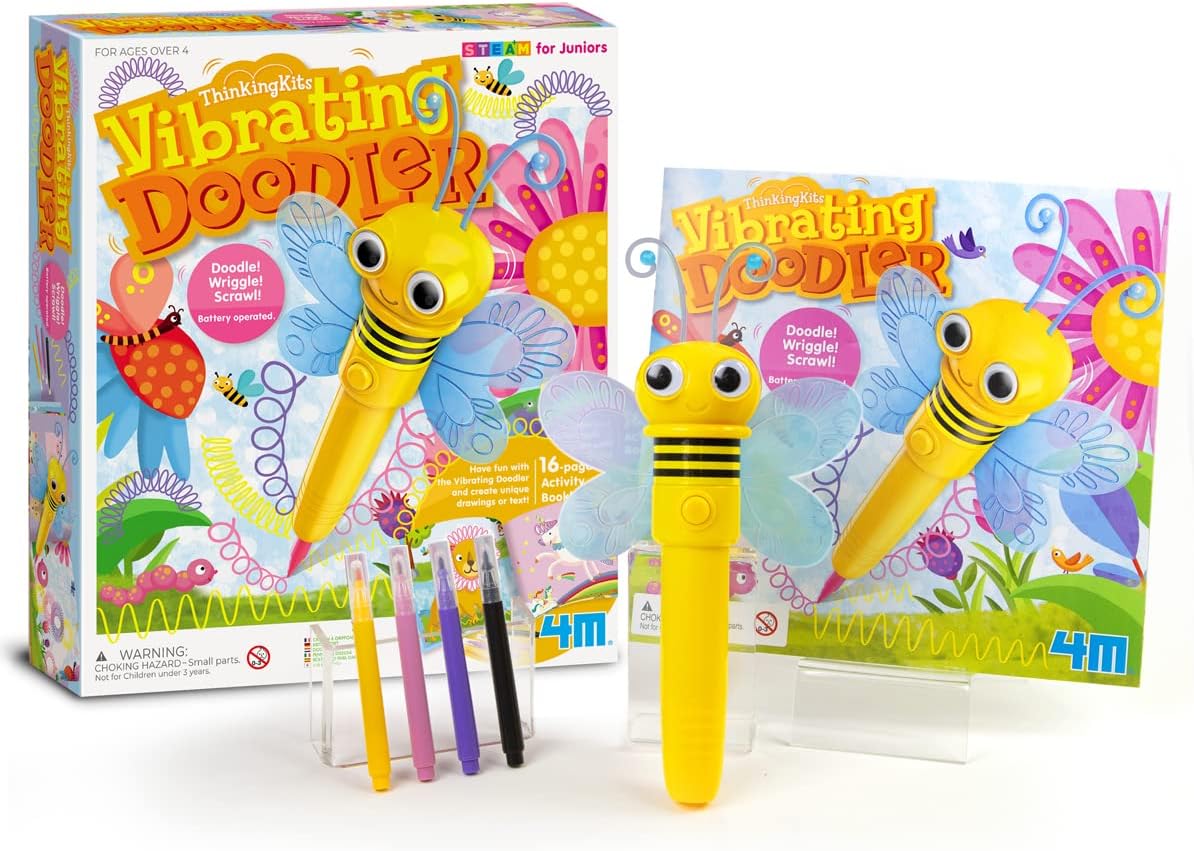 Divertiti con questa penna vibrante a forma di ape e crea disegni unici o scrivi scarabocchi, dimenamenti, scarabocchi: questa penna alimentata a batteria crea scarabocchi unici Include un libretto di attività da 16 pagine Questo è un kit a vapore per bambini dai 4 anni in su L'apprendimento attraverso il gioco inizia in giovane età, i kit di pensiero basati sul vapore sono per le giovani menti che amano imparare attraverso il gioco
