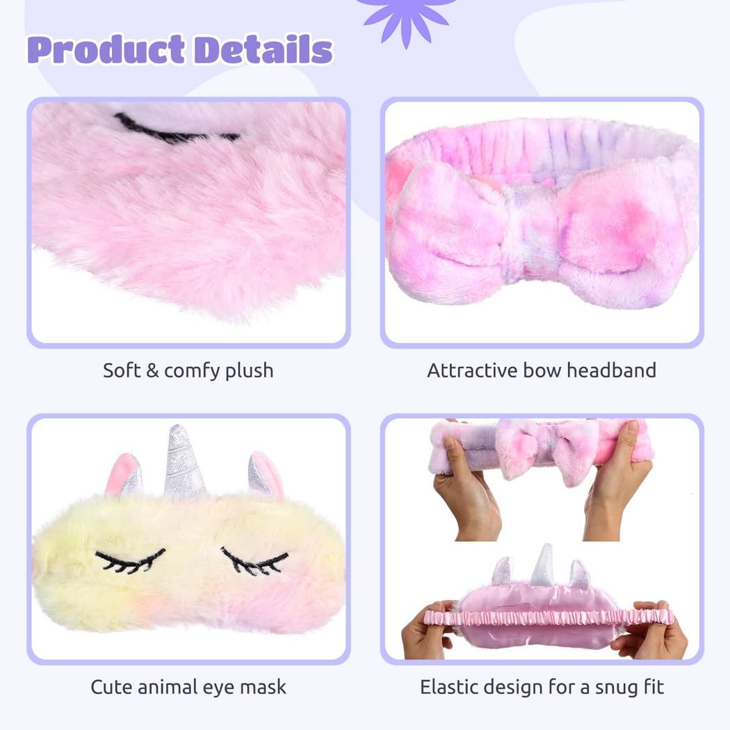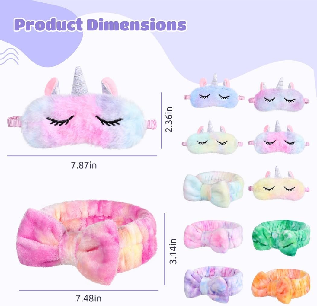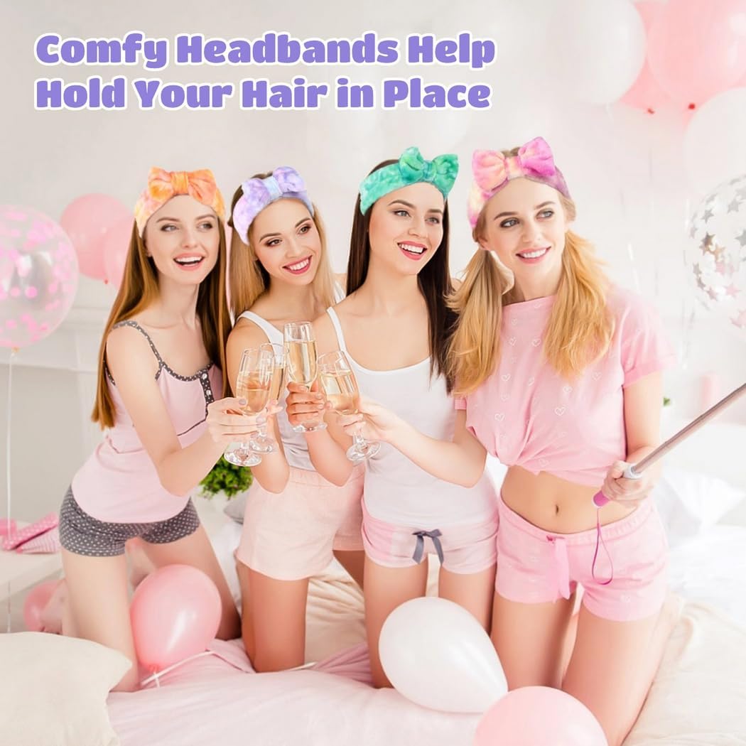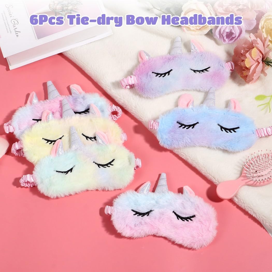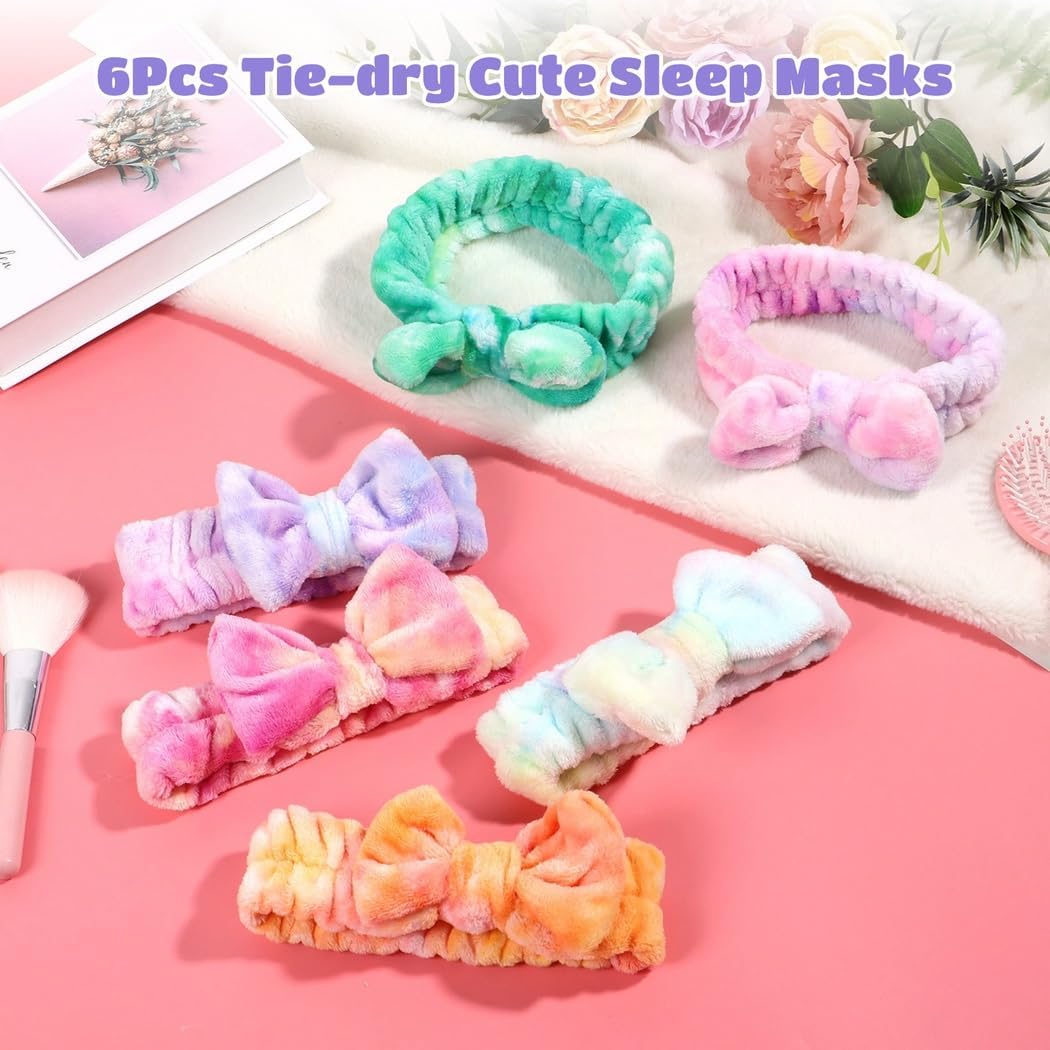 Essenziali per il pigiama party: questo set da 12 pezzi include 6 adorabili fasce per capelli con fiocco e 6 simpatiche maschere per dormire; ideale per un'esperienza memorabile in pigiama party Tessuto felpato ultra morbido: goditi il lusso con queste fasce e maschere in peluche, progettate per morbidezza e comfort; per rilassarsi in spa o andare a letto Comoda vestibilità elastica: le fasce elastiche e le maschere per dormire si adattano comodamente, garantendo una vestibilità aderente ma delicata senza spremere; ideale per la cura del viso e il sonno Arte unica tie-dye: vivaci motivi tie-dye adornano ogni fascia e maschera; dona un'atmosfera creativa e artistica al tuo look pigiama party Multifunzione: ideale per pigiama party, giornate termali, eventi di bellezza e molto altro ancora; questo set aggiunge stile e comfort a una varietà di occasioni