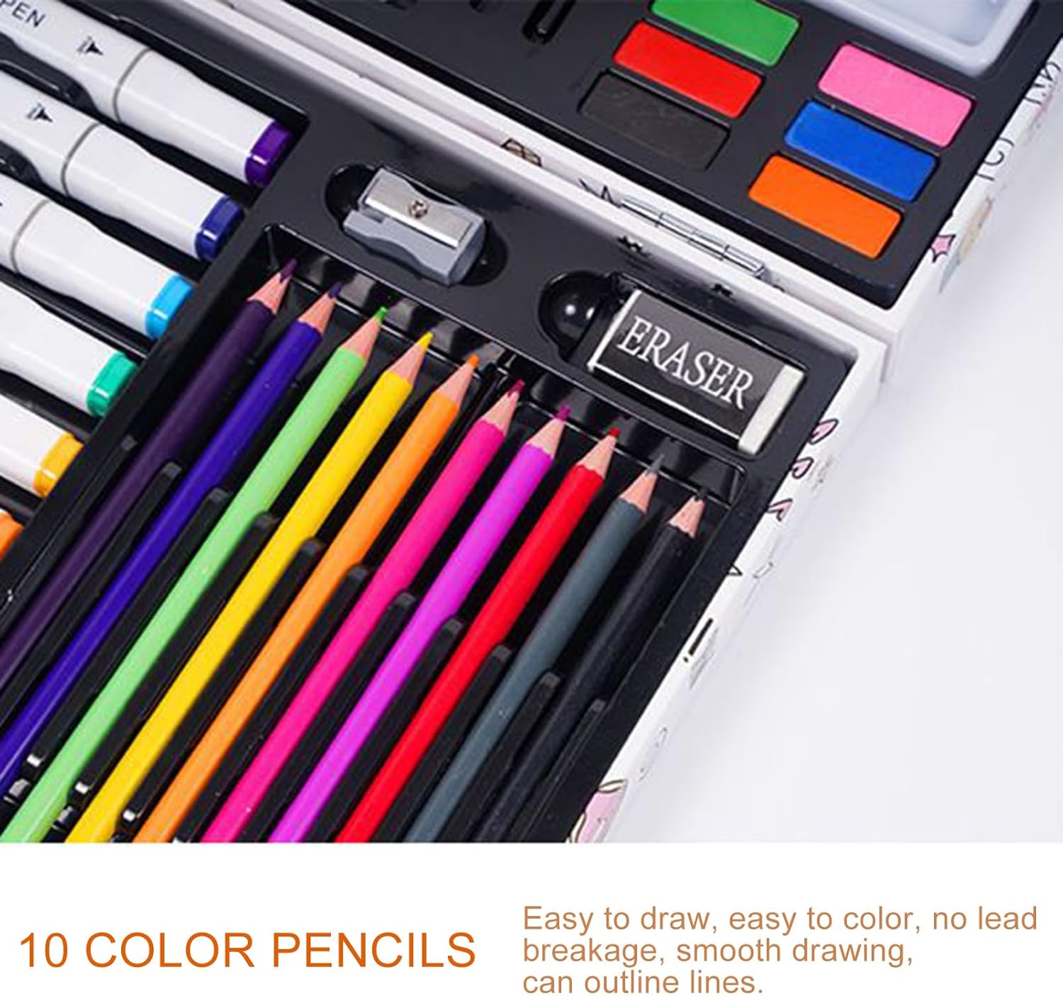 Creatività Personalizzabile: La combinazione di matite acquerellabili e utensili modulari offre infinite opzioni creative, permettendo di sviluppare tecniche uniche attraverso strumenti adattabili Protezione ottimale: Strumenti con finitura ultra-liscia e composizione neutra che rispetta l'epidermide, ideali per tecniche a /olio/tempera - il design ergonomico riduce l'affaticamento durante le lunghe sessioni artistiche Portabilità ottimale: Struttura organizzata razionalmente con scomparti dedicati, custodito in pratica valigetta leggera che mantiene intatti colori e , soluzione perfetta per artisti in movimento Colori intensi potenziati: La pittura rivela brillanti con tonalità vivaci che esaltano ogni dettaglio, garantendo percezione cromatica nitida e profondità artistica istintiva Strumento educativo precoce: Proposte creative che uniscono apprendimento cromatico e sviluppo motorio fin dalla prima infanzia. Approccio multisensoriale che trasforma ogni attività pittorica in un'opportunità di crescita armoniosa.