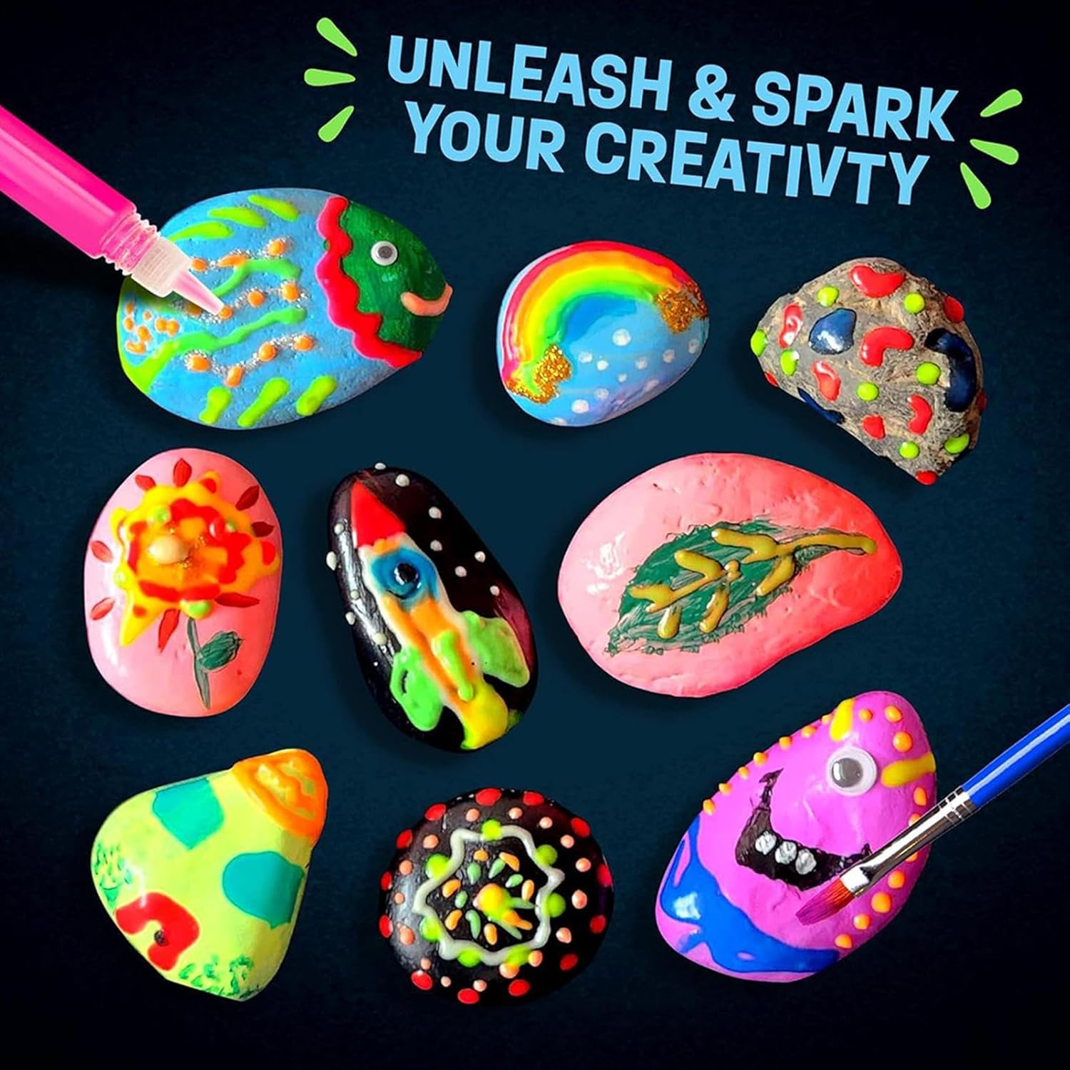 Miglioramento dell'atmosfera della camera da letto: progettato con una funzione di auto-bagliore, questo kit di pittura rocciosa eleva l'atmosfera della camera da letto creando un display stravagante per la camera oscura, fornendo decorazioni creative notturne e consentendo agli utenti di ammirare l'arte della pietra luminosa per un ambiente sereno e visivamente accattivante Formazione della composizione del colore: con il kit di pittura su roccia per bambini, i bambini imparano la teoria del colore e le tecniche di composizione in modo naturale, migliorando la loro comprensione dei principi artistici creando disegni innovativi adatti per la condivisione o la visualizzazione Creatività ispirata alla natura: il kit artigianale di pittura sulle rocce include pietre di forma unica che si adattano a diverse dimensioni delle mani, promuovendo un'esperienza artistica inclusiva in cui i principianti possono essere comodamente coinvolti nelle attività di pittura, adatte per promuovere l'immaginazione durante le riunioni di famiglia Attività di legame familiare: con dipingere rocce per bambini, le famiglie godono di kit di co-creazione che includono istruzioni passo-passo, promuovendo la collaborazione tra genitori e bambini mentre lavorano insieme in modo creativo durante il gioco al chiuso o le avventure all'aperto Creatività migliorata: progettato come un articolo educativo pronto per le vacanze, il kit di pittura rocciosa per bambini offre una longevità migliorata per fornire risultati vivaci e duraturi; la sua capacità di unire la decorazione con l'uso pratico lo rende adatto per progetti collaborativi, promuovendo la gioia condivisa