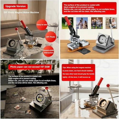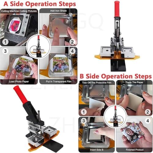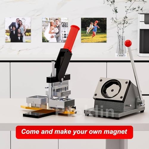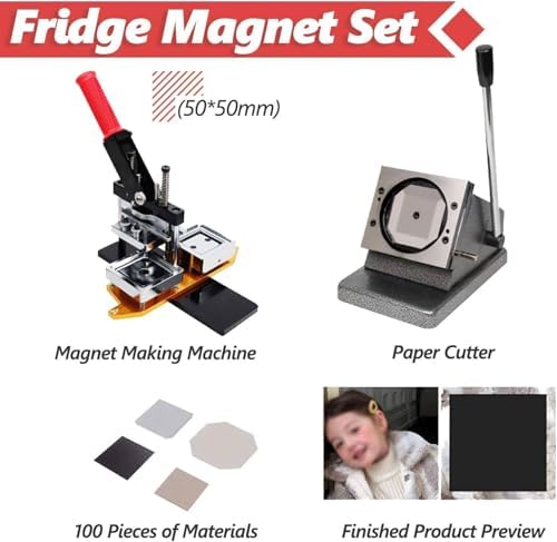 Regalo creativo: con la creatrice di adesivi per frigorifero, può essere utilizzata per realizzare calamite fotografiche, decorazioni, badge di nozze, artigianato in classe, ecc. Non vediamo l'ora di vedere altri tuoi progetti creativi! Magnete per frigorifero con foto: i magneti per frigorifero possono essere utilizzati non solo come decorazioni, ma anche come porta biglietti da visita, segnalibri magnetici, cornici magnetiche e altri oggetti pratici, che possono essere fissati sul frigorifero o ovunque tu voglia ★【Dimensioni del magnete per foto aggiornate】 Le dimensioni della macchina per la produzione di adesivi fotografici sono 50 x 50 mm, 63,5 x 63,5 mm, 53 x 80 mm, 65 x 90 mm, 80 x 80 mm, 5 misure, con 120 set, 500 set e 1000 set di materiali, è possibile scegliere la dimensione e il materiale di cui hai bisogno per realizzare magneti magneti frigo Comfort e precisione: la macchina per badge da frigorifero è ottimizzata in termini di risparmio di manodopera e design di posizionamento, quindi la pressione è più accurata, è necessaria meno forza di pressione e il manico migliora il comfort, rendendo facile per tutti creare pulsanti ★【Facile da usare】Dopo aver tagliato l'immagine con la macchina da taglio, mettere il foglio di ferro, la foto e la pellicola trasparente sul lato A e B a turno: strappare la pellicola protettiva della colla magnetica, incollare il cartone, metterlo sul lato B, premere prima il lato A, quindi premere il lato B e il prodotto finito è completato. Può essere utilizzato per realizzare magneti da frigorifero, bottoni e distintivi