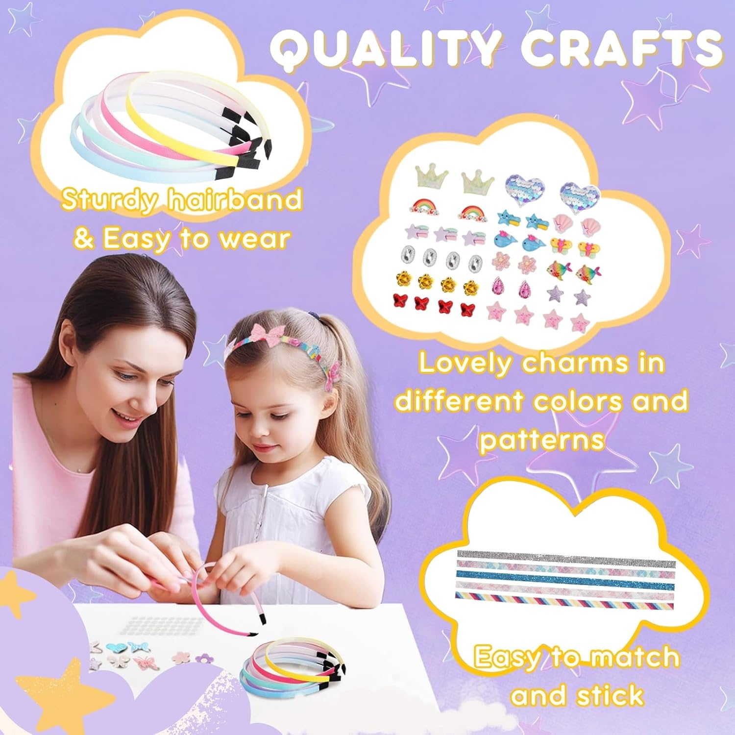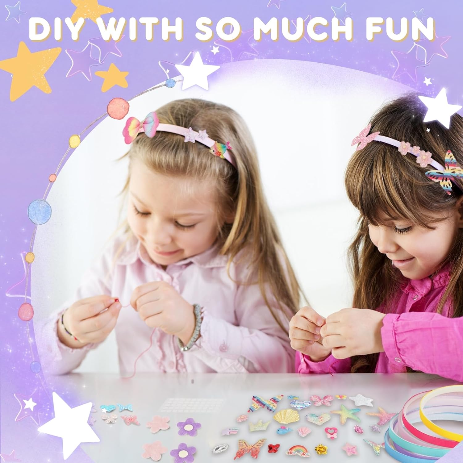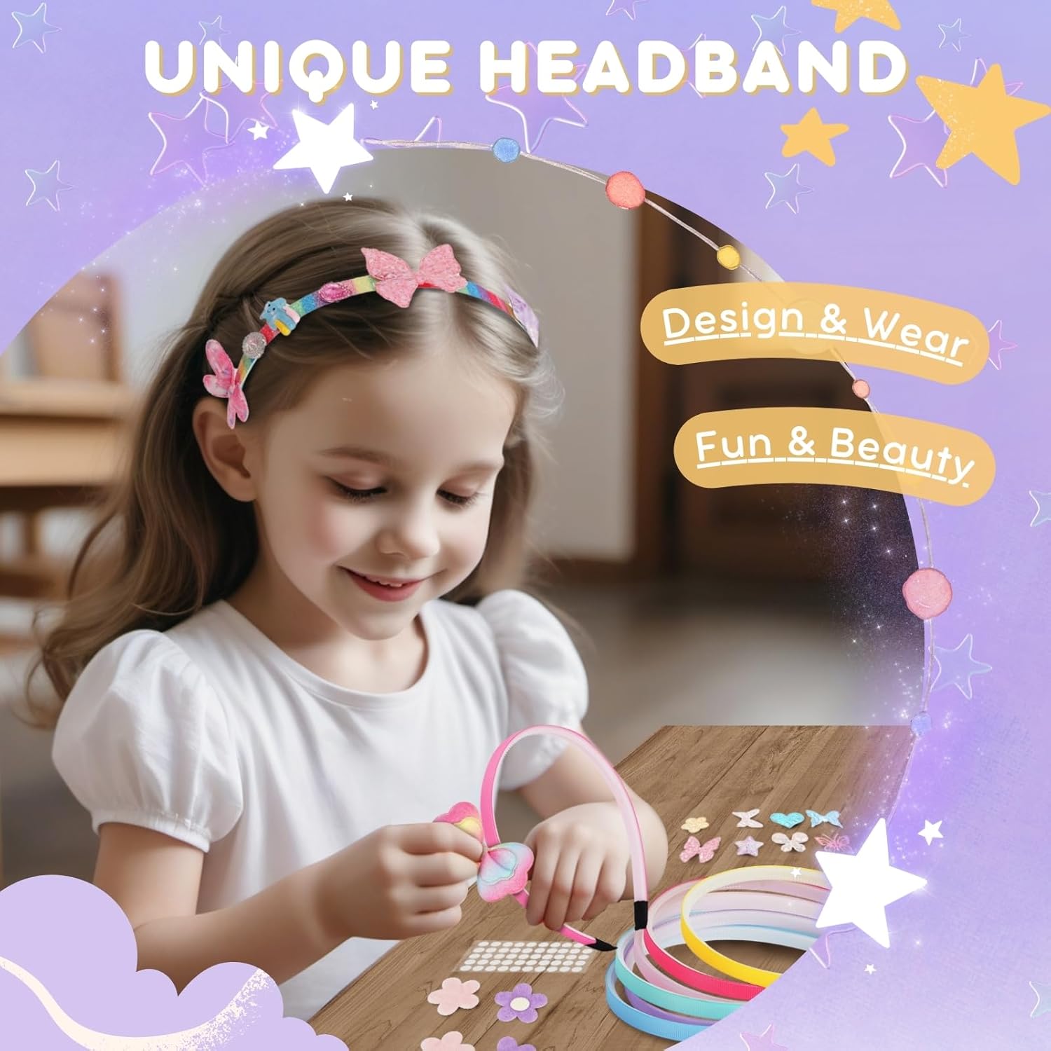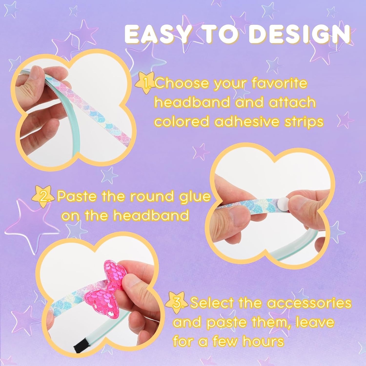 Set ricco: il kit fai-da-te della fascia per capelli contiene 55 accessori. 6 fasce per capelli, 6 nastri adesivi decorativi, 43 accessori decorativi (fiori, corone di fiori, farfalle, stelle, fiocchi, ecc.), nano adesivi (50 pezzi). Abbastanza accessori per consentire ai bambini di mescolare e abbinare e diventare creativi per creare le proprie decorazioni per capelli. Facile da usare: questi nastri per capelli sono perfetti per le bambine di età compresa tra 5 e 12 anni per creare decorazioni per capelli uniche in pochi semplici passaggi. Rimuovi la pellicola protettiva nella parte inferiore delle strisce adesive del nastro decorativo e attaccale sulle fasce per capelli per creare le tue creazioni, inoltre puoi attaccare in sicurezza una varietà di accessori utilizzando i nano adesivi inclusi Materiali di qualità: il kit fai-da-te per bambini è realizzato in plastica di alta qualità senza odori particolari, che garantisce la sicurezza e il comfort dei bambini durante il processo fai-da-te e consente alle madri di assicurarsi che i loro bambini siano liberi di giocare Creatività e immaginazione: combinando diversi accessori decorativi, i bambini possono usare la loro immaginazione per creare diversi fasce per la testa, che non solo migliorano la coordinazione occhio-mano, ma imparano anche ad abbinare i colori di base, sviluppano la percezione del colore e l'estetica della moda e migliorano la creatività e l'immaginazione. Regalo creativo: il set per realizzare fasce è perfetto come regalo di compleanno per ragazze, compagni di classe, sorelle, per Pasqua, Halloween, Natale, Carnevale, Festa dei bambini, feste e balli studenteschi. È anche una buona scelta per tutti i tipi di attività scolastiche, attività genitore-figlio