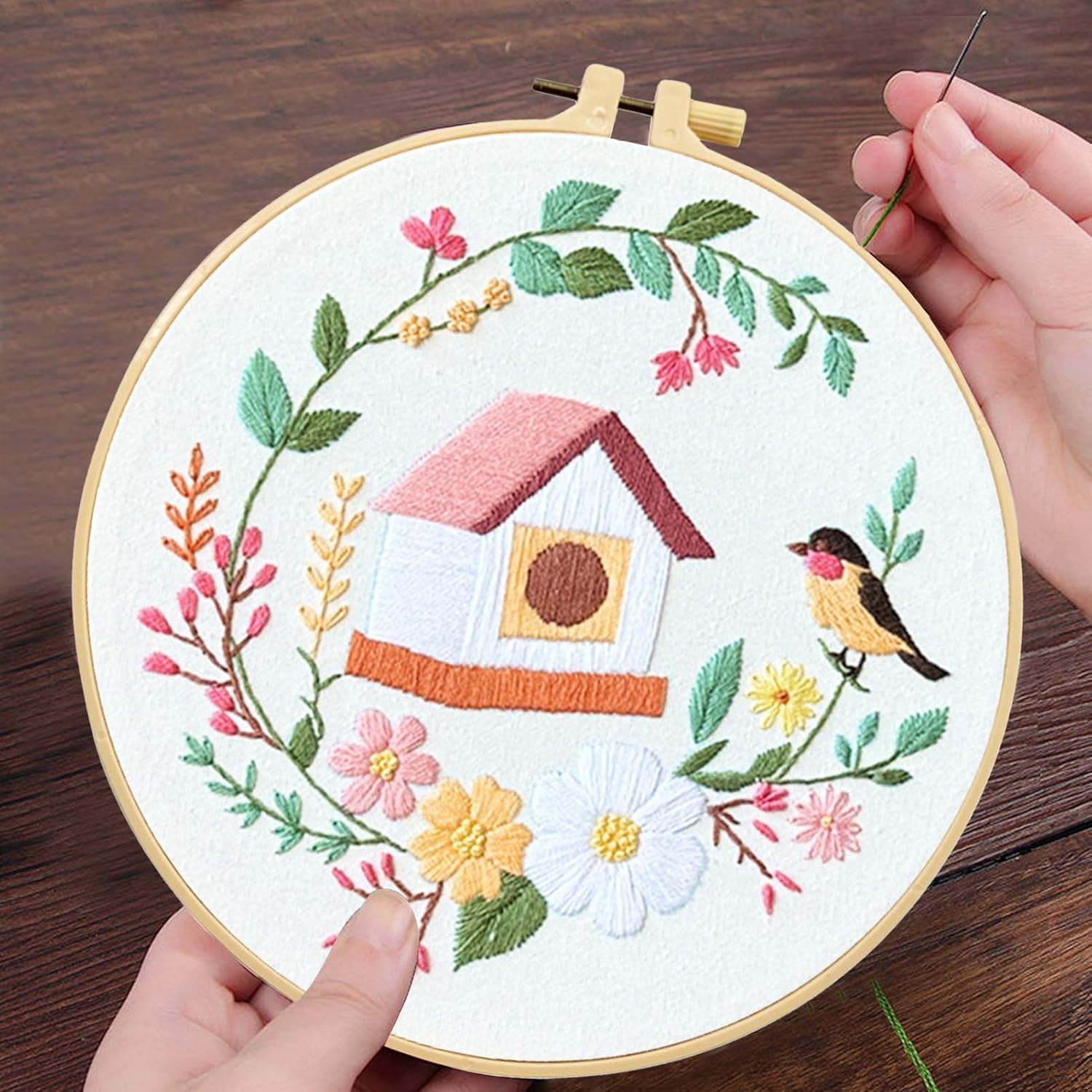 Design elegante: eleva l'aspetto del tuo spazio con il nostro kit di pratica per ricamo, mostrando un motivo unico di uccelli e case. Il design creativo aggiunge un tocco personale alla tua casa Comodo da usare: include strumenti e tessuti completi, offrendo un design intuitivo che consente di risparmiare tempo, semplifica il processo e viene fornito con istruzioni chiare passo dopo passo (lingua italiana non garantita) Squisita fattura: realizzato con abilità tradizionali esemplari, questo kit di pratica presenta dettagli e colori squisiti, offrendo un effetto di ricamo unico e delicato Ampia gamma di applicazioni: adatto per adulti o bambini, ampiamente utilizzato per adornare pareti in salotti, camere da letto o sale studio, favorendo la crescita artistica Fantastico regalo: sorprendi la tua famiglia e gli amici con questo kit di pratica per ricamare! Pratico e piacevole, è un regalo perfetto di compleanno e vacanza per familiari e amici