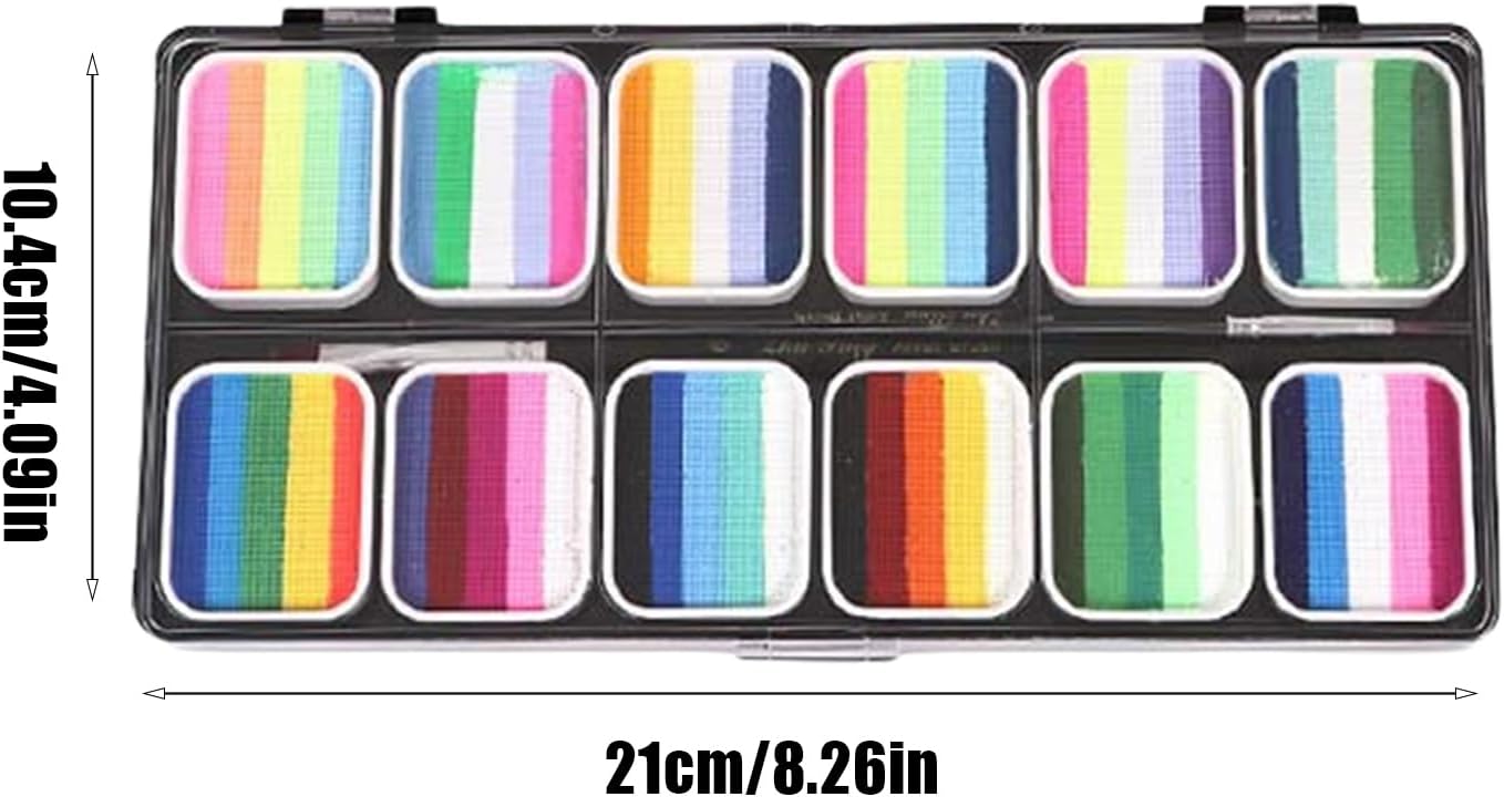 Cosmetici Sicuri: Composizione delicata e non irritante per un divertimento senza preoccupazioni, rimovibile completamente con acqua in modo rapido e semplice Performance Ottimale: Pittura facciale idrosolubile scorrevole si muove armoniosamente con le espressioni, caratterizzata da eccellente stesura e finitura affidabile anti-screpolatura per risultati artistici impressionanti Vivace: Combinazione di colori intensi e coprenza elevata offre super pigmentate per migliorare progetti di trucco artistico creativo Strumento Creativo:Fornisce disegni creativi adatti a eventi a tema, spettacoli, Halloween e feste, garantendo facilità d'uso in molteplici scenari celebrativi con design versatili e pratici Multifunzionale: Kit pittura facciale con pennelli, stampini e strass per diverse occasioni. Il design user-friendly supporta l'esplorazione di idee artistiche anche per neofiti, promuovendo espressione creativa in contesti sociali.