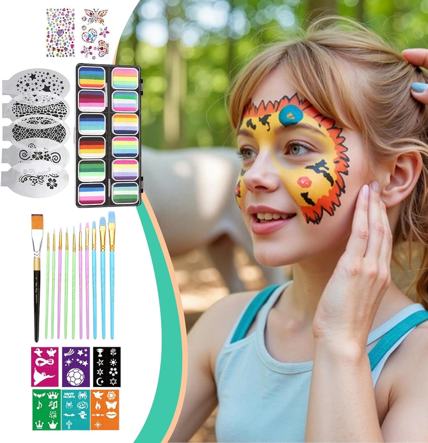 Formula Affidabile: Prodotto studiato per la pelle delicata infantile, offre comfort prolungato e pulizia semplice con rimozione ad acqua in pochi secondi Versatilità Artistica: Pittura viso liscia e flessibile si adatta ai movimenti del viso senza sforzo, offre alta stesura e formula idrosolubile che garantisce una finitura omogenea resistente a screpolature durante l'uso Pigmentazione Elevata: altamente pigmentate looks sorprendenti con colori vibranti, coprenza ottimale e massima creatività per appassionati Stile Innovativo:Porta innovazione a eventi tematici, palcoscenici o ricorrenze stagionali come Halloween, supportando utilizzi diversificati in contesti celebrativi e performativi con colori vivaci e coprenti Facile per Principianti: Dotato di strumenti intuitivi come pennelli, sagome e cristalli, questo set artistico semplifica la pittura facciale. La confezione pronta all'uso stimola la creatività senza complicazioni durante feste, carnevali o occasioni speciali.