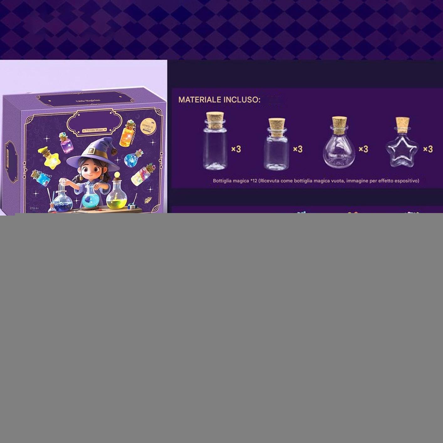 Creazione Artigianale Incantata: Realizza effetti visivi luminosi mentre crei un oggetto decorativo da conservare, che funge anche da decorazione scrivania fantasy con finitura scintillante e traslucida Divertimento in 3 Fasi: Semplifica la creatività con attività a step progressivi; il operativo facile include materiali pretagliati e guida in tre passaggi, garantendo un'esperienza intuitiva tramite istruzioni visive dettagliate passo passo Design Protettivo: Componenti morbidi, flessibili e inodori con bordi arrotondati, garantiscono manipolazione sicura nelle attività creative infantili Divertimento Autogestito: Incoraggia il gioco pratico che stimola immaginazione e percezione sensoriale, potenziando le capacità di progettazione autonoma di pozioni attraverso esperienze hands-on Gioco Collaborativo: Promuove scenari interattivi e apprendimento con giochi di ruolo, rafforza lo spirito di durante attività creative di gruppo e crea momenti significativi di crafting tra genitori e bambini