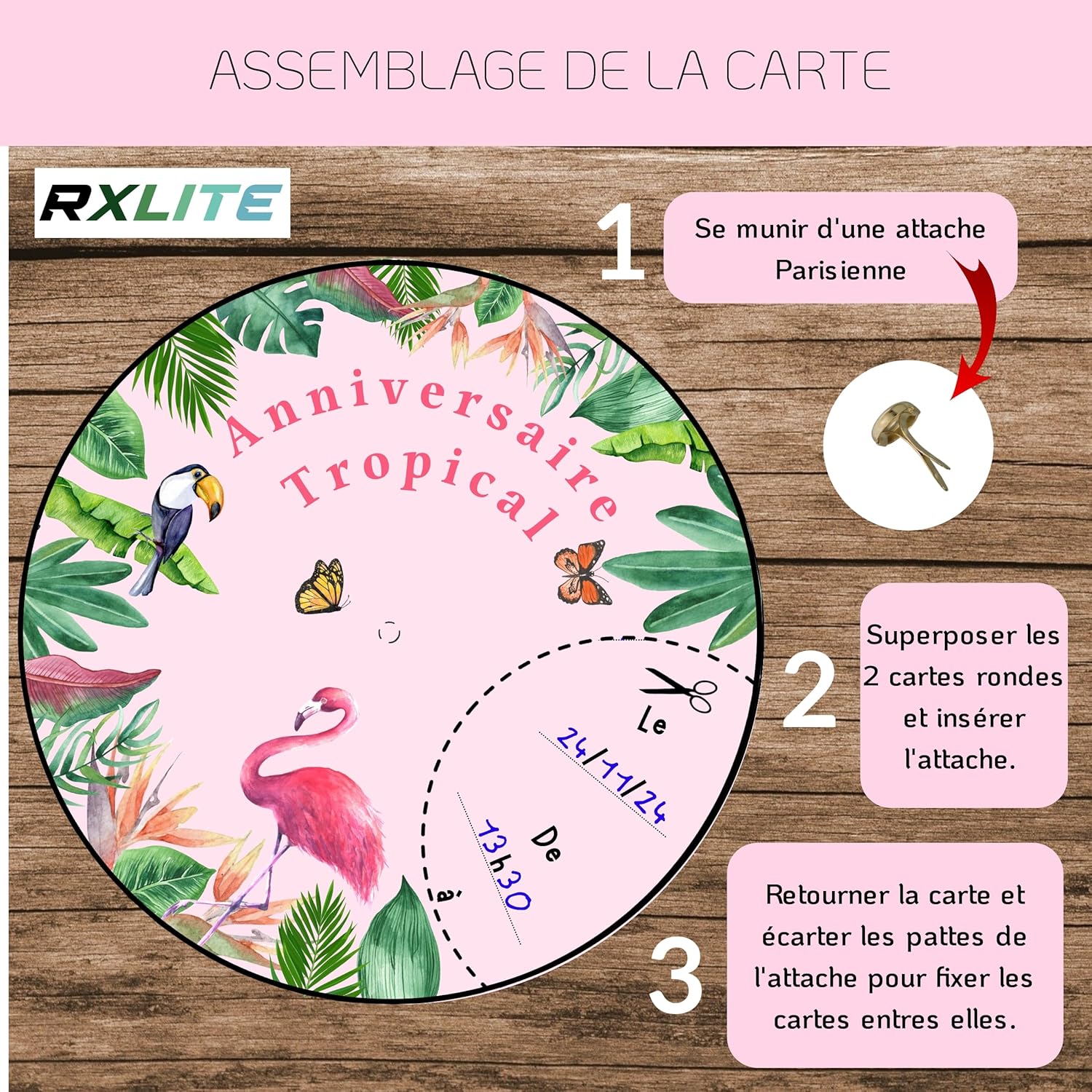 Inviti di compleanno tropicali: un set di 10 biglietti di compleanno rotondi a tema tropicale con motivi fenicotteri. Ogni biglietto consente di rivelare le informazioni essenziali dell'evento in modo divertente e accattivante, con un design che trasporta i tuoi ospiti ai tropici. Laboratorio creativo incluso per bambini: questo kit offre un'attività creativa in cui i bambini possono assemblare i loro biglietti d'invito con un attacco parigino al centro. Un'attività divertente che consente a ragazze e ragazzi di personalizzare ogni carta e immergersi nell'atmosfera tropicale della festa. Design unico e personalizzabile: i biglietti sono splendidamente decorati con motivi di supereroi per una celebrazione indimenticabile. Ruotando la mappa, gli ospiti scopriranno informazioni come data, ora e informazioni di contatto. sarà molto facile compilare le informazioni per personalizzare con penne a sfera o indelebile. Adatto a tutte le occasioni tropicali: perfetto per feste di compleanno a tema tropicale, questo kit può essere utilizzato anche per altre celebrazioni festive. Il suo design esotico e accattivante lo rende una scelta ideale per creare ricordi memorabili per i tuoi ospiti. Facile da montare e distribuire: le carte sono prestampate con spazi per aggiungere informazioni personalizzate. Facili da usare e da montare, offrono un'esperienza divertente per i bambini e una soluzione pratica per i genitori, garantendo una festa di successo. Alta qualità con carta di cartone da 400 g. Questo set di belle carte è stato pensato e realizzato negli alti della Francia. Carte progettate eco-responsabile per l'ambiente