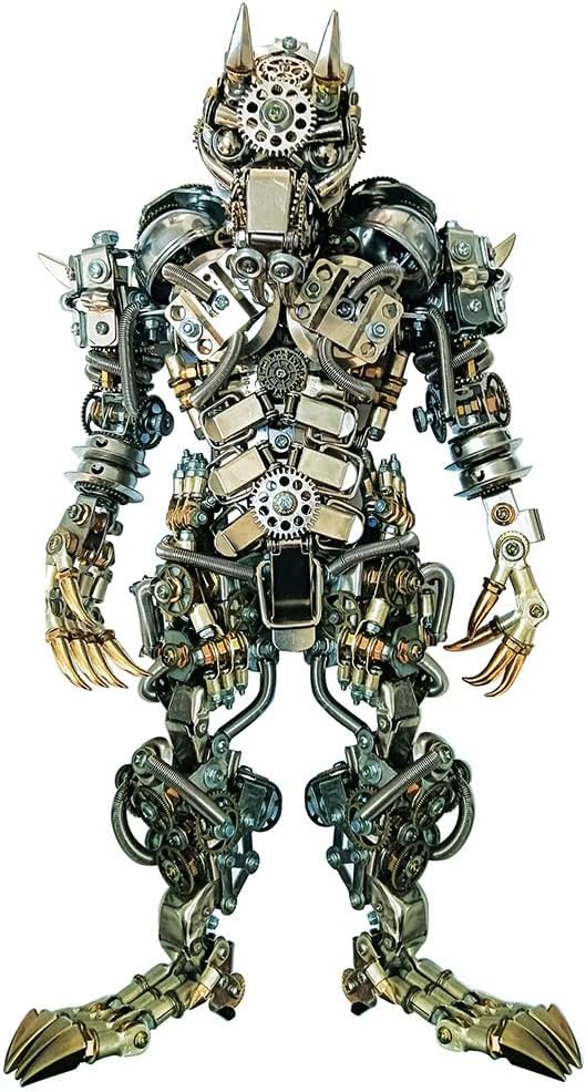 Stile: realizzato in lega di acciaio inossidabile con squisita fattura, migliorando robustezza e durata ed evidenziando perfettamente la forma e le caratteristiche del lupo mannaro. Nessuna colla richiesta: non è necessaria alcuna colla. Segui semplicemente lo schema di montaggio per fissare le viti. Con dettagli sorprendenti e divertimento di assemblaggio, regalandoti una meravigliosa esperienza fai-da-te. Utilizzo versatile: come oggetto da collezione ma anche come pratica decorazione da scrivania che aggiunge un tocco personale al tuo arredamento. Maggiore complessità: con istruzioni PDF dettagliate per aiutarti a montare. Il modello assemblato è composto in media da oltre 2000 parti e richiede circa 30 ore di impegnativo tempo di assemblaggio. Pesa circa 2 kg. Il maggior numero di parti e la struttura più complessa danno una sensazione e fanno sembrare il lupo mannaro incredibilmente potente. Miglior regalo: con la gioia e il senso di realizzazione che derivano dall'autoassemblaggio, questo modello è eccezionalmente bello. Adatto come regalo perfetto per i tuoi amici, famiglia e bambini, o sia da collezionare che come decorazione per la tua casa.