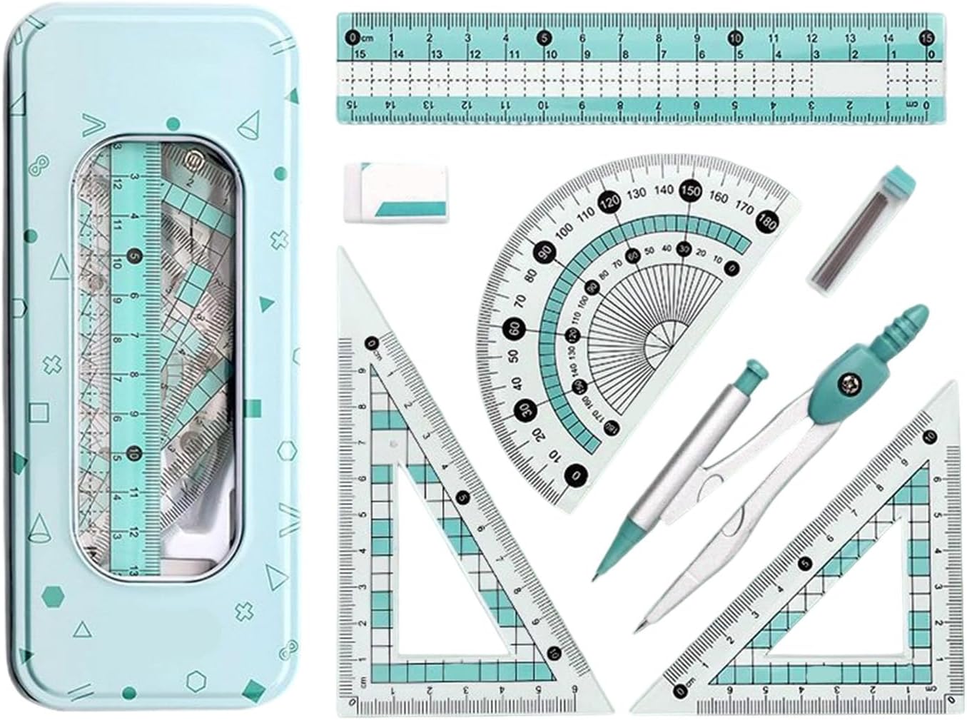 Strumento accurato: le bussole per materiali in lega garantiscono che ogni cerchio disegnato preciso e senza errori. Risolve problema della deformazione delle normali bussole in plastica, adatte a studenti e professionisti che hanno bisogno disegni fine Combinazione multifunzionale: include più righelli e strumenti un set che soddisfa varie esigenze. Risolve problema che un singolo strumento non può gestire compiti complessi, adatti per l'uso in varie occasioni come scuole, uffici e compiti a casa set scatole archiviazione portatile viene fornito con scatola archiviazione dedicata, facilitando l'organizzazione tutti strumenti evitare la perdita. Particolarmente adatto agli uomini d'affari che viaggiano spesso o devono trasportare articoli cartoleria, garantendo che l'efficienza del lavoro non influenzata Comode esperienze presa: la maniglia ergonomica per impedire l'affaticamento anche dopo un uso prolungato. Fornire esperienze utente più comode e migliorare l'efficienza del lavoro per utenti che devono passare molto a disegnare lavoro corpo principale plastica addominali. Con dimensioni portatili 18x7,5 cm, può essere facilmente collocato in custodia a matita, rendendo facile per lo studente trasporto senza alcun onere. Non è facilmente danneggiato