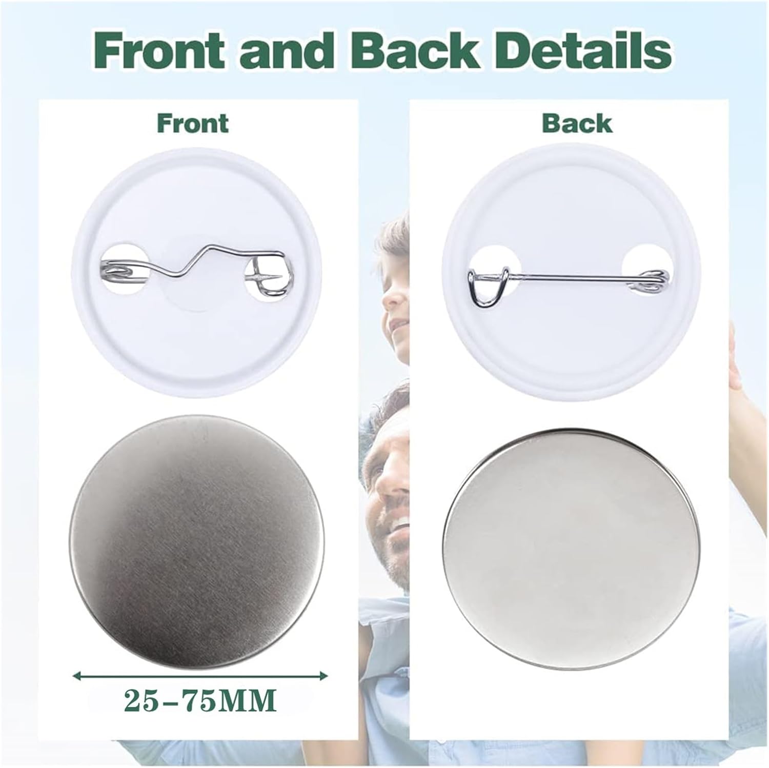 Design vuoto: design vuoto che ti consente di personalizzare il motivo del badge: ad esempio, con le foto delle tue celebrità preferite, il tuo testo preferito o altri design commemorativi. Caratteristiche: leggero, resistente. Materiali: questo perno è realizzato in banda stagnata, leggero e resistente. Puoi cambiare lo stile come preferisci. Buon effetto di stampa: il pulsante vuoto ha una superficie estremamente liscia su cui i motivi possono essere stampati molto facilmente. Materiali perfettamente realizzati a mano che ti permettono di liberare la tua creatività. Regali fai da te: crea le tue spille personalizzate con il kit per creare spille come desideri con bambini, familiari e amici. Regali speciali per badge per amici e colleghi, anche come souvenir per scuole, uffici, fabbriche.