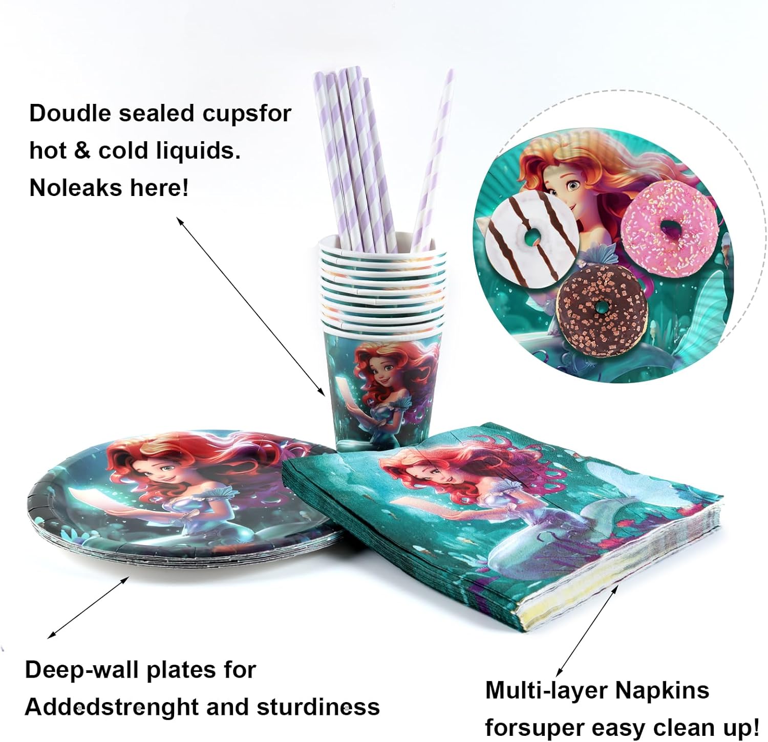 【Stoviglie per feste a sirena】 Il set di decorazioni per il compleanno a sirena comprende 1 striscione di buon compleanno, 10 cannucce, 10 piatti, 10 tazze, 20 tovaglioli di carta, 1 tovaglia, 2 nastri, adatti per una piccola festa di 10 persone. 【Materiale di alta qualità】 Le nostre stoviglie per feste di compleanno sono realizzate in carta spessa di alta qualità, resistente, ecologica e infrangibile, biodegradabile e la simpatica stampa di gatti renderà la decorazione della festa preferita e amata da tutti. 【Facile da pulire】 Le stoviglie usa e getta per il compleanno della sirena sono leggere e facili da trasportare, facili da decorare anche all'aperto, ravvivano rapidamente il luogo della festa e puliscono rapidamente dopo la festa. 【Forniture per feste a sirena】 Il set di decorazioni per il compleanno delle ragazze include un simpatico striscione di buon compleanno a sirena, un piatto a forma di sirena oceanica, tazze a sirena e tovaglia a sirena, stampe trasparenti e adorabili sirene, un'ottima scelta per creare un'atmosfera attiva per una festa di compleanno per bambini. Ampio utilizzo: le decorazioni per feste a sirena sono perfette per feste di compleanno di ragazzi e ragazze, decorazioni di compleanno per bambini, feste a tema sirena, eventi all'aperto, baby shower, Natale, feste a tema oceano, decorazioni per feste subacquee, ecc. Sorpresa!