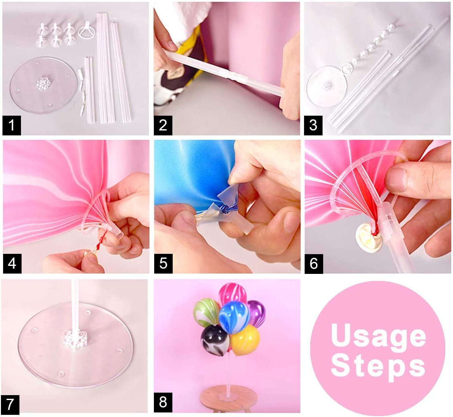 ☆ 【Pacchetto comprendente】 -6 set di kit supporto per palloncini (11 bastoncini, 7 tazze, 4 unioni e 1 base) + 4 clip per palloncini + 2 fogli di punti colla (palloncini non inclusi) ☆ 【Misure e materiale】 - Ogni supporto per palloncini è alto circa 28 pollici. È realizzato in plastica resistente, il palo trasparente e la base si abbinano perfettamente a tutti i palloncini colorati ☆【Facile da usare】 - Puoi installarlo facilmente in 3 minuti, se vuoi usarli all'aperto con un leggero vento, ti consigliamo di attaccare i punti di colla (pacchetto incluso) sotto il fondo del supporto per rendere stabili i supporti ☆【Riutilizzabili】 - I nostri supporti per palloncini possono essere riutilizzati. Supporto per palloncini con tazze e base separate. Le tazze facilitano la presa dei palloncini. Basta assemblare i palloncini e posizionarli sul tavolo per creare un bellissimo centrotavola da scrivania ☆ 【Ampia applicazione】 - Sono accessori perfetti per feste di compleanno, matrimoni, feste in casa, festival, cerimonie di laurea o qualsiasi occasione in cui sono necessari palloncini