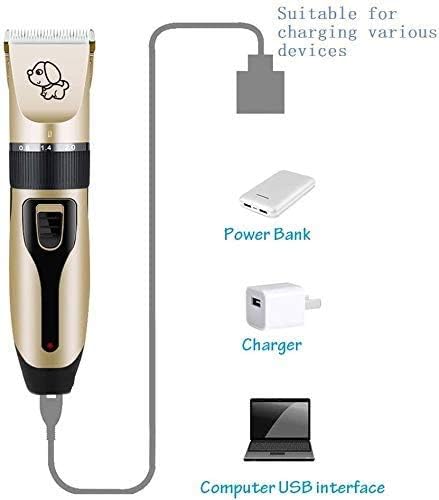 MATERIALE: Cane tagliacapelli è fatto di titanio lame in ceramica per la durevolezza. Il corpo in ABS di alta qualità in plastica e la maniglia ergonomica agevolare il taglio, più sicuro e più rispettoso dell'ambiente friendly.Fast e sicuro. Viene fornito con una lama di ricambio per una maggiore durata .. Interfaccia USB: non preoccupatevi di nessun potere durante l'uso. È possibile utilizzare l'interfaccia USB per collegare altre spine di ricarica, che è più conveniente e più veloce di altri rasoi da compagnia .. SUPER SILENCE: Design ultra-silenzioso. motore ad alta velocità, precisione e vibrazioni meno. la progettazione a basso rumore, equivalente al volume delle conversazioni nella camera a bassa voce .. Facile da pulire: lama estraibile e lavabile. La lama è rimovibile e lavabile per garantire l'igiene del vostro cane, gatto, coniglio e altri animali domestici. E 'la scelta migliore per il vostro animale domestico. Perfetto per tutti ANIMALI: perfetto per i grandi, medi e piccoli cani o gatti, li rendono sicuro, facile e comodo, adatto a tutti i tipi di animali, indipendentemente dal fatto che i capelli del vostro animale domestico è morbido o ruvido.