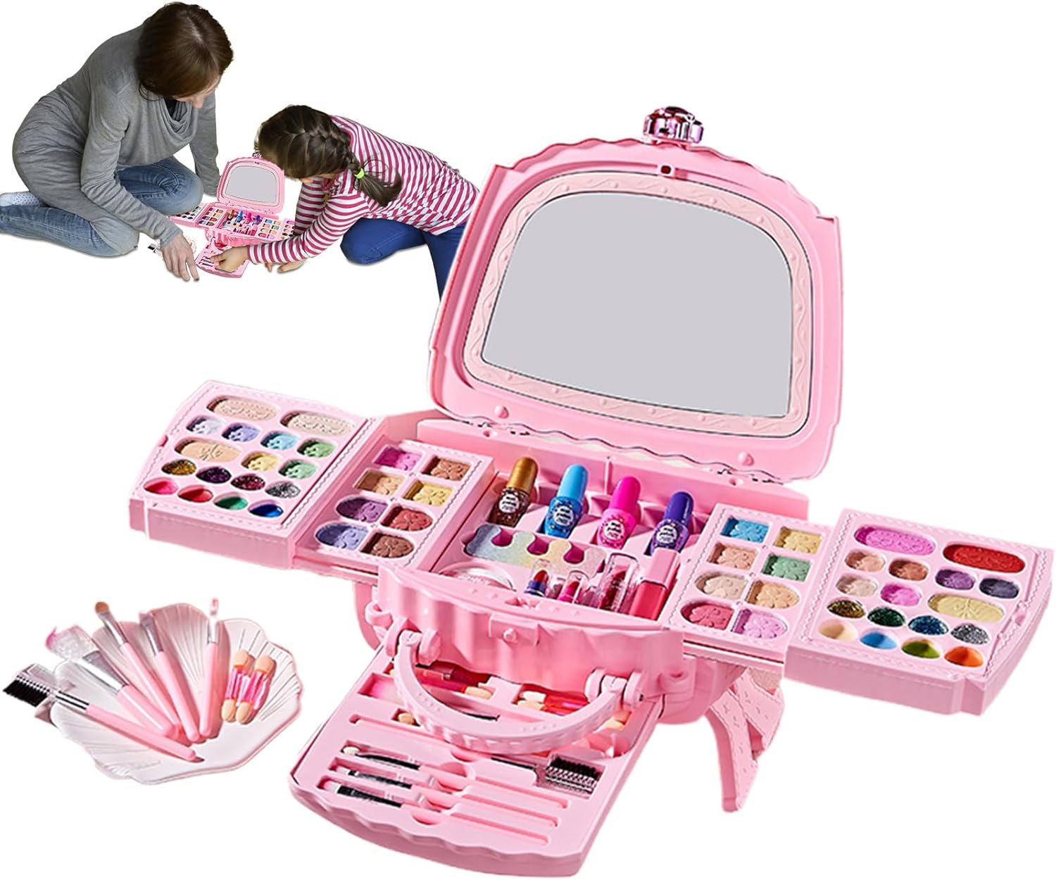 Naturale e Sicuro: Questo kit cosmetico per bambini unisce elementi naturali a una formula delicata a base d'acqua per un prodotto sicuro e lieve che si risciacqua via senza fatica con acqua e sapone Design Facile da Trasportare: Custodia resistente con maniglia robusta, scomparti studiati appositamente e spazio aggiuntivo per giocattoli, unisce praticità e divertimento portatile Kit versatile: Pennelli, specchio, e cosmetici multicolore offrono un'esperienza di gioco creativo per sviluppare abilità e immaginazione con materiali sicuri e divertenti. Sviluppo Abilità Artistiche: Favorisce l'apprendimento creativo unendo lo sviluppo delle capacità artistiche a esercizi interattivi di miscelazione colori, consentendo ai bambini di esprimere idee liberamente con creatività per Ruoli:Giochi di ruolo immersivi con tema onirico arricchiscono il set principessa, migliorando il divertimento creativo durante i travestimenti per l'infanzia