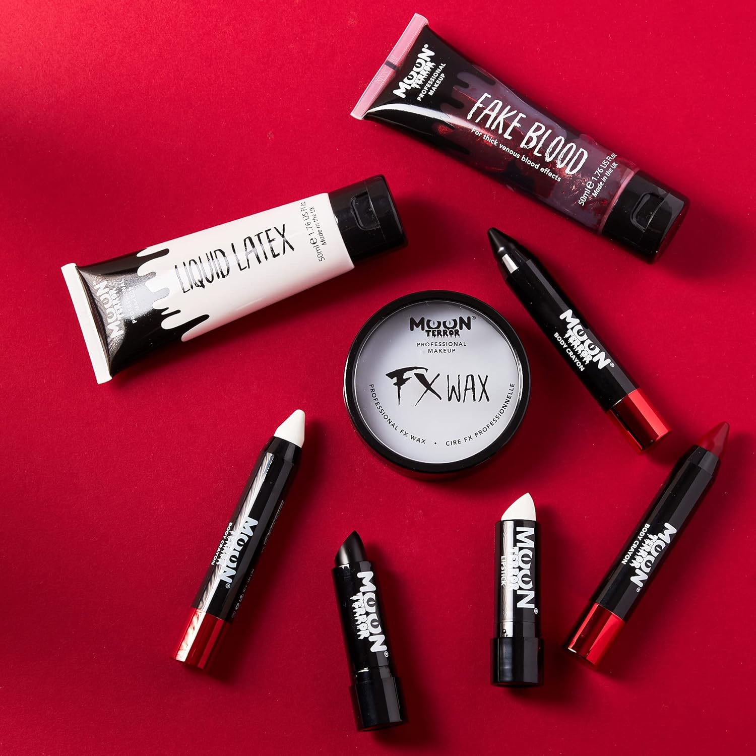 TRUCCO SFX - Crea il look completo con effetti speciali con il nostro kit di Halloween. COMPRENDE: sangue finto, lattice liquido, cera modellante, pastelli per il corpo e rossetto. MOLTEPLICI OCCASIONI - Perfetto per Halloween, effetti scenici, dolcetto o scherzetto, ecc SICURO: tutti i prodotti cosmetici ed effetti speciali Moon Terror sono orgogliosamente realizzati nel Regno Unito. Cosmeticamente certificato; conferma tutte le principali normative cosmetiche. ETICA - Nessuno dei nostri prodotti è testato sugli animali. 100% vegano.