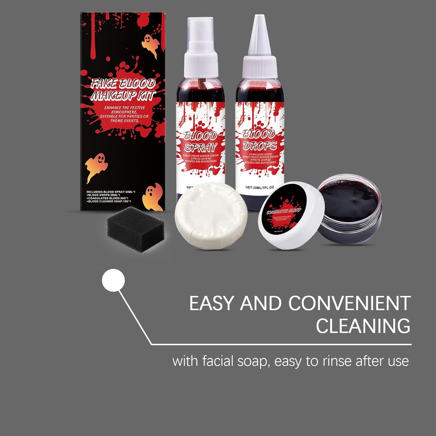 Effetti Multistrato: Grazie al sapone detergente incluso, la pulizia è facile, mentre i flaconi contagocce permettono effetti horror complessi e stratificati, ideali per costumi Halloween. Effetti Realistici: Realizza un trucco Halloween autentico con strati tridimensionali, simulazione di flusso naturale e copertura fine e uniforme per risultati visivamente convincenti Controllo Precisione: Gestione facile per principianti e dosaggio preciso assicurano effetti sanguigni complessi senza coaguli, finitura perfetta in ogni utilizzo. Rimozione Sicura: Tecnologia rapido scioglimento garantisce eliminazione completa senza preoccupazioni, formula non irritante per pulizia agevole e zero residui persistenti Strumento Creativo Trasformativo: per Halloween ed eventi tematici, questo kit trucco offre trasformazioni con sangue autentico, migliorando spettacoli teatrali e cinematografici con applicazioni creative versatili