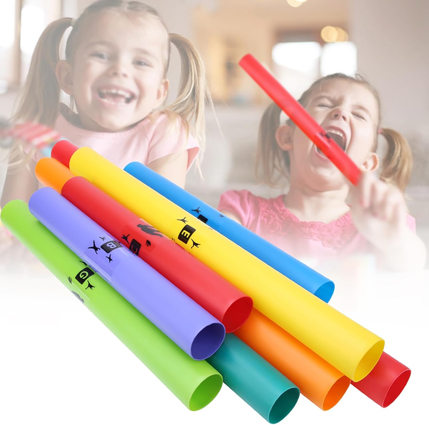 [TUBI DI OTTAVE COLORATI] Crea suoni unici toccando questi tubi di plastica con le mani o su superfici diverse. [MIGLIORA IL LAVORO DI SQUADRA] Promuovi la collaborazione e le capacità di comunicazione giocando insieme con toni e ritmi diversi. [GIOCATTOLO EDUCATIVO] per lo sviluppo musicale e l'illuminazione musicale dei bambini, offrendo un'esperienza di apprendimento divertente e interattiva. [DESIGN PORTATILE] Leggero e compatto, facile da trasportare e utilizzare ovunque per esercitazioni musicali o spettacoli. [SET COMPLETO] Include 8 tubi in vari colori e lunghezze per un'ampia gamma di suoni e toni.
