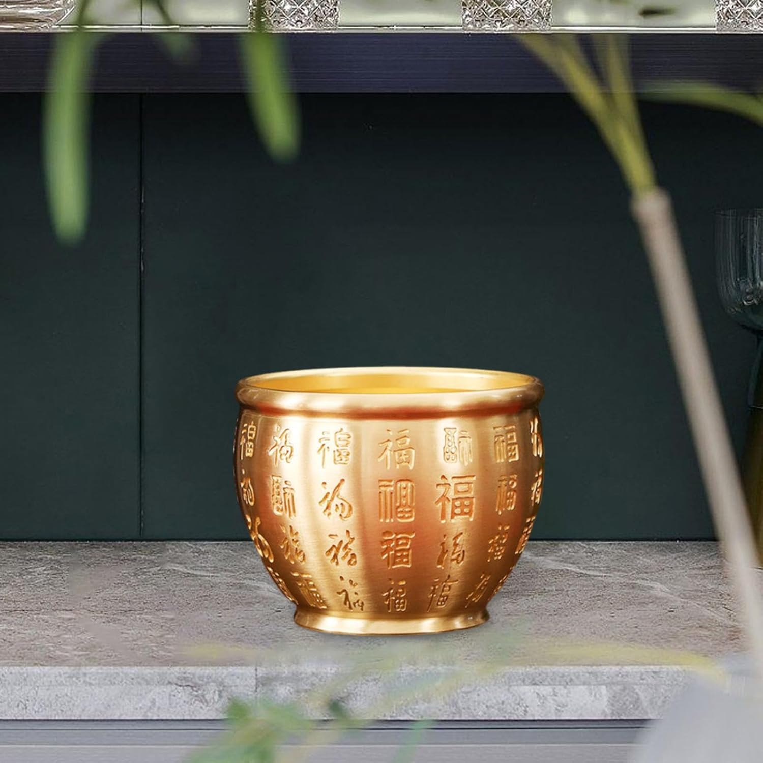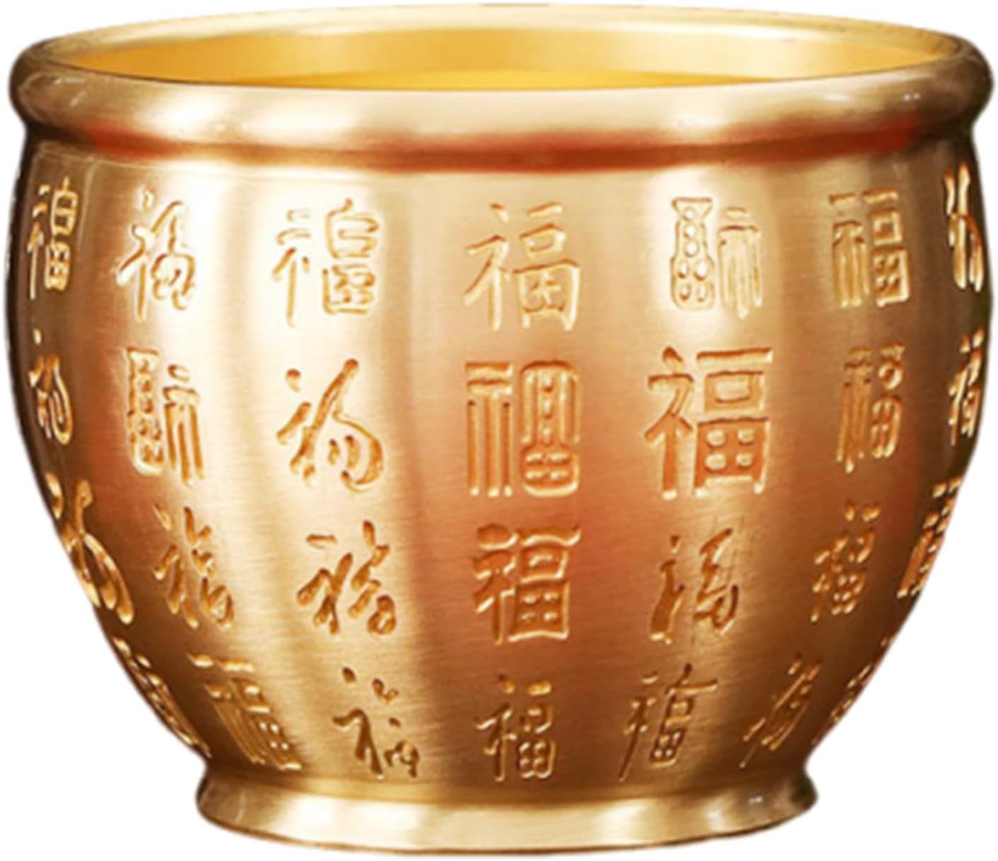 [Materiale in ottone]: la ciotola del tesoro, decorazione Feng Shui, è realizzata in ottone, materiale robusto e dalla buona consistenza [Regalo ]: la ciotola Cornucopia è la scelta per inaugurare la casa e aprire i regali per esprimere le proprie benedizioni [Decorazione per la casa]: la ciotola del tesoro è adatta come decorazione per la casa, aggiungendo un'atmosfera elegante agli interni [Forma di barattolo di riso in ottone]: il centrotavola è progettato a forma di barattolo di riso, con un'incisione dettagliata che ne sottolinea l'eleganza [Decorazione cinese]: l'ornamento da scrivania adotta un design cinese, adatto a un domestico che ama la Per cultura tradizionale