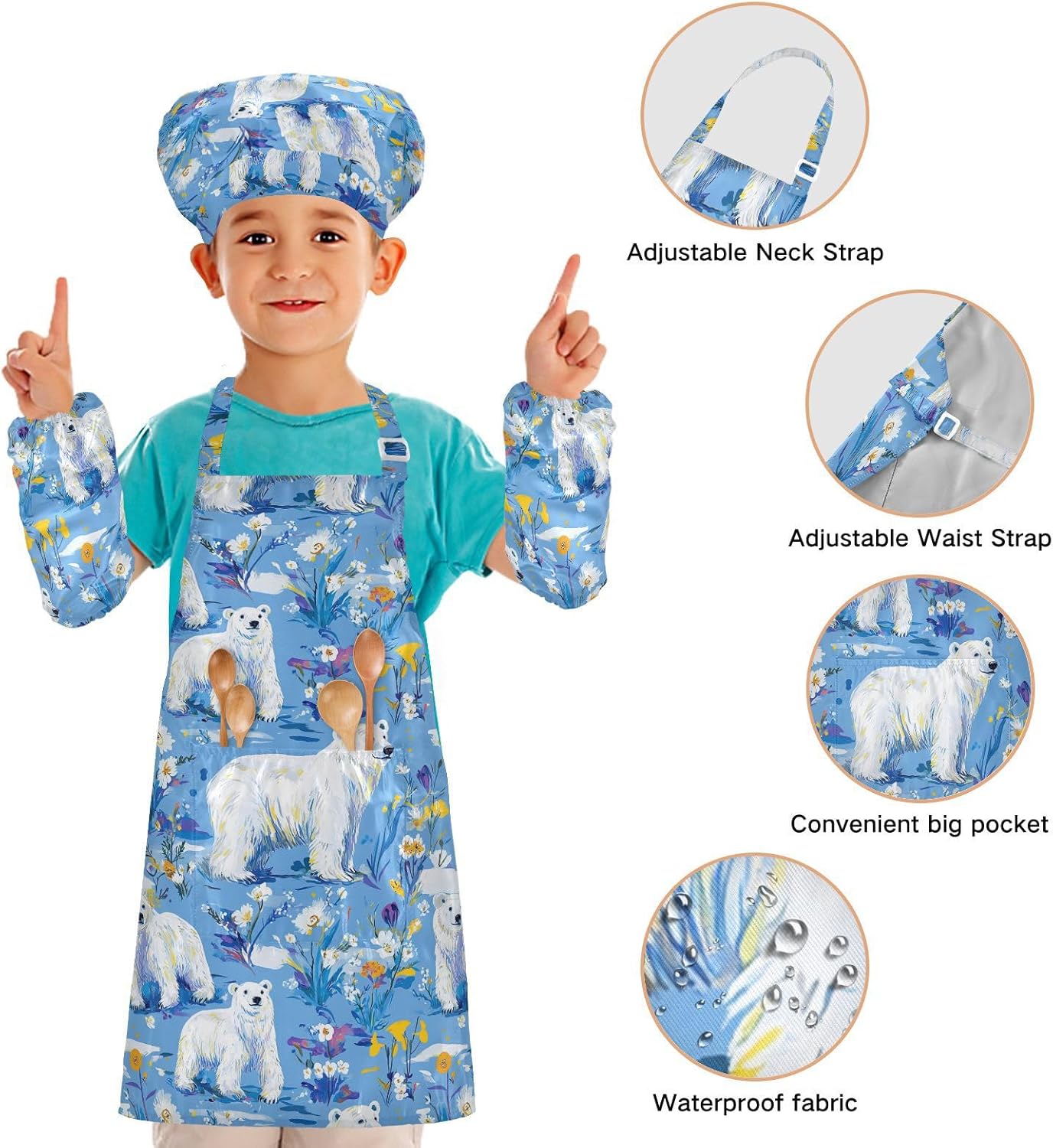 Dimensioni consigliate: S: 48 x 52 cm (età 3-6 anni). M: 50 x 59,7 cm (7-12 anni). La taglia può adattarsi alla maggior parte dei ragazzi e delle ragazze. Si prega di scegliere la taglia giusta in base alle dimensioni specifiche. Materiale di alta qualità: il grembiule da cucina per bambini è realizzato in poliestere, 290 twill morbido panno impermeabile, dando una sensazione confortevole quando si indossa. Cinghia regolabile: il collo lungo e le cinghie in vita sono regolabili. È possibile regolare la cinghia in base alla lunghezza che i bambini si sentono a proprio agio per attività o vestirsi Inoltre, la cinghia regolabile può fornire abbastanza spazio per i bambini da indossare o togliere. Multiuso: il set da chef per bambini non può essere indossato per pittura, cucina, giardinaggio, lavaggio dei piatti, feste, arte, artigianato e attività scolastiche, ma anche per Natale, Ringraziamento, Halloween, San Patrizio, Capodanno, festa dei bambini, festival, vacanze, cene, compleanni e riunioni di famiglia. L'articolo include: il set di grembiule per bambini include 1 grembiule leggero, 1 cappello da chef e 2 maniche. Il cappello da chef per bambini può dare ai bambini una buona esperienza di utilizzo per cucinare o dipingere come fornelli o pittori professionisti.