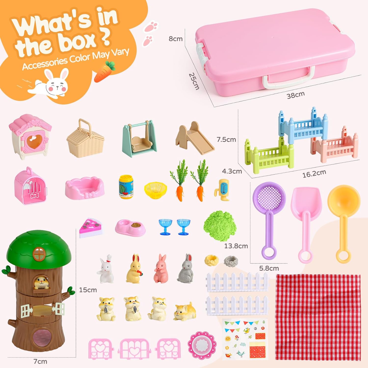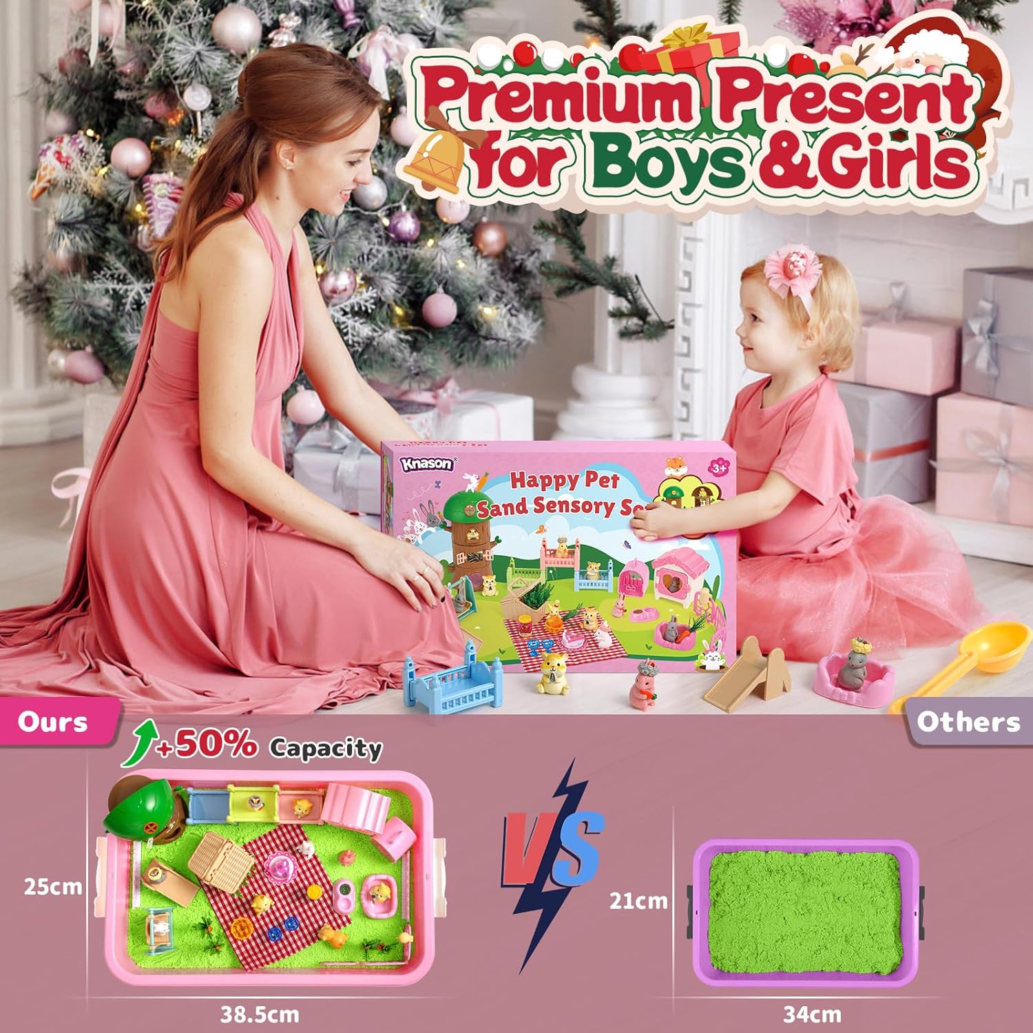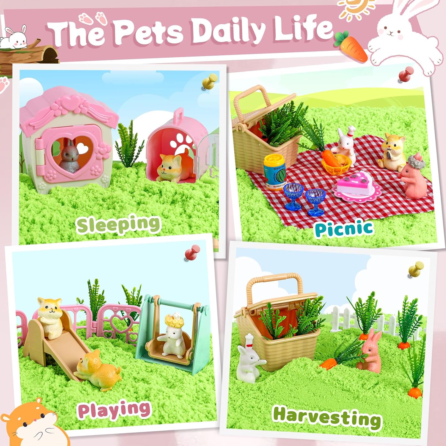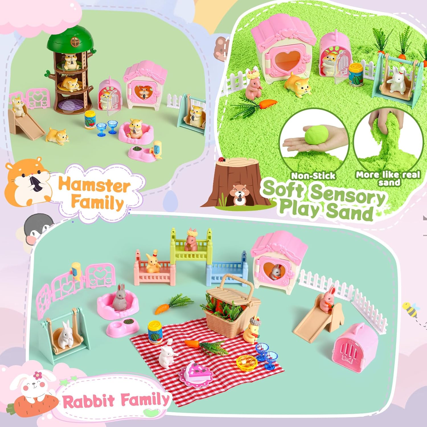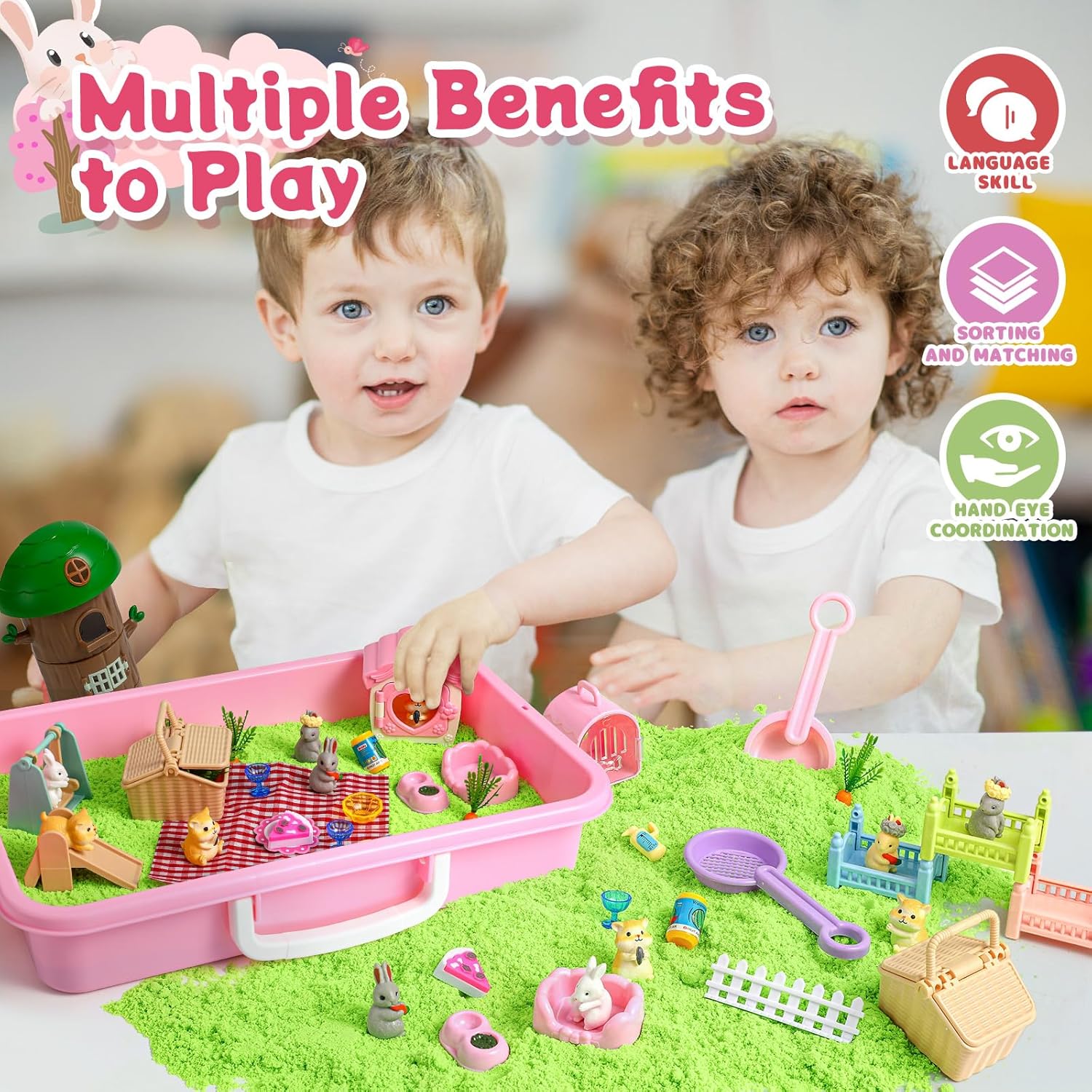 Sabbia Cinetica per Conigli e Criceti: Questo sabbia magica per bambini comprende 4 figurine di coniglio, 4 figurine di criceto, 900 g di sabbia sensoriale colorata, 1 casa sull'albero, 2 case per animali, 3 strumenti di sabbia, 1 scivolo, accessori per picnic e così via. Questi accessori da 38 pezzi consentono ai bambini di trascorrere più tempo a giocare in modo divertente. Sabbia Cinetica Modellabile: Questa sabbia colorata ha la consistenza e la fluidità della sabbia normale e si incastra magicamente per essere pulita facilmente. Non è appiccicosa, non si asciuga ed è adatta a bambini e bambine per il gioco di finzione, l'arte della sabbia e l'artigianato per bambini. Imparare più Abilità: Questo sabbia cinetica per bambini per realizzare il sogno di prendersi cura di un animale domestico. Possono esplorare e imparare attraverso i loro sensi e costruire le loro abilità linguistiche, la motricità fine, le abilità sociali, la coordinazione occhio-mano e promuovere il lavoro di squadra dei bambini. Facile da Pulire e Conservare: I giocattoli della sabbiera sono adatti per il gioco sensoriale senza disordine! Questo sabbia cinetica bambini 3 anni aiutano i bambini a giocare in casa o all'aperto in qualsiasi momento. Inoltre, questa sabbiera con coperchio è un contenitore per riporre e trasportare facilmente i giocattoli. Regalo Perfetto per i Vostri Bambini: Questo sabbia cinetica bambini 5 anni è disponibile per tenere i bambini felici e occupati per ore. È dotato di una confezione raffinata ed è un regalo ideale per bambini e bambine di 3 4 5 6 7 8 9 anni in occasione di compleanni, Halloween, Natale e qualsiasi altra occasione.