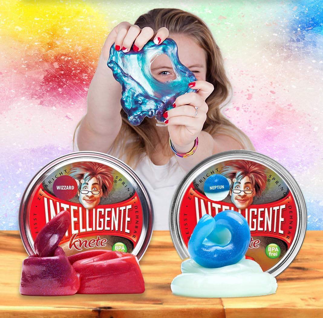 Knete intelligente È perfetto come trainer per le mani o le dita ed è un giocattolo antistress ideale per bambini e adulti. Un'ottima alternativa alle palle antistress o alle palle antistress! Intelligent Knete È chiaramente diverso dalla tradizionale pasta da modellare e non è solo una pasta da modellare per bambini. Chi ha Intelligente Knete non ha più bisogno delle palline antistress. Che si tratti di pasta modellabile per bambini, di palla antistress o di palla morbida, Intelligente Knete non offre solo molto divertimento, ma anche un efficace allenamento delle dita, ad esempio in caso di artrosi delle dita. L'argilla da modellare intelligente viene utilizzata anche come palla arrabbiata per bambini o per la terapia occupazionale, che è una vera argilla magica e rimbalza molto bene anche come argilla da salto. Dì addio alla tradizionale pallina antistress: questo mastice magico sostituisce le palline antistress, la normale pasta da gioco, la pasta da gioco manuale, i finger trainer e conferisce a ogni palla un aspetto invecchiato