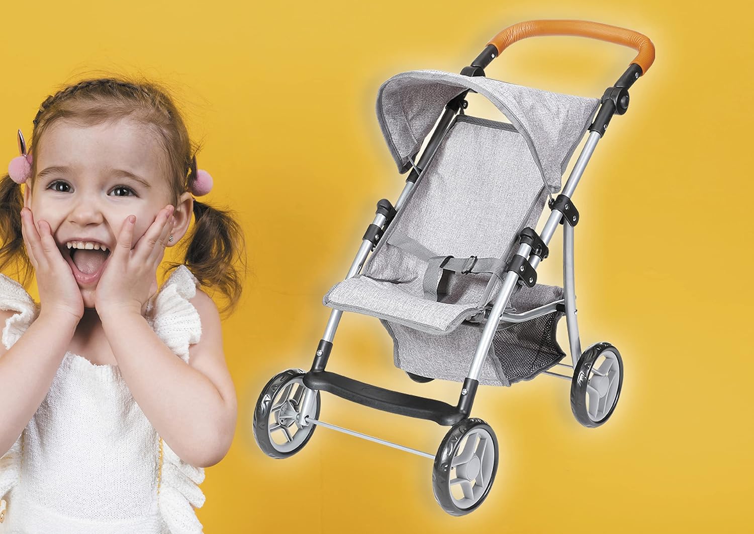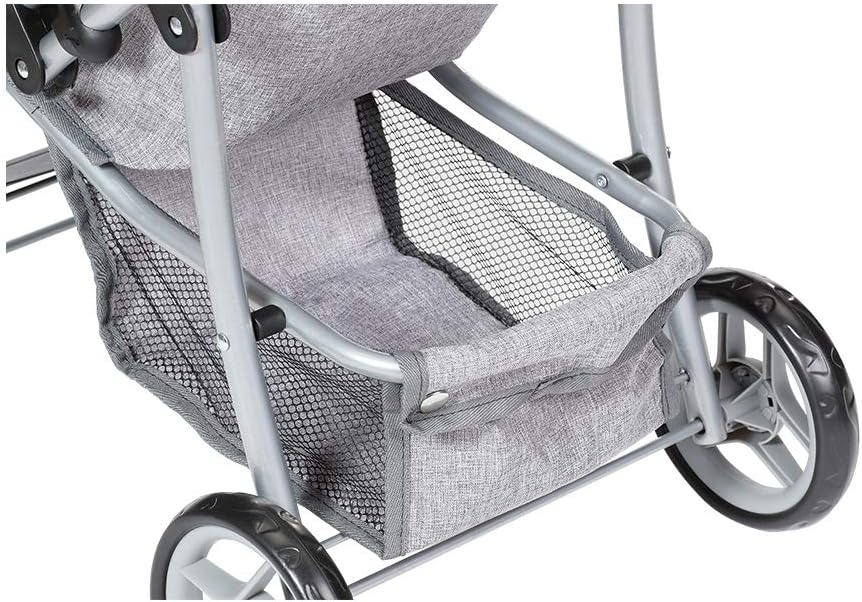 Passeggino moderno e pratico per bambole "Liba" di Knorr Toys con tettuccio regolabile Con cintura e rete per la spesa Un cursore regolabile in altezza (circa 33 – 59 cm) permette al carrello di crescere insieme alla mamma delle bambole Dimensioni: 54 x 35 x 44 cm Adatto per bambole fino a 46 cm