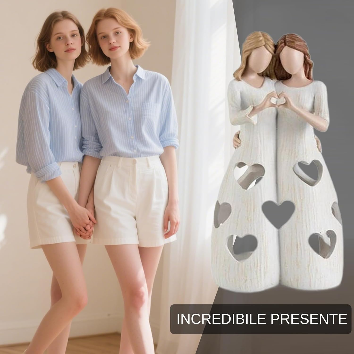 Simbolo Affettivo: statuine trasmettono un intenso significato emotivo rendendoun degno tesoro che rappresenta una eccelnte testimonianza di amore duraturo e devozione continua attraverso la loro raffinata espressione artistica Costruzione Resistente: Progettate con materiali duraturi e una lavorazione impeccabi, statuine mantengono il loro aspetto egante e la robustezza strutturanel , ideali per un utilizzo prolungato senza perdere fascino o stabilità in qualsiasi ambiente Ideali per la casa: La loro versatilità rende compmenti d'arredo indispensabili per appassionati di decorazione, donando calore e personalità a soggiorni, camere e altri spazi living senza sovrastare gli ementi esistenti Regalo Emozionante: Queste statue sorelsimboggiano l'amicizia e i familiari, rendendoideali per festività e occasioni speciali per cebrare relazioni più care con persone amate, un pensiero per esprimere affetto e vicinanza Lavorazione di Qualità: statuine soresibiscono espressioni facciali naturali abbinate a pose composte, mostrando una lavorazione fine che evidenzia il design artistico, rendendoideali per colzionisti che apprezzano belzza sottima striking in ogni creazione, adatte per display in vetrine o .