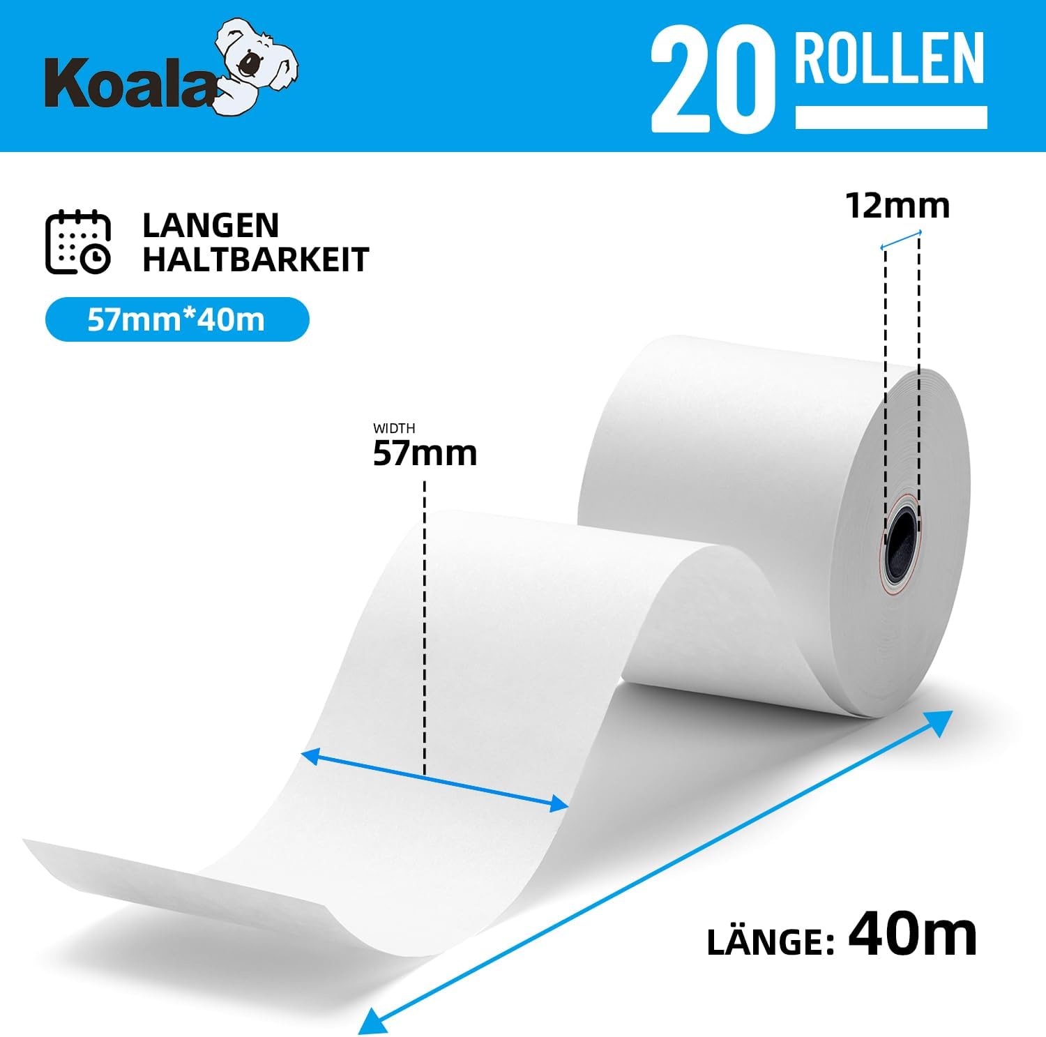 Dimensione Singolo Rotolamento: Larghezza - 57mm (+/- 1 Grammo), Lunghezza - 40m (+/-2 Grammo), Ø rotolo max. 12mm (+/- 0,6 Grammo), spessore -0,053 mm. Viene fornito in confezione da 20. Ampia Compatibilità - Perfettamente adatto a tutti i più comuni registratori di cassa in cui può essere inserito un rotolo di massimo 57mm (5.7 cm) di diametro per la stampa dello scontrino. Campi di applicazione: Principalmente utilizzati in registratori di cassa, stampanti di ricevute o stampanti termiche, ampiamente utilizzato in supermercati, stazioni di servizio, ristoranti, hotel, banche e altri luoghi. Qualità premium alta: Strato termico uniforme, superficie piatta e liscia al tatto. La qualità premium garantisce una stampa chiara e veloce, soddisfacendo le esigenze commerciali. Durata di conservazione a lungo termine: Senza BPA, riciclabili, contribuendo a un ambiente commerciale sostenibile. Avvolti in pellicola termoretraibile per proteggere dall'umidità durante la conservazione. Termica mantiene la leggibilità e il colore anche dopo lunghi periodi di conservazione.