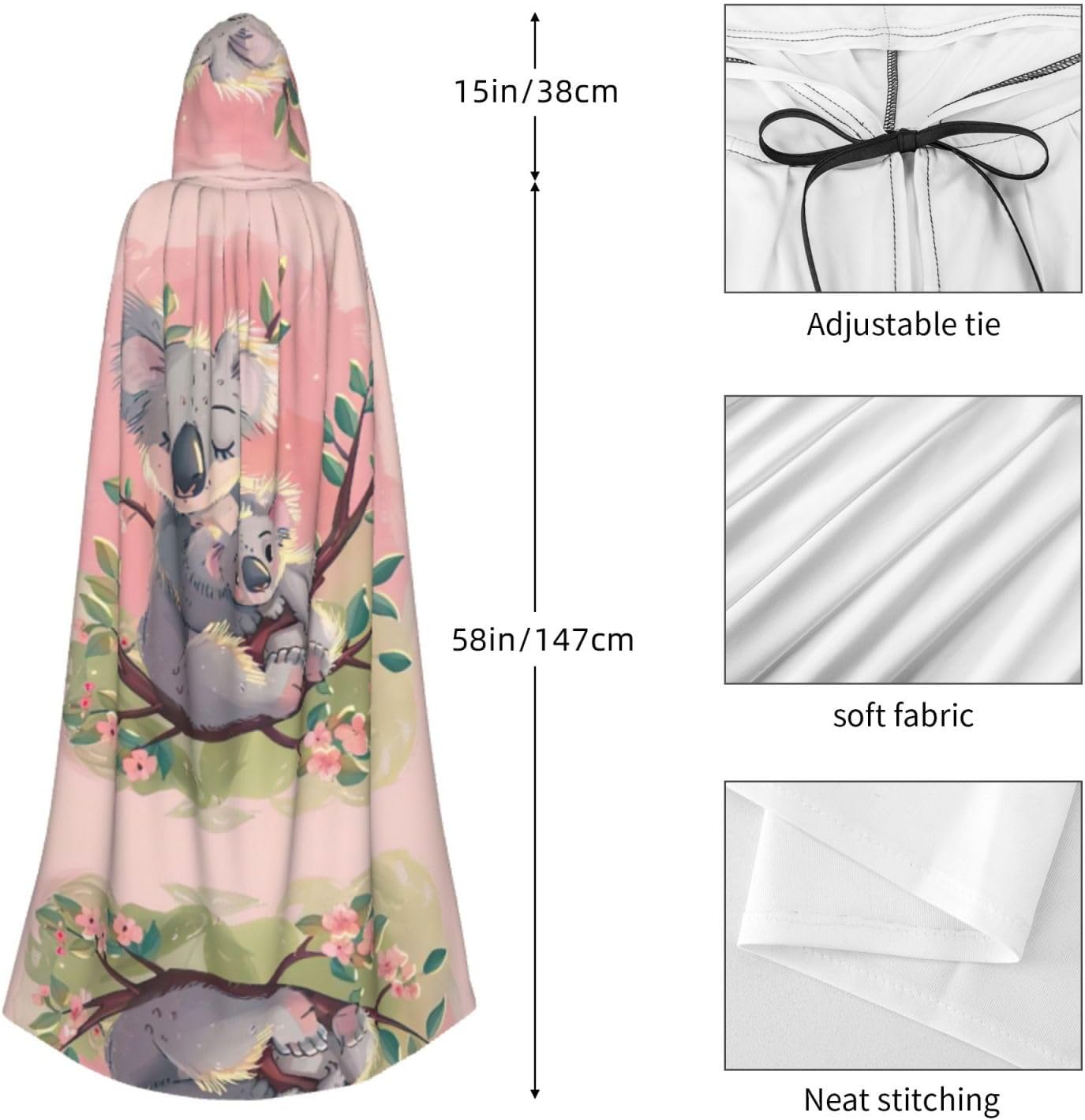 Koala Bear Mantello con cappuccio Unisex Halloween Natale Mantello Vampiro Mago Robe Costume Cosplay