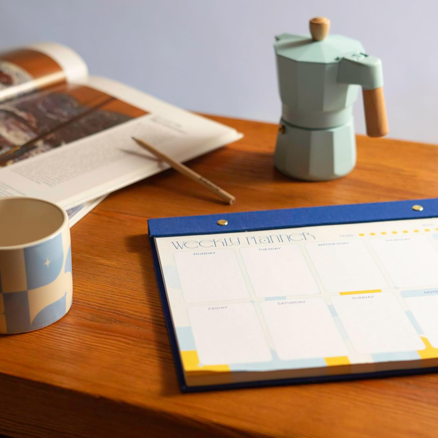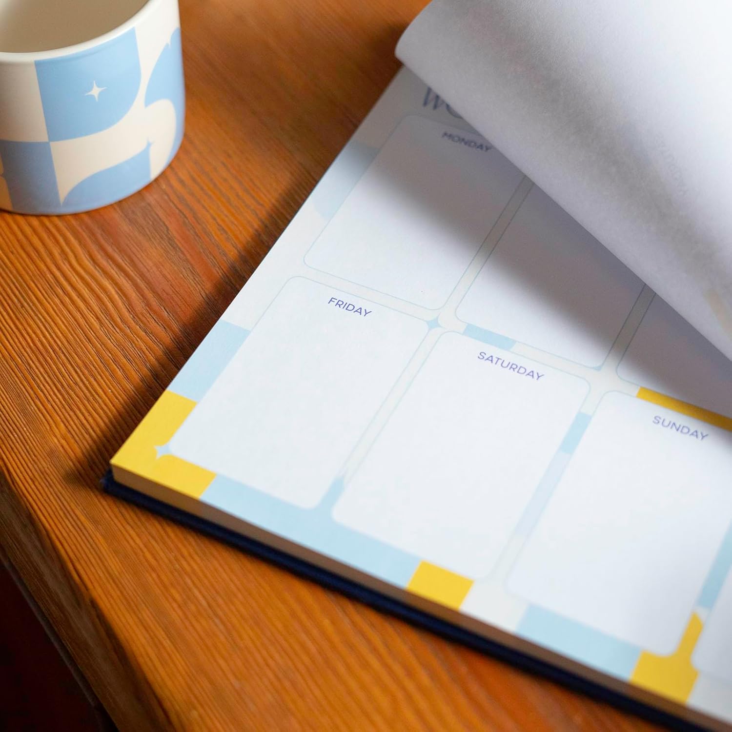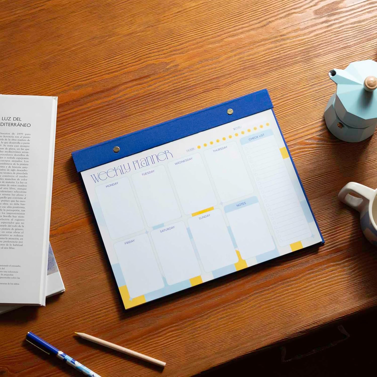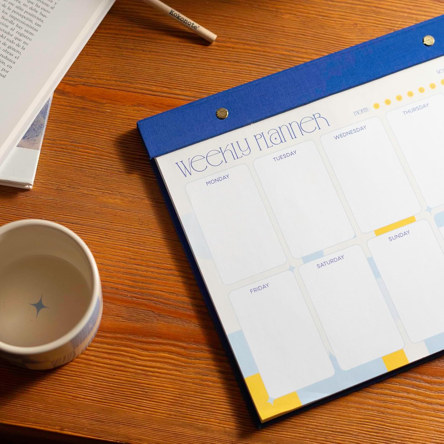 ORIGINALE - Con questa agenda settimanale classica ed elegante, scrivi i tuoi obiettivi per la settimana, cosa devi fare o appunti per te stesso. Posizionalo sulla scrivania e rendi più facile l'organizzazione. AGENDA SETTIMANALE - Appuntamenti, abitudini, eventi, compiti, lista delle cose da fare... Scrivi ciò che desideri su questa agenda per semplificare l'organizzazione della tua settimana. È anche un bell'accessorio per la tua scrivania. SETTIMANALE - Con uno spazio per il giorno e uno per il weekend offre una visione completa della settimana. Ha anche degli inserti per annotare cose importanti. Tieni sempre gli oggetti essenziali davanti a te utilizzandolo come sottomano o staccando i fogli per appenderli. BLOCCO NOTE A4 - Ha 60 fogli staccabili e misura: 29,7 x 21 cm. È in versione inglese, ha carta di alta qualità da 100 g, una base rigida e una decorazione in tessuto di bellissimo effetto. 💕 Akalia by Kokonote - Lasciati conquistare dall'eleganza del design della nostra collezione Akalia e illumina la tua giornata con i suoi colori accattivanti, ispirati allo splendore del Mediterraneo