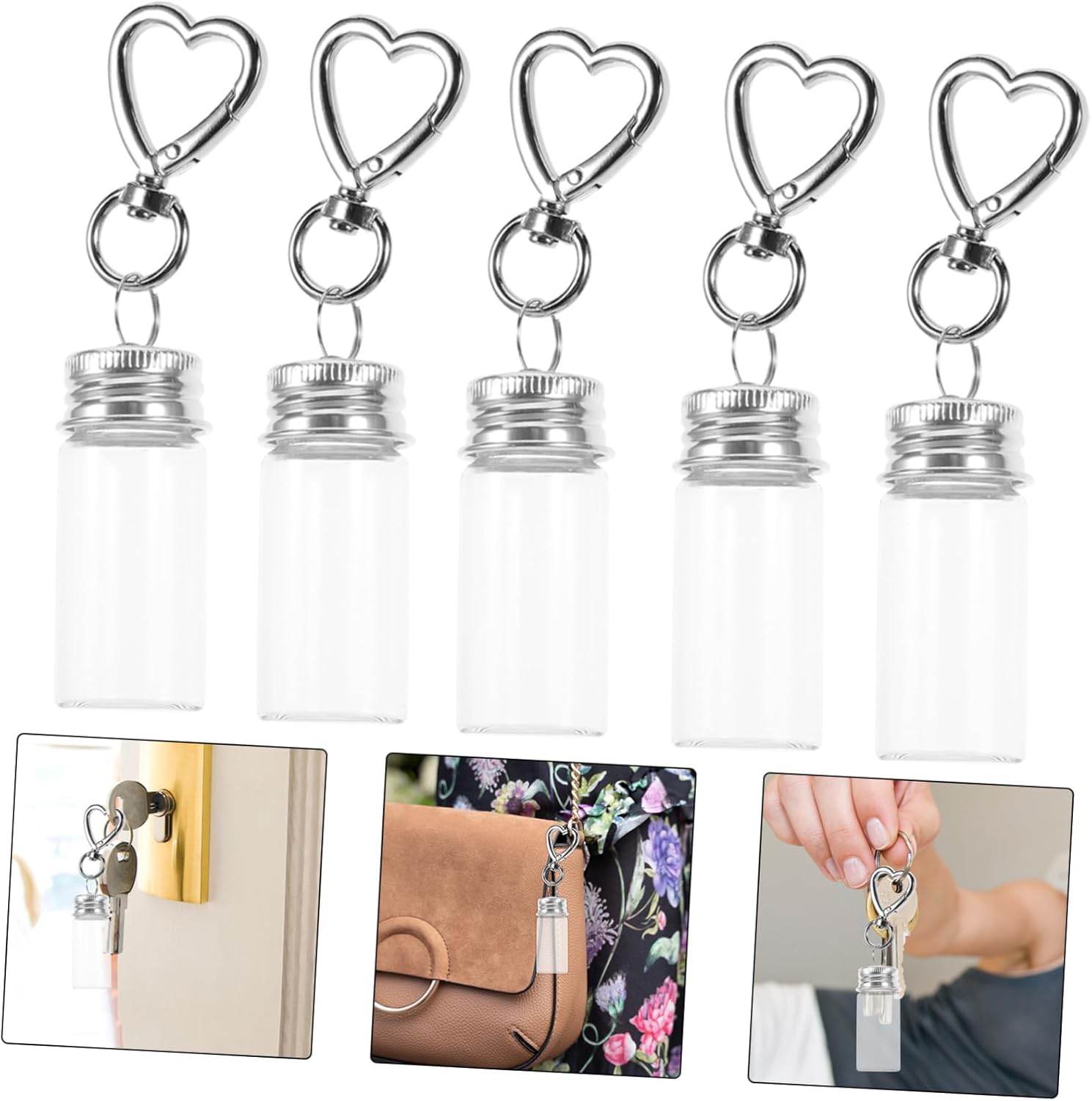 Facile da attaccare: design del portachiavi l'attacco delle bottiglie a borse o portachiavi, assicurando siano sempre a portata mano, piccola dei desideri, mini dei desideri in vetro Materiale trasparente: realizzate in vetro trasparente, queste bottiglie consentono vedere facilmente contenuto, ideali per conservare essenziali o profumi, mini bottiglie portachiavi, bomboniere per matrimoni in spiaggia Creatività da te: queste bottiglie possono essere riempite con sabbia, perline o altri oggetti decorativi, rendendole per creare bottiglie dei desideri uniche, bottiglie dei desideri alla , ciondoli per bottiglie dei desideri Portachiavi in mini : con una capacità 7 ml, queste bottiglie sono per trasportare piccole quantità liquido, rendendole ideali per i viaggi, bottigliette trasparenti per i desideri, portachiavi per bomboniere Design pratico: portachiavi in mini da 7 ml è progettato per una facile portabilità, rendendolo perfetto per i viaggi o per l'uso , flaconi portachiavi in metallo, ciondolo in con dei desideri