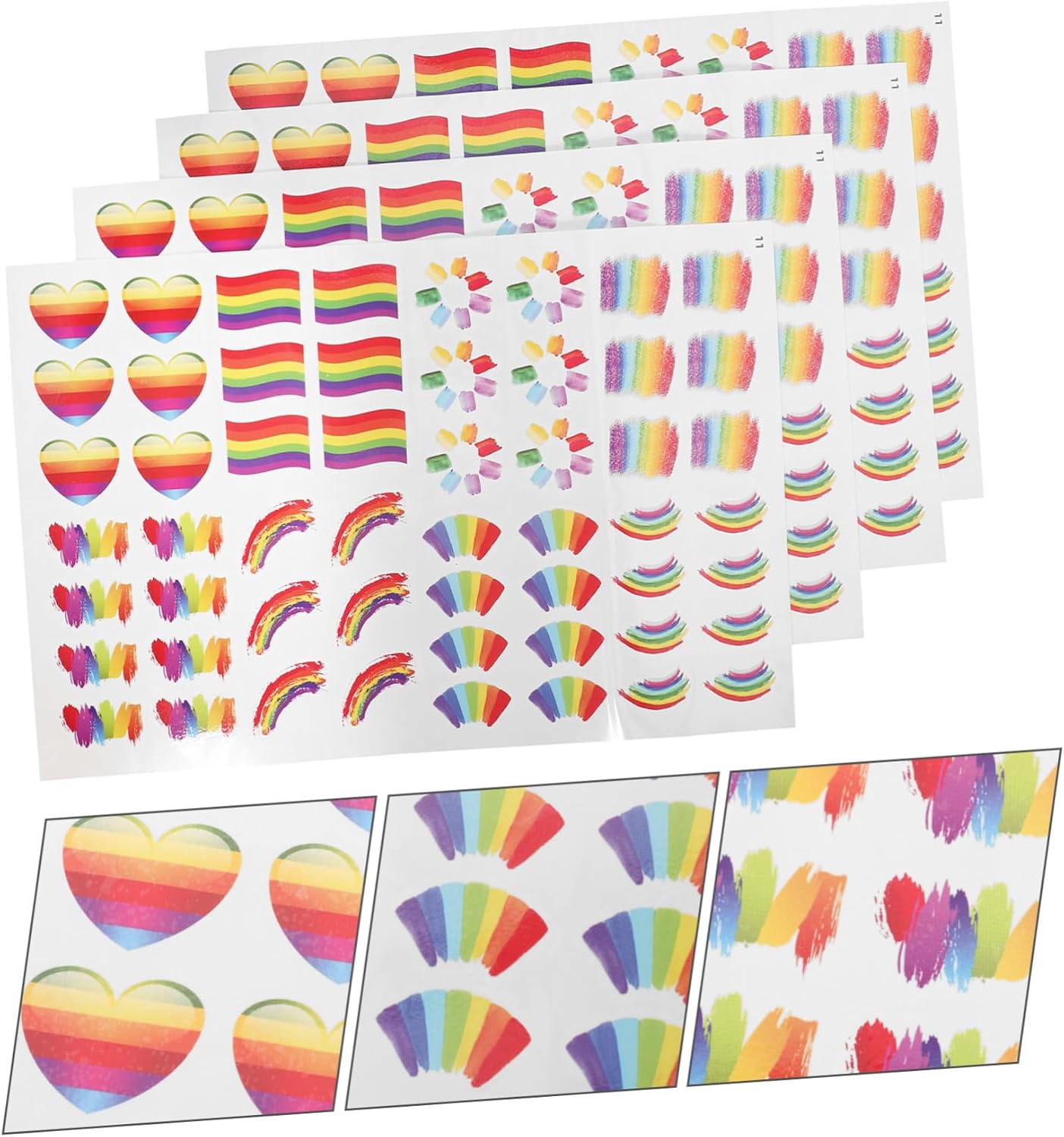 Piccoli adesivi: sicuri e divertenti per tutte le età, compresi adolescenti e adulti, divertiti alla festa con questo adesivo, adesivi per l'allegria Facce adesive: si applicano facilmente su braccia, viso, mani, collo, spalle, parte bassa della schiena, gambe, polsi, caviglie, petto, fianchi o dove vuoi, adesivi per scrapbooking Piccoli adesivi: con il motivo arcobaleno, sono una bellissima decorazione per la festa, possono creare un'atmosfera festosa, adesivi per l'artigianato Adesivi a forma di cuore: perfetti per viso, corpo, braccio, mano, caviglia o ovunque tu voglia tocco di glamour, adesivi a cuore per il viso Adesivi per il viso: il nostro adesivo arcobaleno è ideale per le celebrazioni dell'orgoglio in cui ti metti in mostra, adesivi gioiello in plastica per il viso