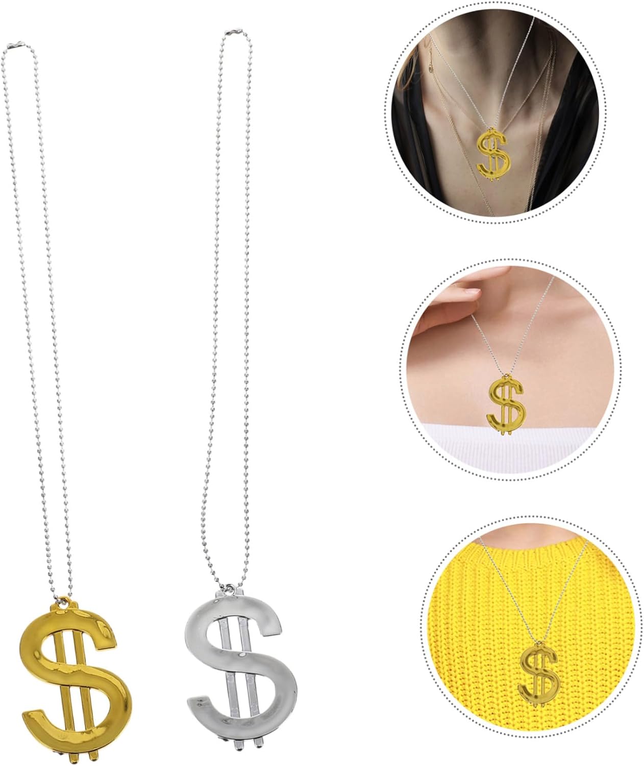 dei pacchetti 4 collane Caratteristiche -Dimensioni: 35,50X4,80X0,40 cm/13,95X1,89X0,16 pollici collana con ciondolo a forma di simbolo del denaro -Ideale per le celebrazioni: per feste in maschera, Halloween, feste di compleanno e altre celebrazioni, questa collana è un fantastico accessorio per feste per . -Divertimento interattivo: questa collana funge anche da giocattolo divertente per i , incoraggiando il gioco interattivo e la creatività dei gioielli per le ragazze -Stile versatile: abbina facilmente questa collana a una varietà di , rendendola un'aggiunta versatile alla tua collezione di accessori. Collana da principessa per ragazze -Materiale: bigiotteria in plastica per bambine -Colore: collana assortita - Look distintivo: distinguiti con la collana con ciondolo a forma di cartello, progettata per aggiungere un tocco unico ai tuoi outfit festivi, bigiotteria per ragazze -Design confortevole: la costruzione leggera assicura che tu possa indossare questa collana comodamente per lunghi periodi di tempo. Descrizione della merce collane hip hop Realizzata con attenzione ai dettagli, questa collana a catena per costumi presenta un audace ciondolo con simbolo del denaro che aggiunge un tocco giocoso a qualsiasi ensemble. accessori per costumi Il suo design leggero garantisce comfort, rendendolo adatto per un uso prolungato durante qualsiasi occasione festiva o celebrazione. ciondolo con Ideale per feste per , giochi di o come bomboniera, questa collana è sia divertente che elegante