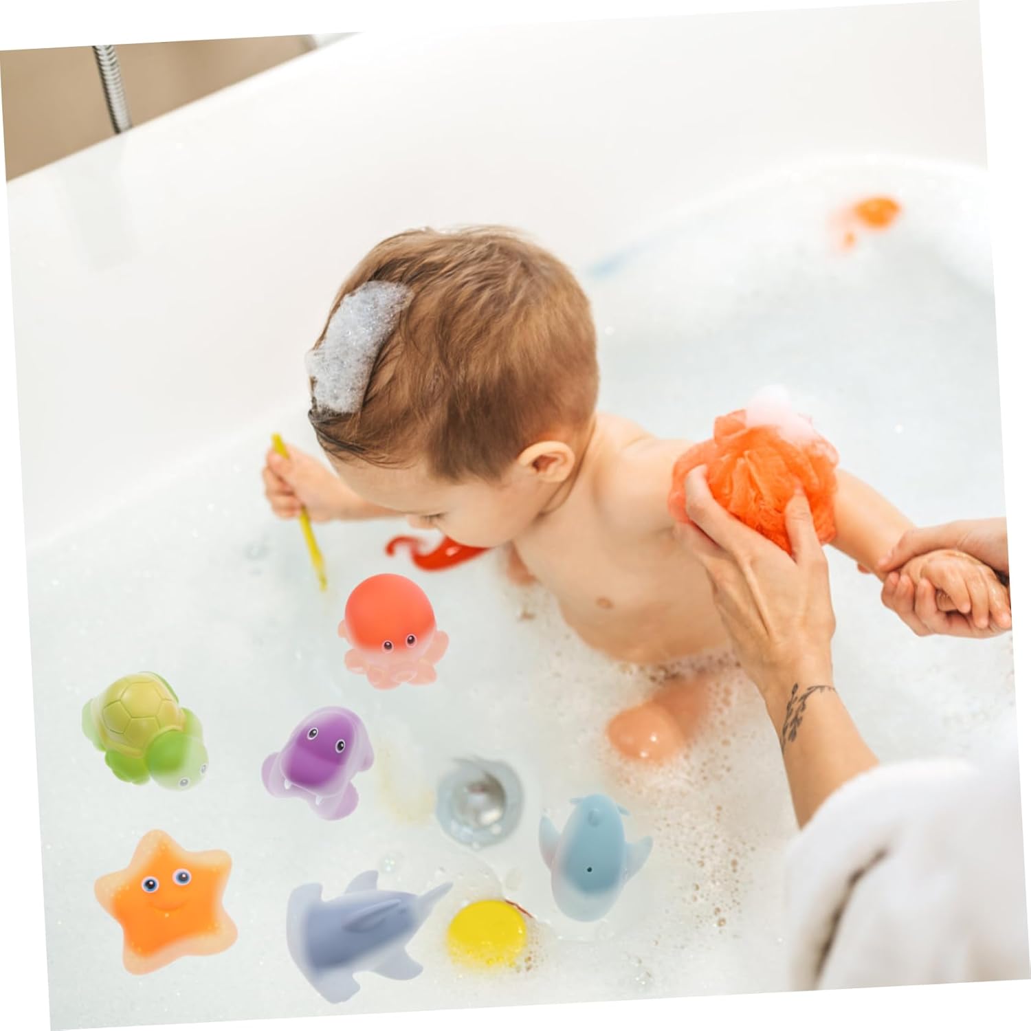 Giochi d'acqua in piscina di dimensioni piccole e compatte, questi giocattoli da bagno per neonati sono facili e comodi da afferrare e spremere, giocattoli da bagno in piscina per - divertenti giocattoli da bagno con un design cigolante di cui innamorarsi e divertirsi. -Giocattoli da bagno giocattoli per bambini: possono sviluppare l'abilità pratica, l'immaginazione e la creatività del bambino e migliorare la capacità di percezione del colore. Giochi d'acqua per baby shower per uso interno: questi giocattoli cigolanti rendono l'apprendimento sensoriale davvero divertente! Puoi usarlo per osservare i colori vivaci e sentire l'intero materiale. Giochi d'acqua per neonati Giochi d'acqua per il bagno dei bambini - realizzati in vinile sicuro, questi giocattoli da bagno sono affidabili, non si strappano facilmente e sono sicuri anche per i bambini, giochi d'acqua per